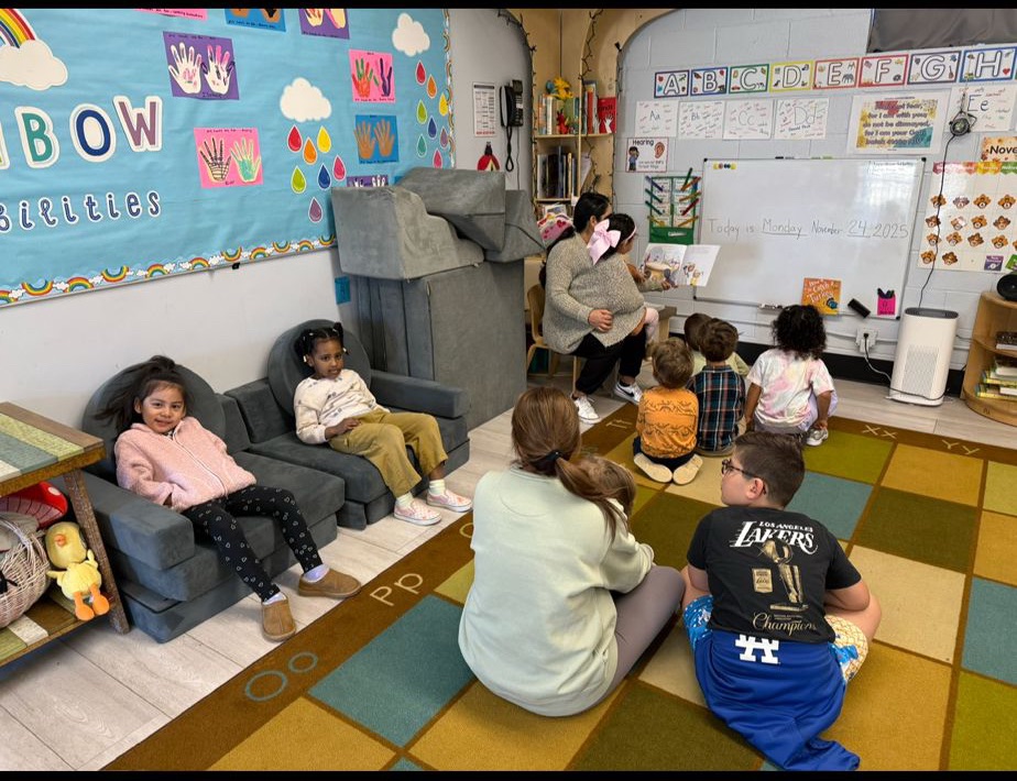We also had a few parent volunteers stop by and read stories and help with Thanksgiving arts and crafts !