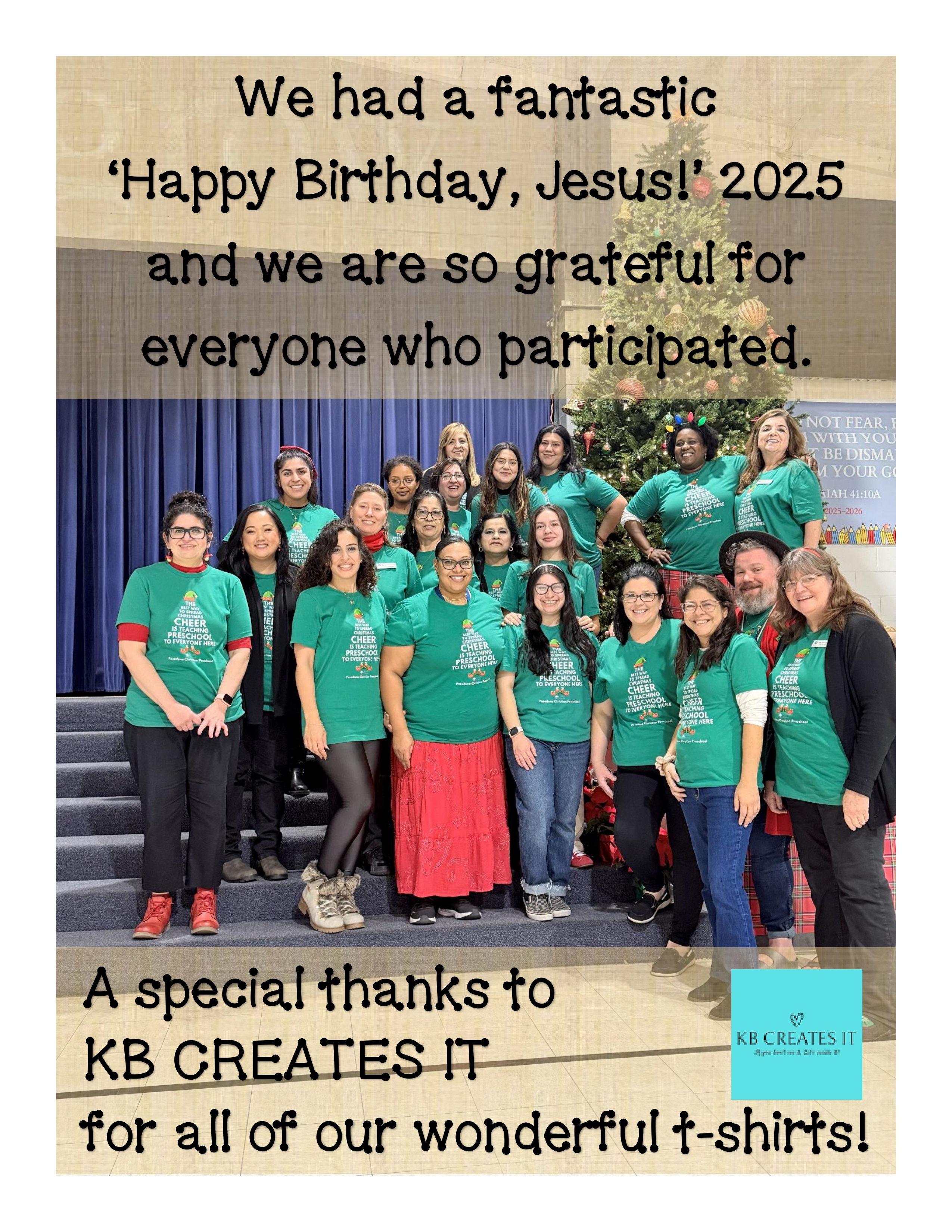 Happy Birthday, Jesus! is a SATURDAY MORNING EVENT; this annual preschool tradition will occur at the preschool and in the PCS auditorium. Each classroom has been preparing seasonal songs to share with our families.