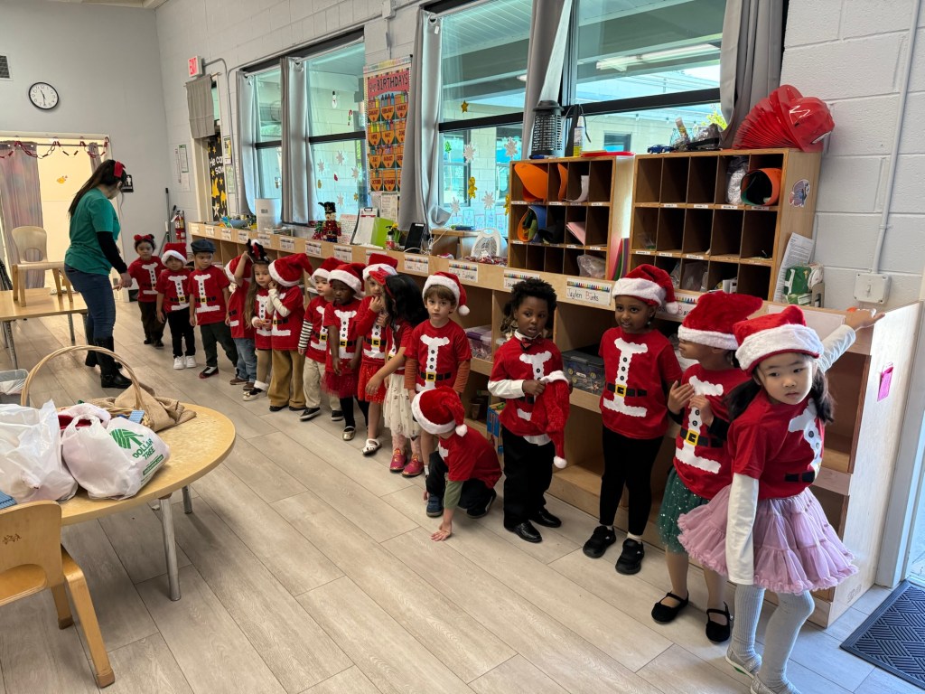 Our classrooms were beautifully decorated with Christmas trees donated by the Than Family and ornaments and garlands generously provided by the Lyddon Family. We also read many books about winter and Christmas, filling our days with learning and joy.