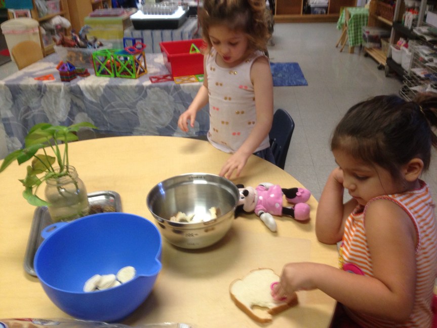And everyone remains very engaged honing their math, social/emotional, and fine motor skills in the dramatic play bakery!
