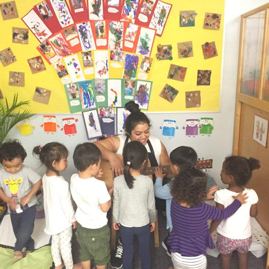 Abuela had lots of activities in different languages. When you opened a window children sang a song in a different language. They heard Welcome in different languages and got to play with magnetic pieces on a New York landscape.