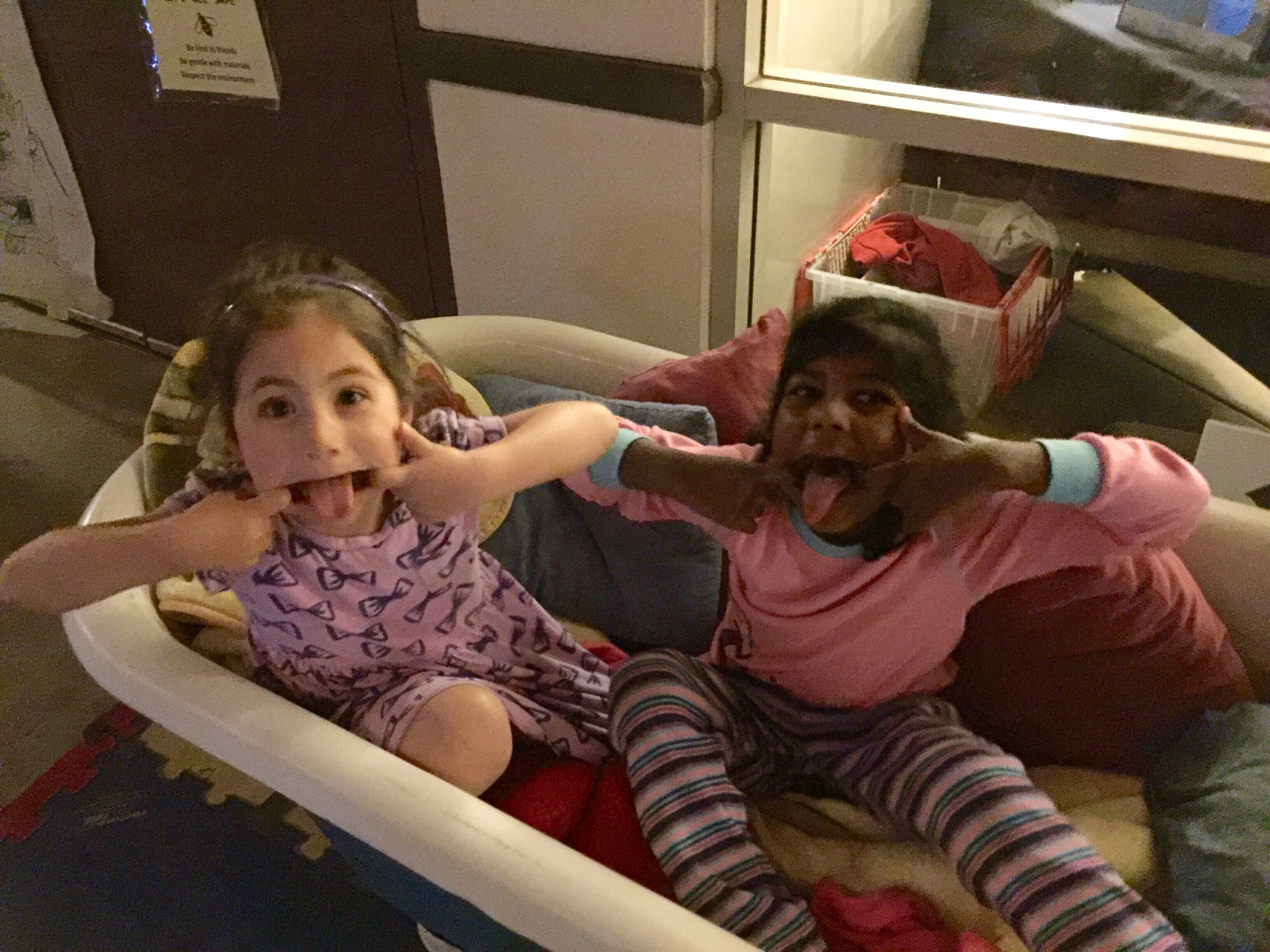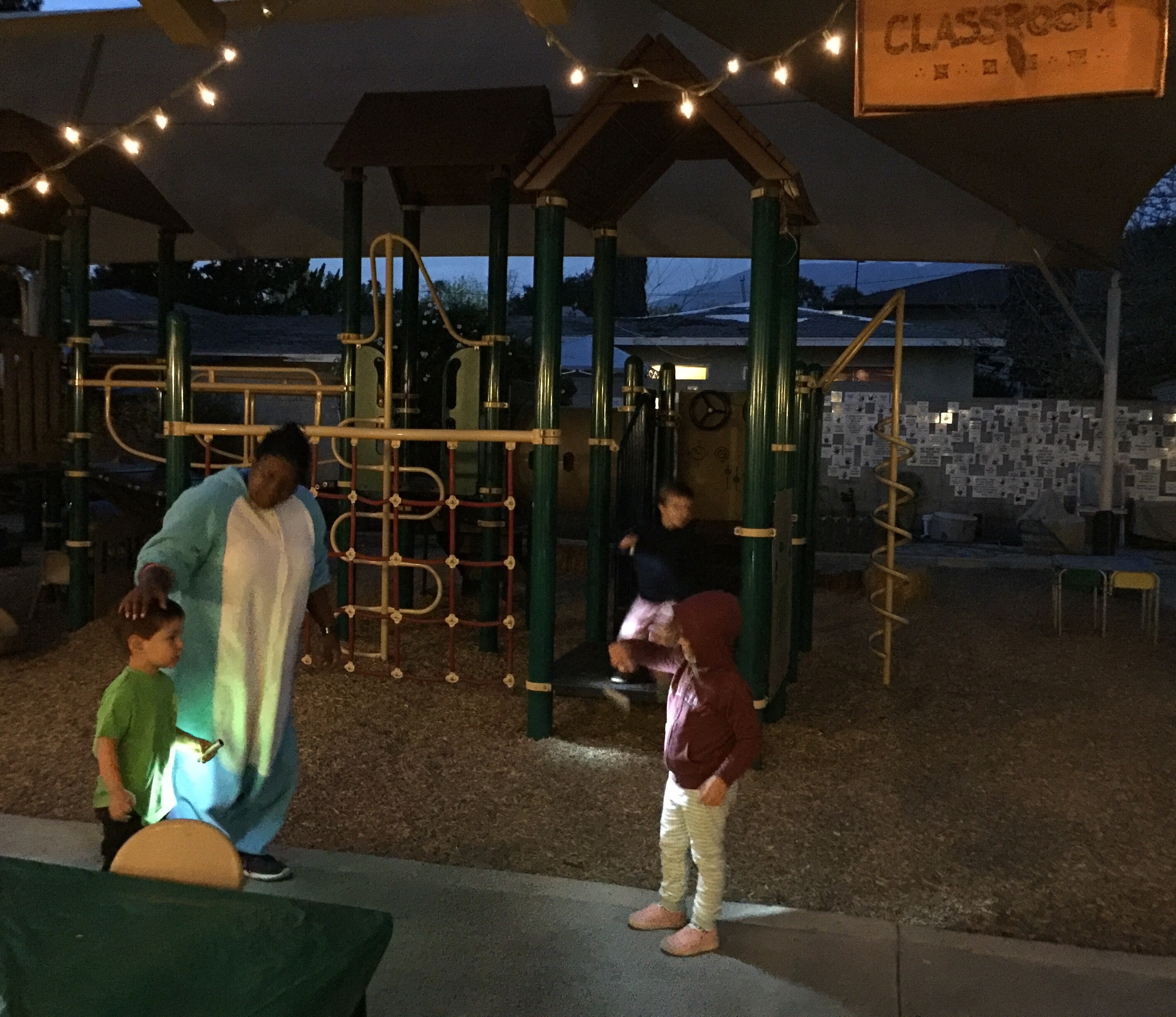 What could be more fun than going to preschool during the day? Going at night! Dressed in pajamas, the kids (and teachers!) played flashlight hide-and-seek, had a flashlight and bubble dance party, ate pizza, then enjoyed a popcorn and a movie! We hope the parents enjoyed their night on the town, but we are pretty sure our night in was WAY more fun!!!