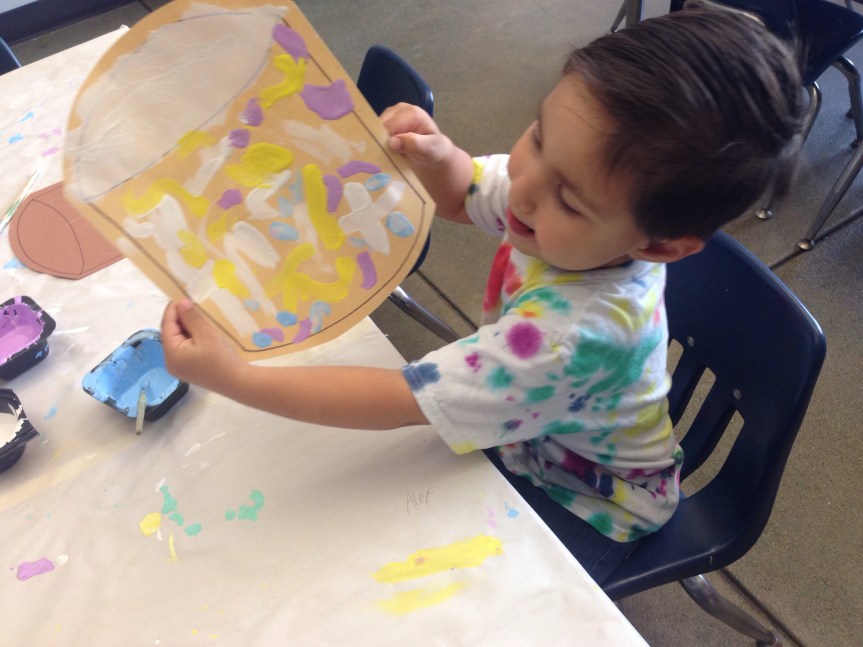We are also integrating Bible foundations through art and storytelling. While we read about Noah’s Ark and God’s Promise at circle time, we created several beautiful rainbow murals for our classroom! We used ordering and sequencing with the song “Make God’s Rainbow Bright” to memorize the colors of the rainbow in order. We worked on color matching and building listening skills as everyone collaborated to make each rainbow.