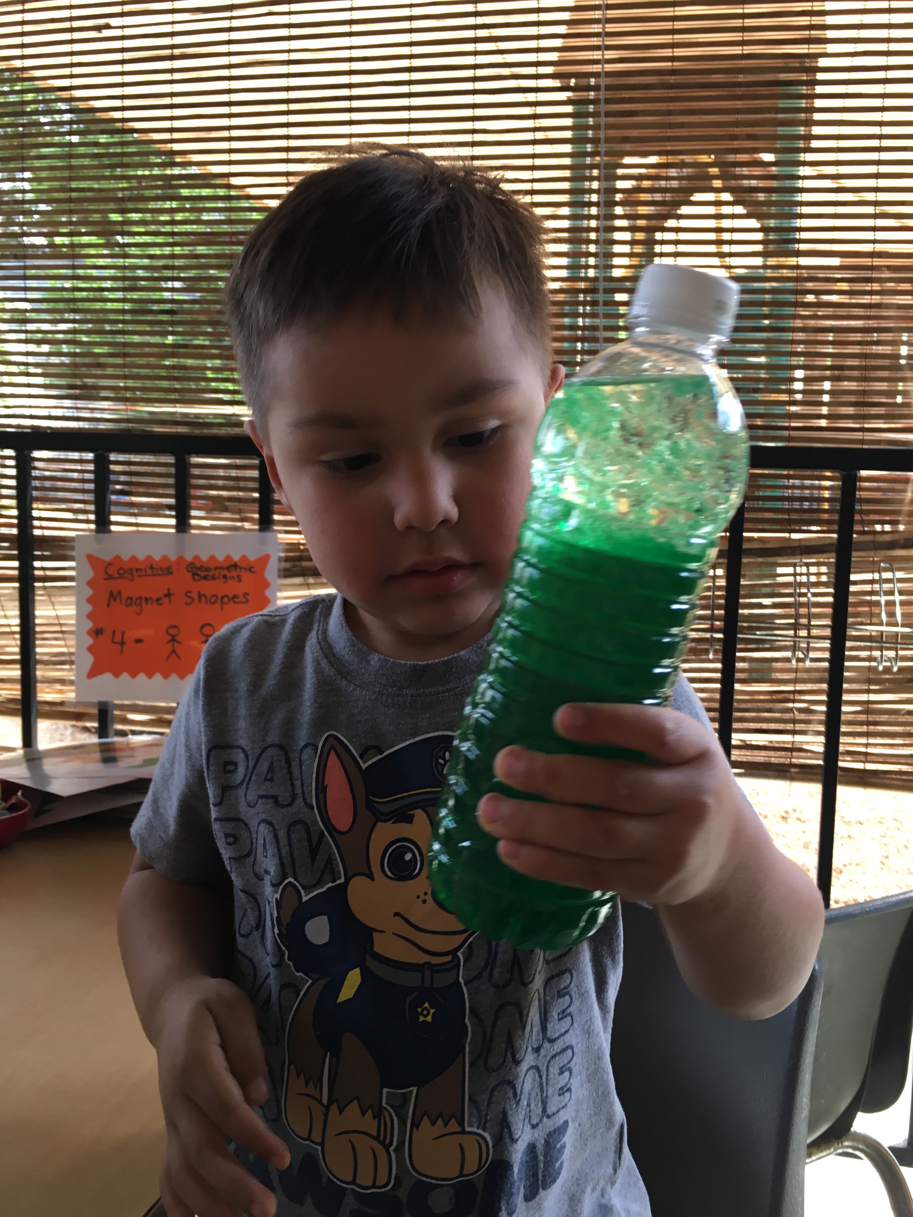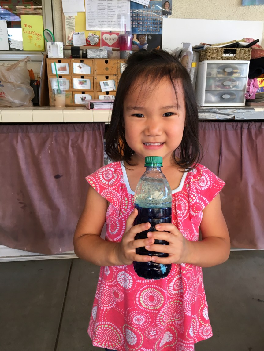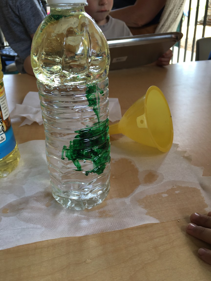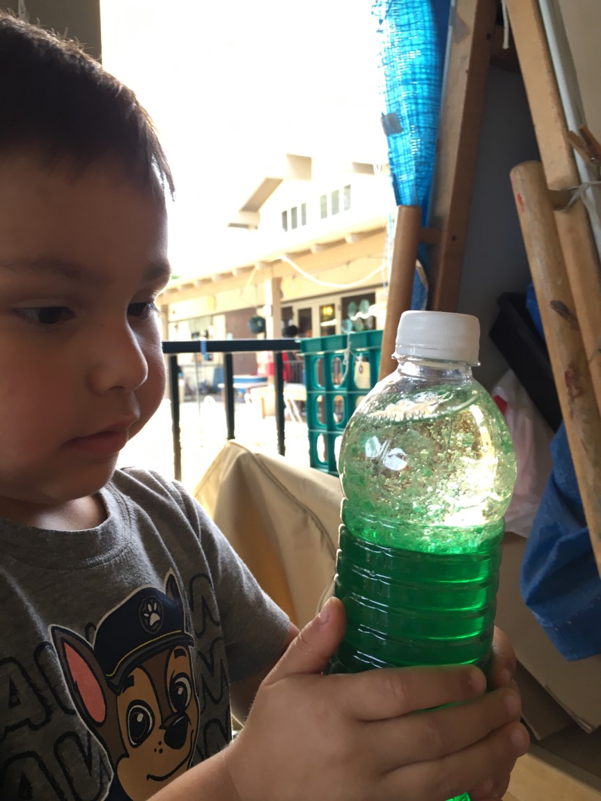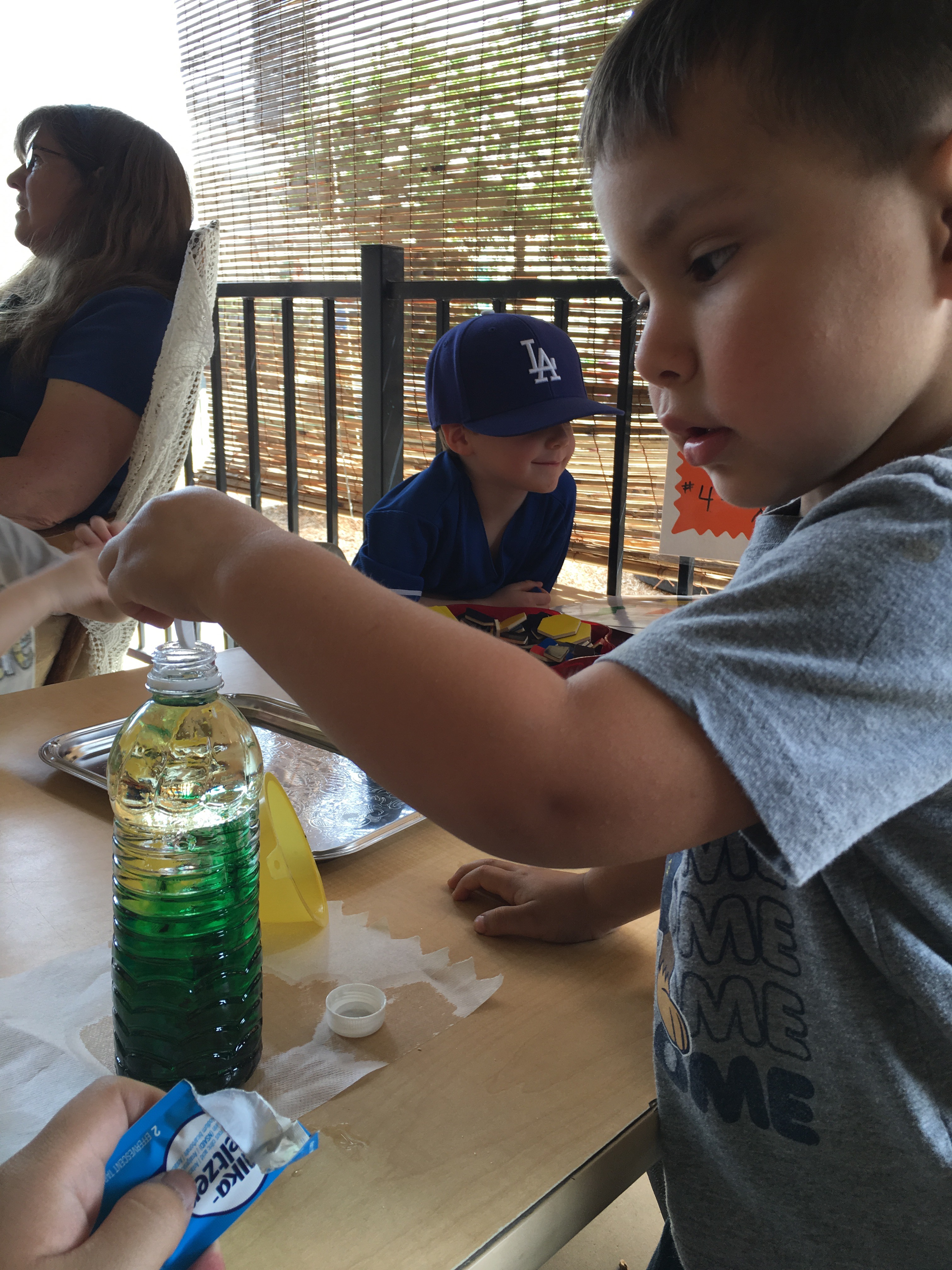It’s a wonder what you can do with some recyclable water bottles, oil, food coloring, water and Alka-Seltzer. The children from Room 3 had an opportunity to satisfy their curiosity by finding out what happens when you add alka-seltzer to a bottle filled with liquids and coloring. Expectations ranged from, “It’s going to explode!” to “Nothing is going to happen.” Despite the differences in their hypotheses, one thing was certain, they all loved the result!