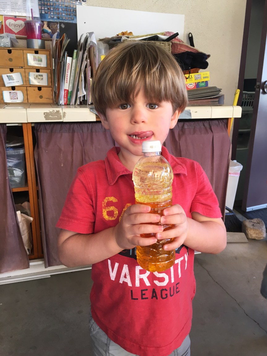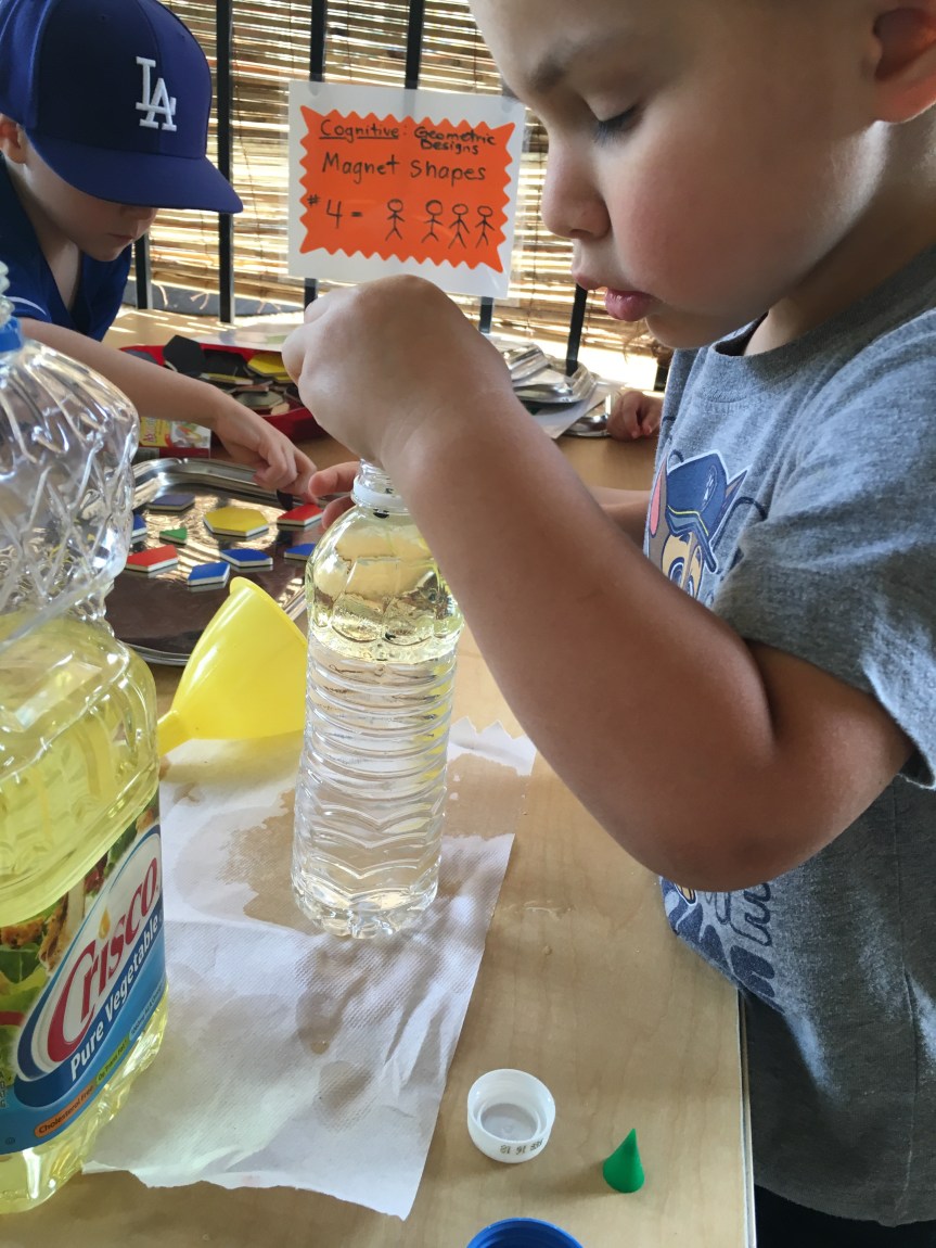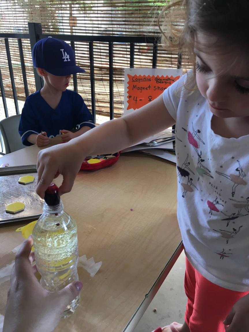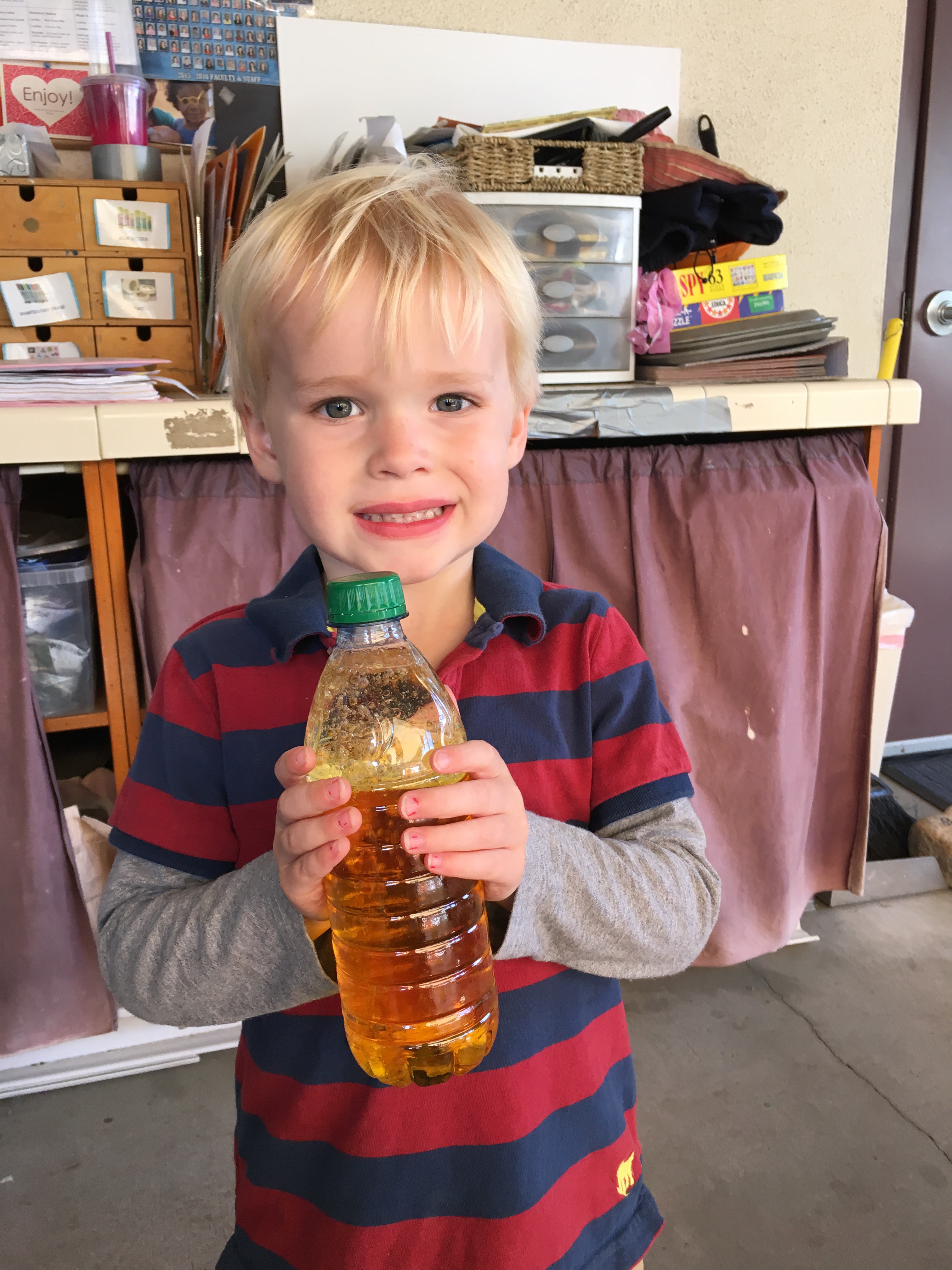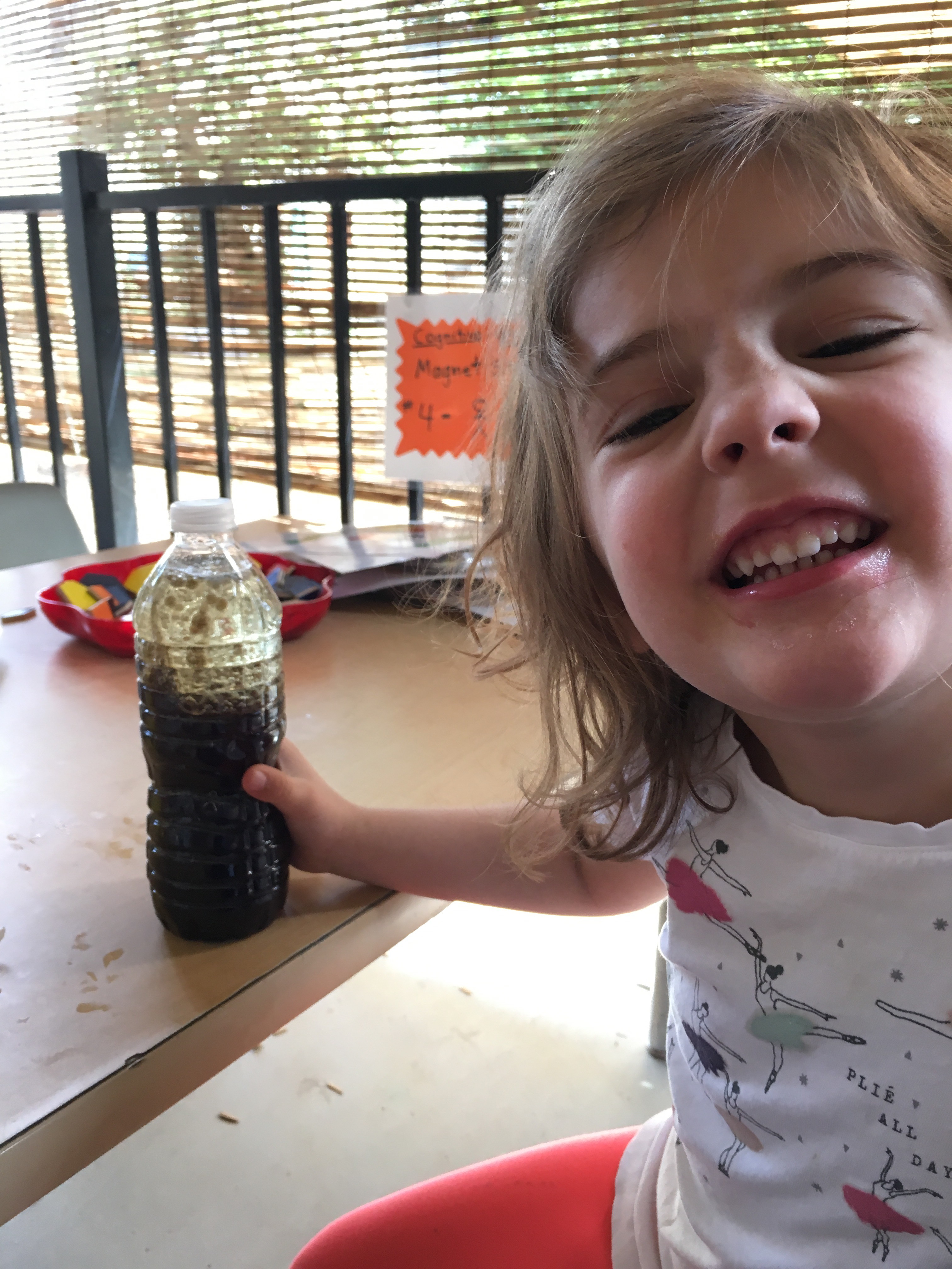 It’s a wonder what you can do with some recyclable water bottles, oil, food coloring, water and Alka-Seltzer. The children from Room 3 had an opportunity to satisfy their curiosity by finding out what happens when you add alka-seltzer to a bottle filled with liquids and coloring. Expectations ranged from, “It’s going to explode!” to “Nothing is going to happen.” Despite the differences in their hypotheses, one thing was certain, they all loved the result!
