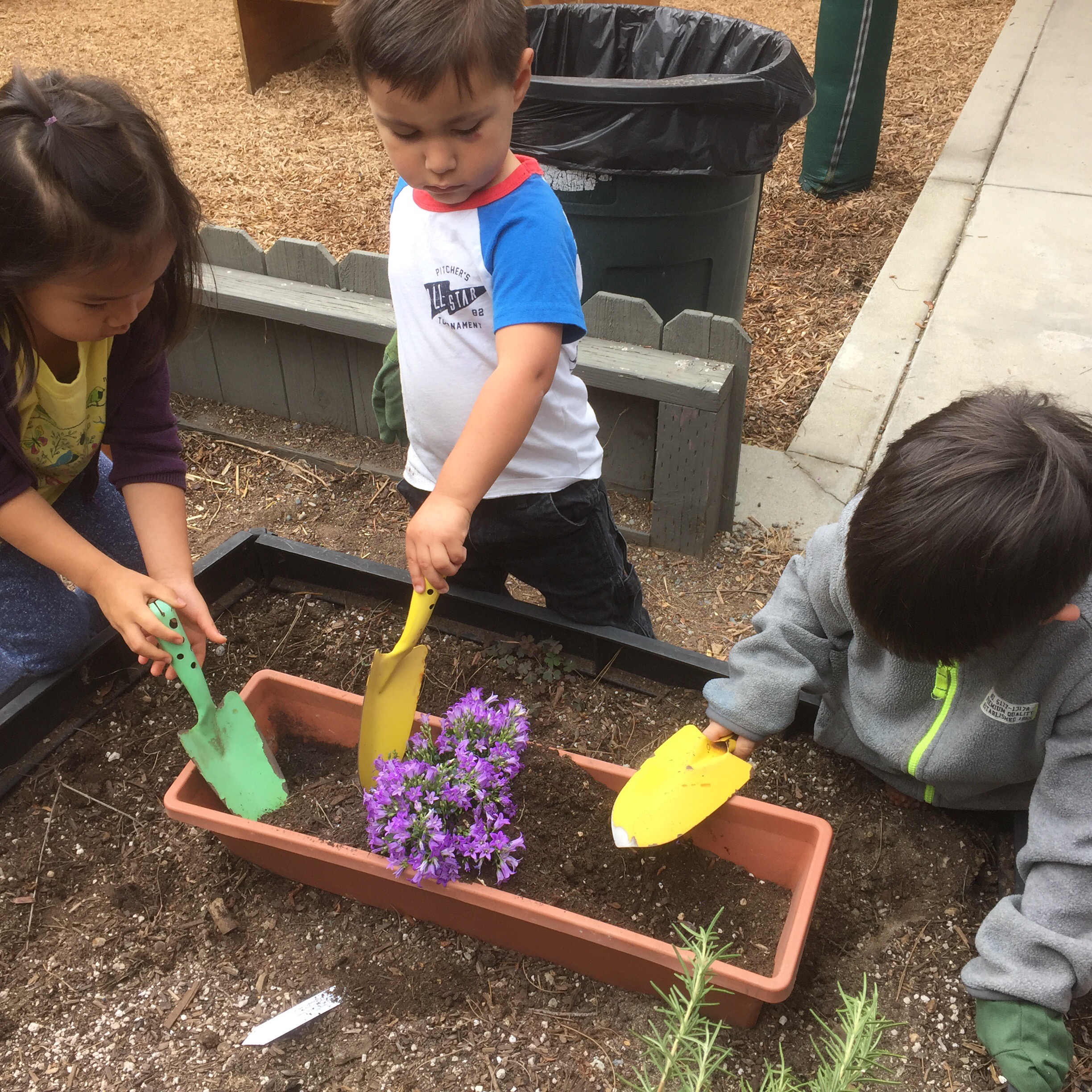 The children from Room 3 planted herbs and flowers in the garden with their teacher. They were really excited about their gardening experience and they had a ton of fun!