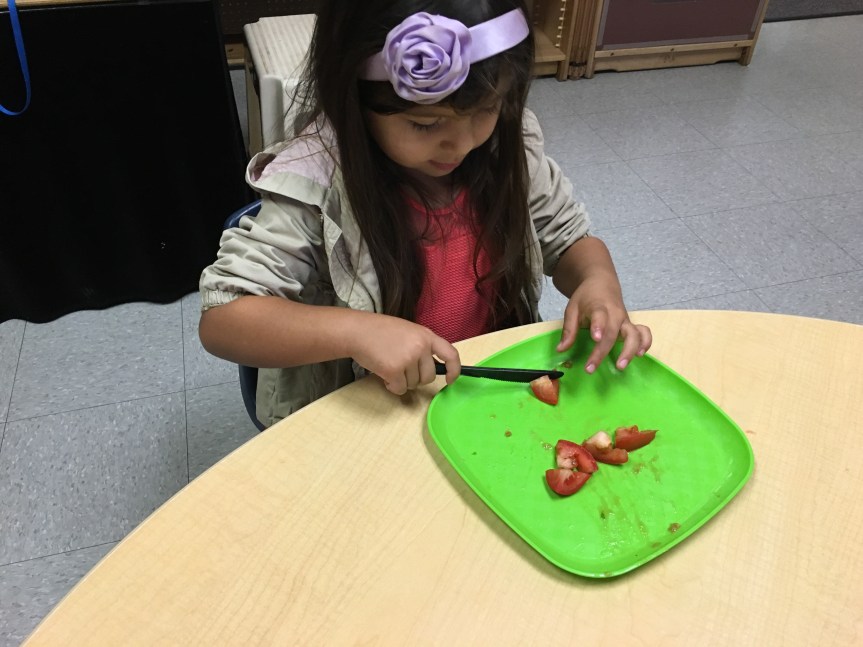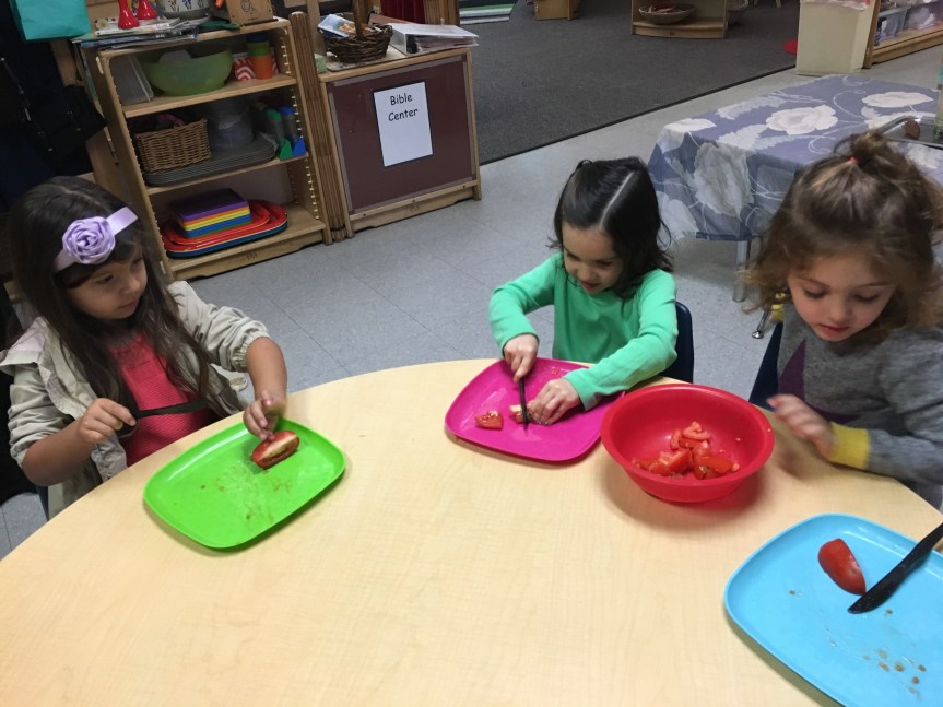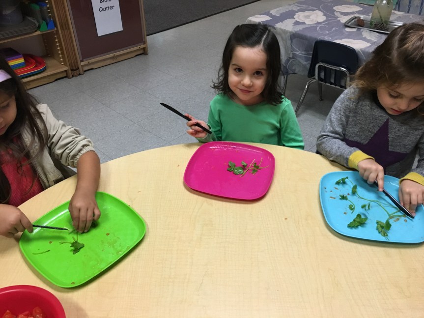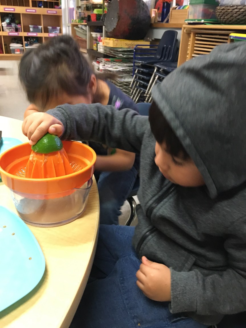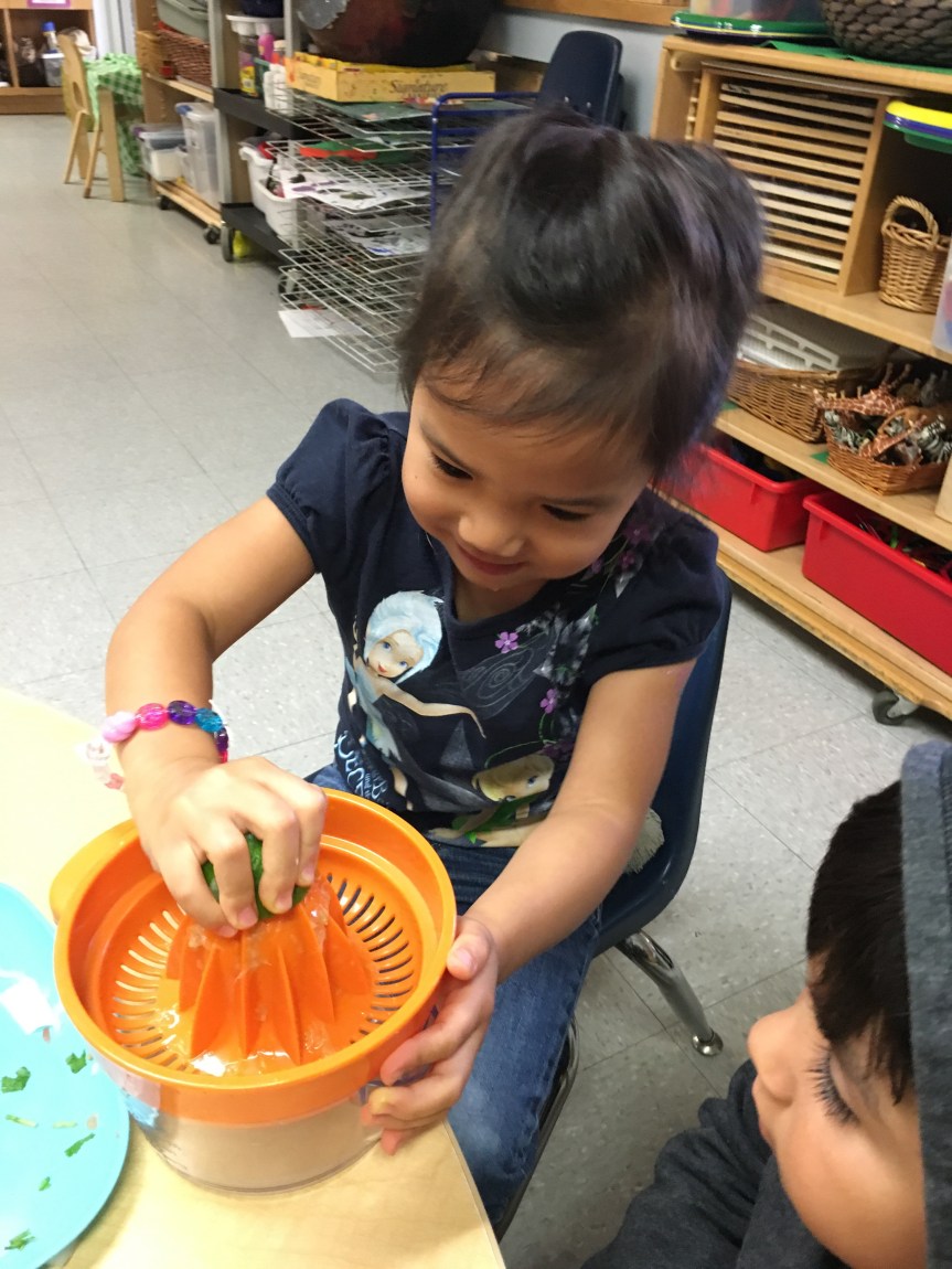 The children in Room 3 had an awesome time making a not-so-spicy dish. What is it you ask? It’s none other than Pico De Gallo! Ingredients were chopped, diced, sliced, squeezed, measured and poured. Some of the children even had a chance to taste limes! The children unleashed their inner Iron Chef and created a dish that appealed to the palates of children and teachers alike.
