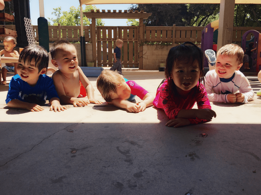 Outside we were busy staying cool. Ms. Cindy knows how to keep our young ones excited and engaged while learning how to enjoy the heat! We danced and played in the sprinklers, pumped colorful water into sorting devices, and bonded together as we got our daily dose of vitamin D- drying off in the warm sunshine.