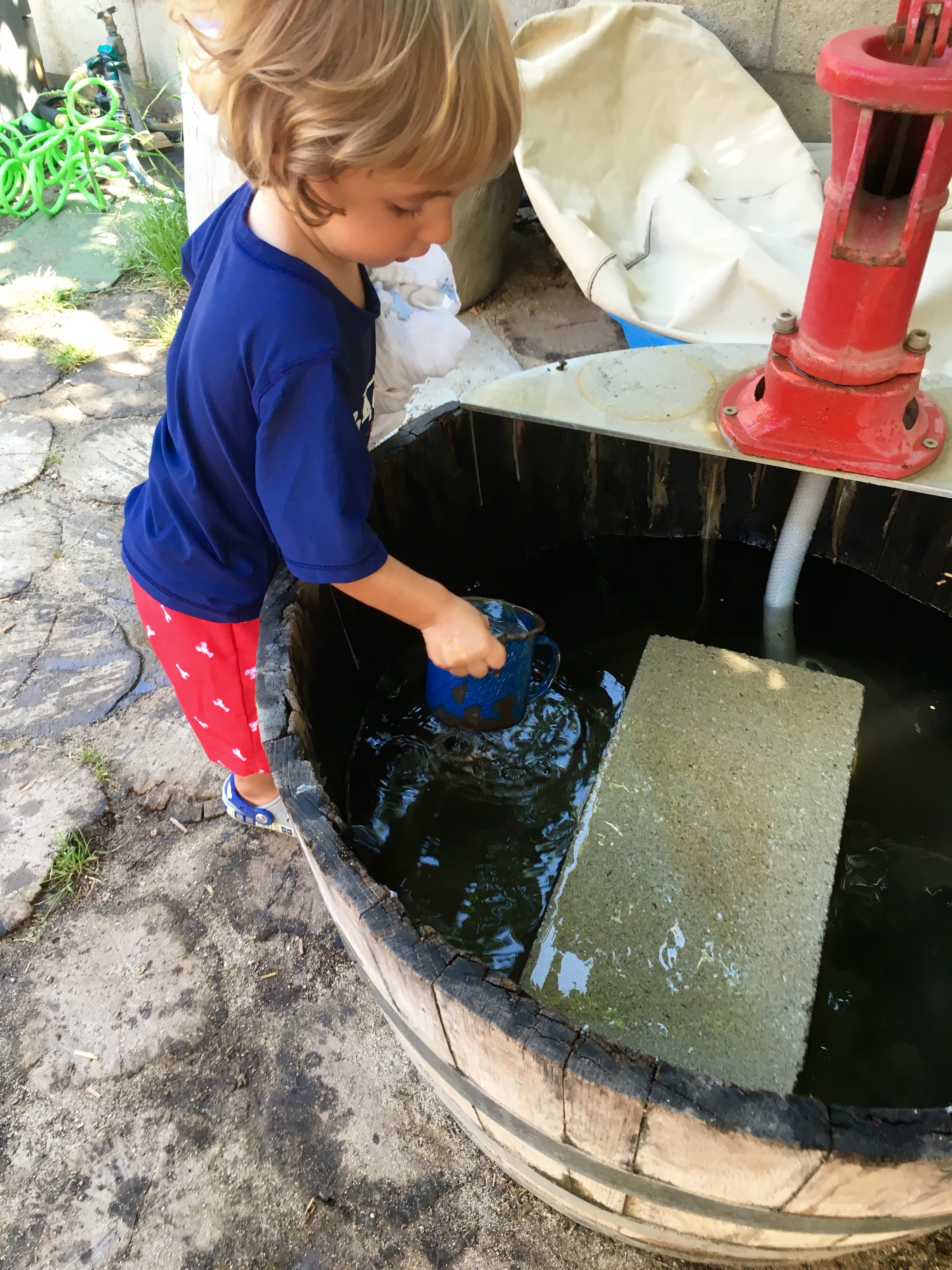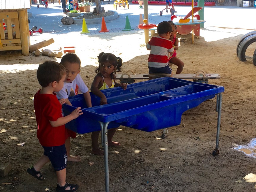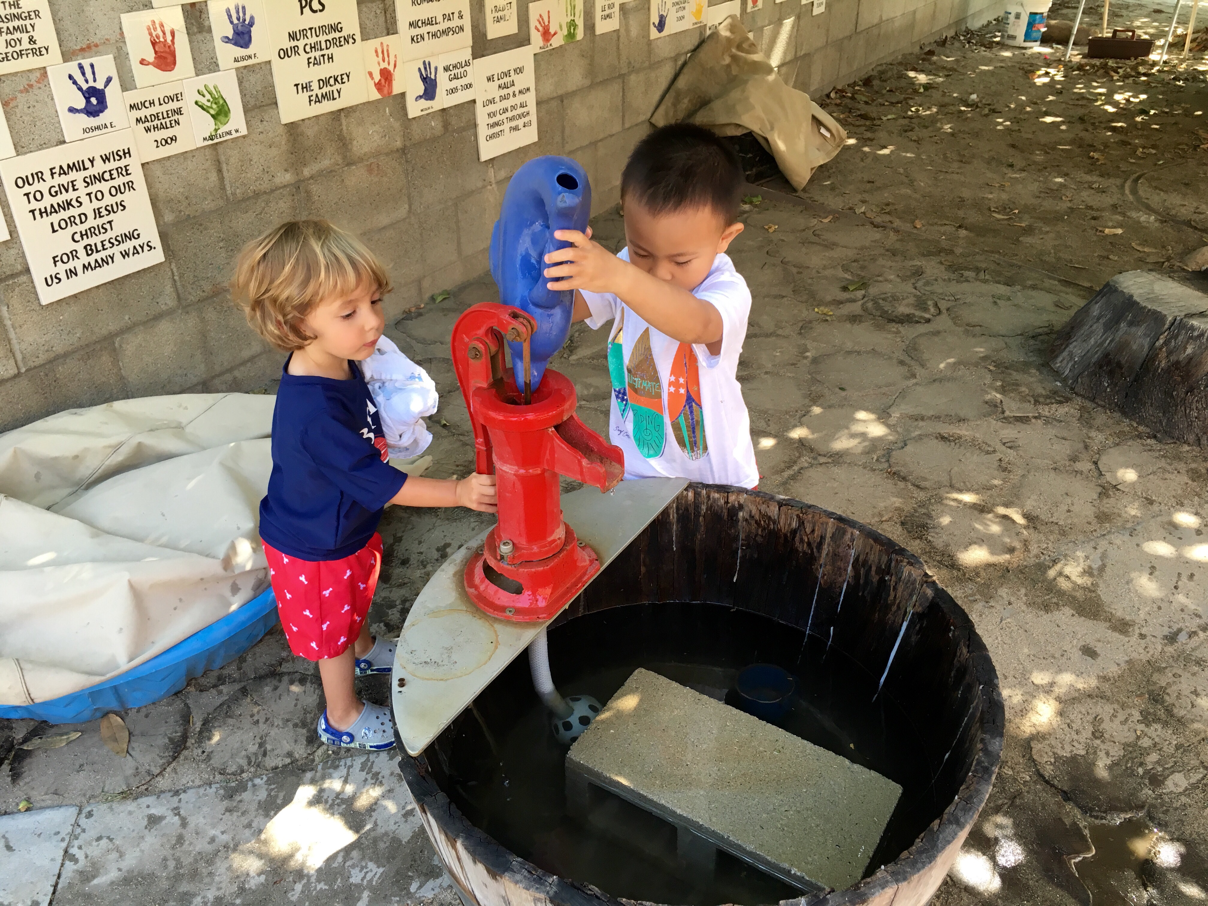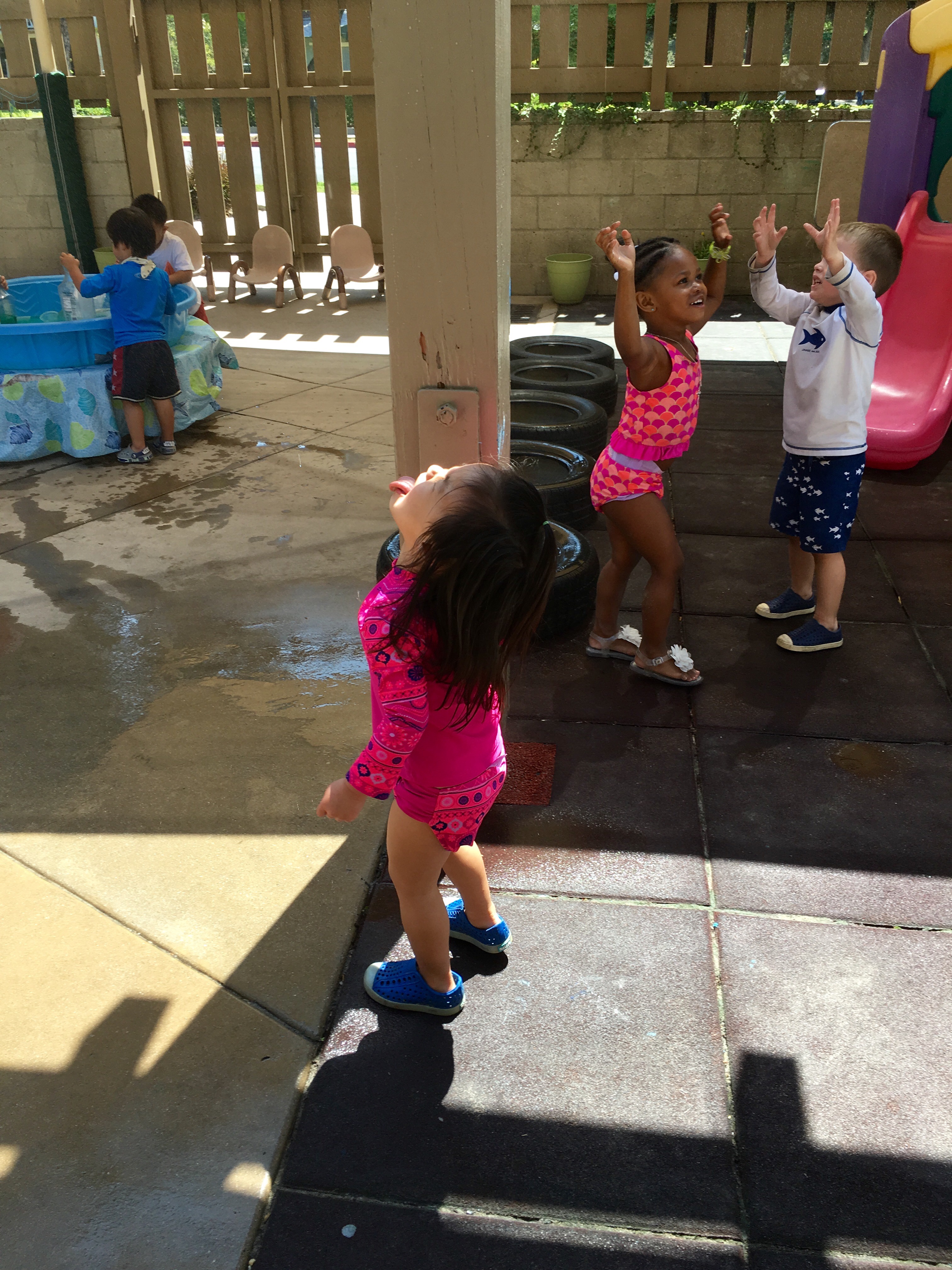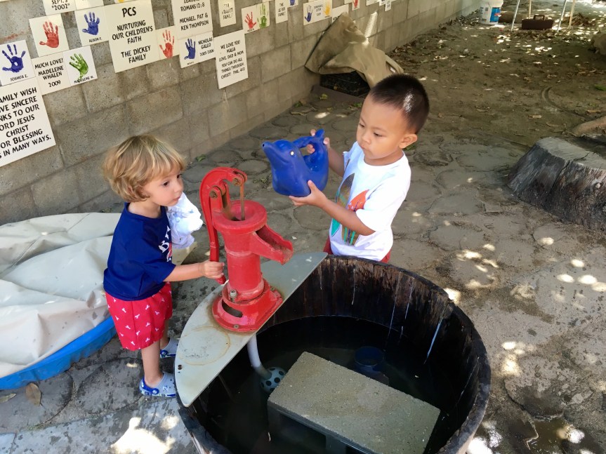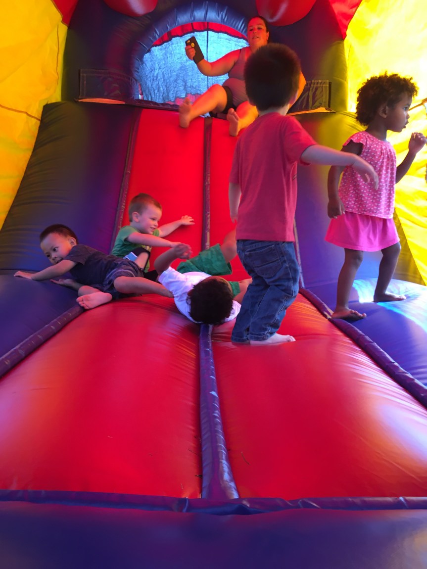 We stayed cool during the heat wave by ramping up the outdoor water play, and closed out the week with a day of fun in a bouncy house! Everybody jumped, took turns, and worked up a healthy sweat with a big smile. Most importantly we all stayed hydrated and praised the Lord for the water that keeps us going. As we all continue to conserve water in this drought we have come up with fun ways to conserve water and remain cool in the heat!