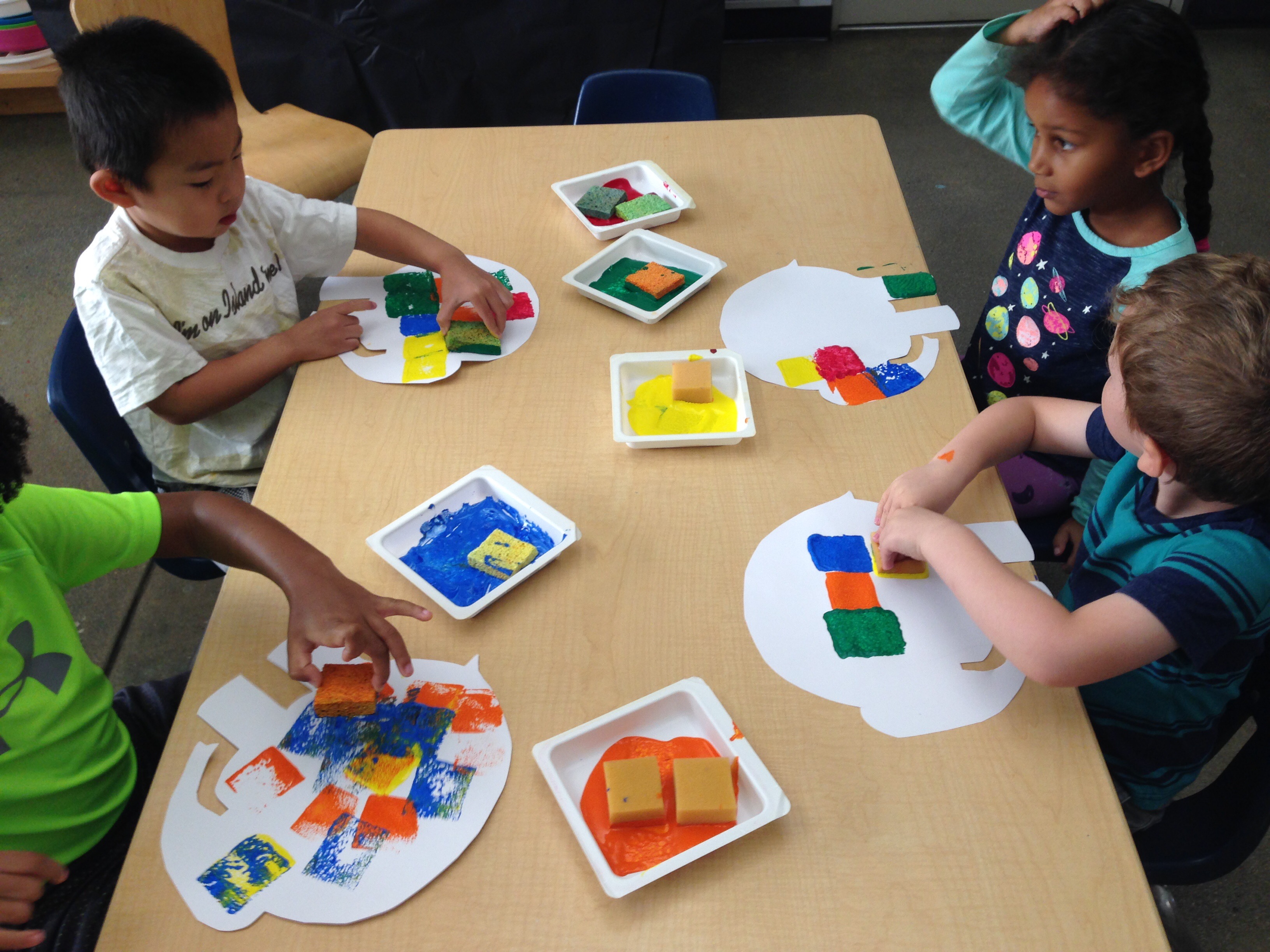 The children then learned about patchwork and painted their very own “Elmer” using sponges as a painting tool.