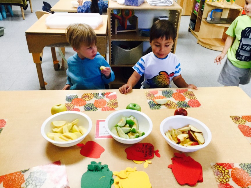 Can you believe school has been in session over a month already? We are now “falling” into the autumn season…one of our favorites here at preschool. Though the weather isn’t necessarily cooperating (20-30 degrees cooler would be much more on par with ‘fall’ weather!), all the classrooms are gearing up to study fall, harvest and all that this season brings. Within the next week or so, you will see our Outdoor Classroom transform into a festival of color with pumpkins, gourds, and more adorning the yard.