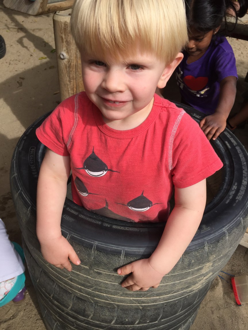 Some friends decided to imprint their playdough with the autumn jewels while others saw an opportunity to build a landscape of “trees” by sorting out and only using the leaf jewels to stick up straight in their playdough! When children take place in activities that build on their fine motor skills (like making prints in playdough) they are learning about basic concepts of physics like force, quantity conservation and other other components of cause and effect. They are also engaging in language development as we discuss and describe what happens to the playdough and gems while they work. For example, “The jewel sinks into the playdough when you push it down” is an observation we made which inspired a conversation about homonyms! Some words sound and are spelled exactly the same but can have very different meanings… which is a lot for a hard-working brain of only two years to make sense of! By talking through these fun quirks of language with their teachers, and a first-hand example, these abstract concepts are made much more concrete to our young friends!