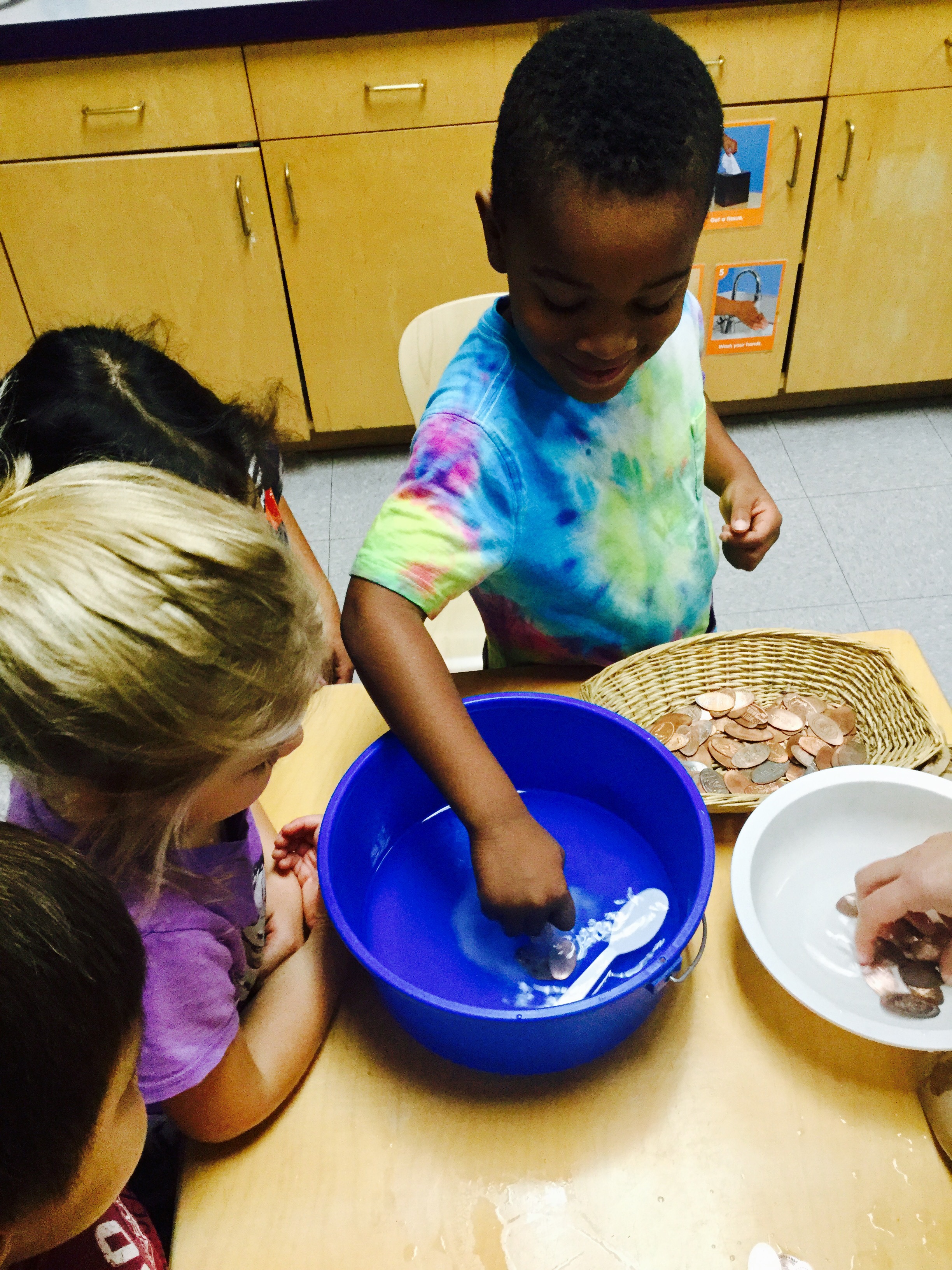 Ms. Daisy also brought with her a special item to share with the class: her coin collection from the many places she’s traveled! As a small science experiment, friends had the chance to use salt, vinegar, and water to clean the coins and see them be extra shiny. See for yourself, below… Very cool, right?!π°β¨