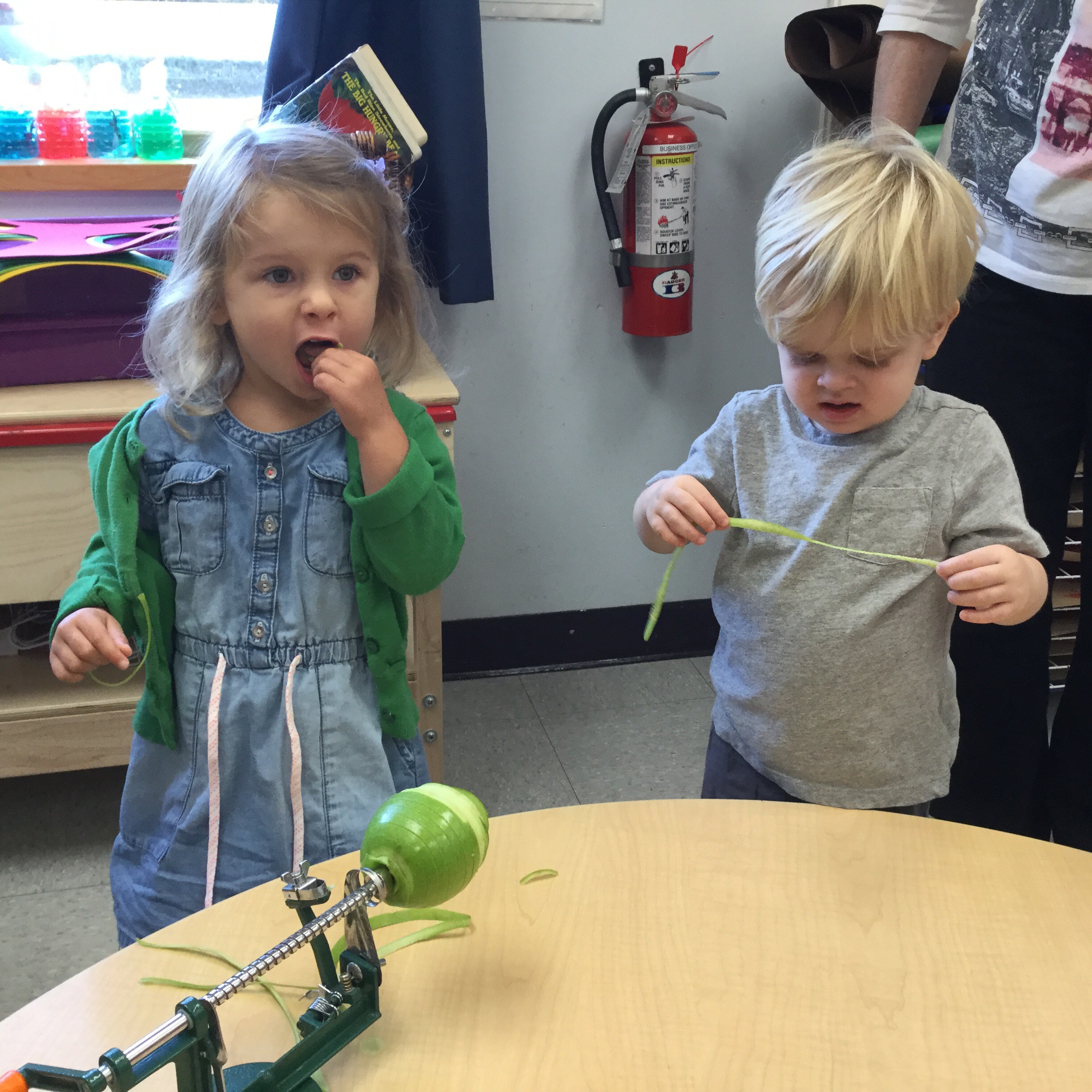 The children heard and read many apple books, stories and songs, such as “Adam and Eve,” from the Book of Genesis, “Up, Up Is Apple Picking Time,” by: Jody Fickes, “Apple Picking Day,“ by: Samantha Brooke, “3 in 1,” by Joanne Marxhausen. Song: “Way UP High In a Tree.” Apples! APPLES! APPLES!If that wasn’t enough we also painted large apples, decorated apples with stickers, made star print found inside our apple like the story of The House with No Window, No Door and a Star Inside.