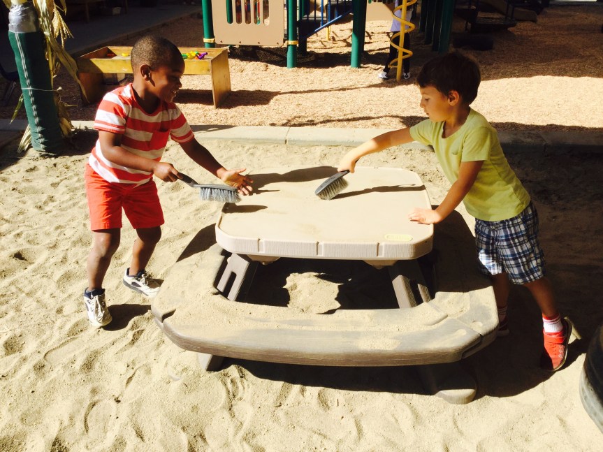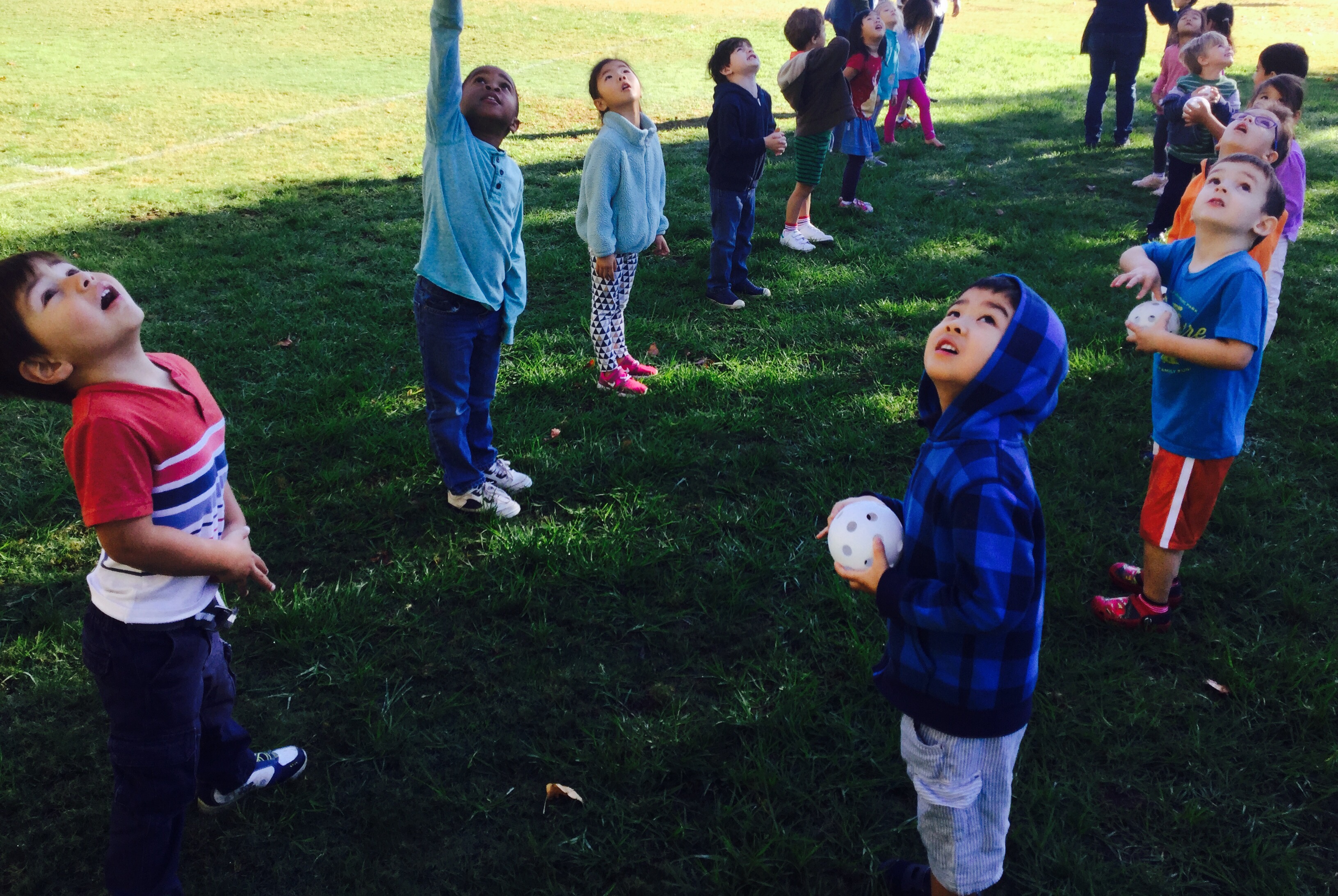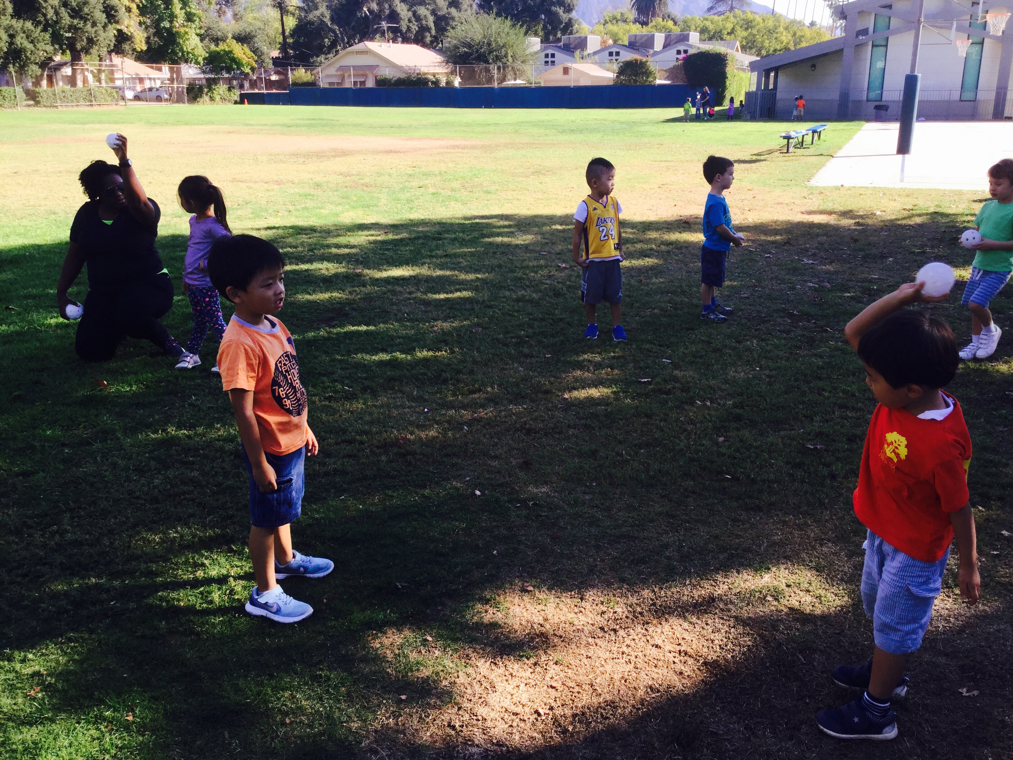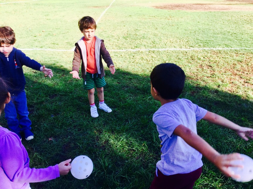 During our big field activities, we’ve been practicing our hand-eye coordination by learning to aim well and throw a ball at our friends to catch. We’ve had so much fun!