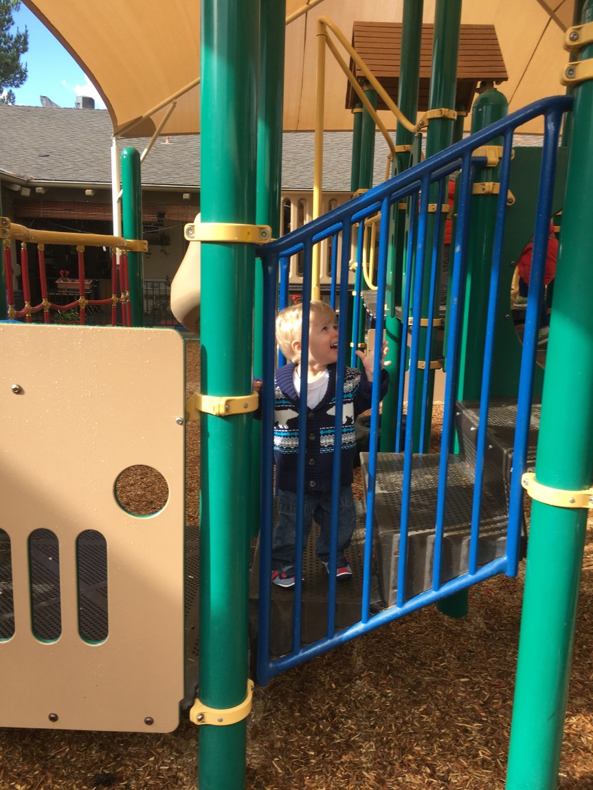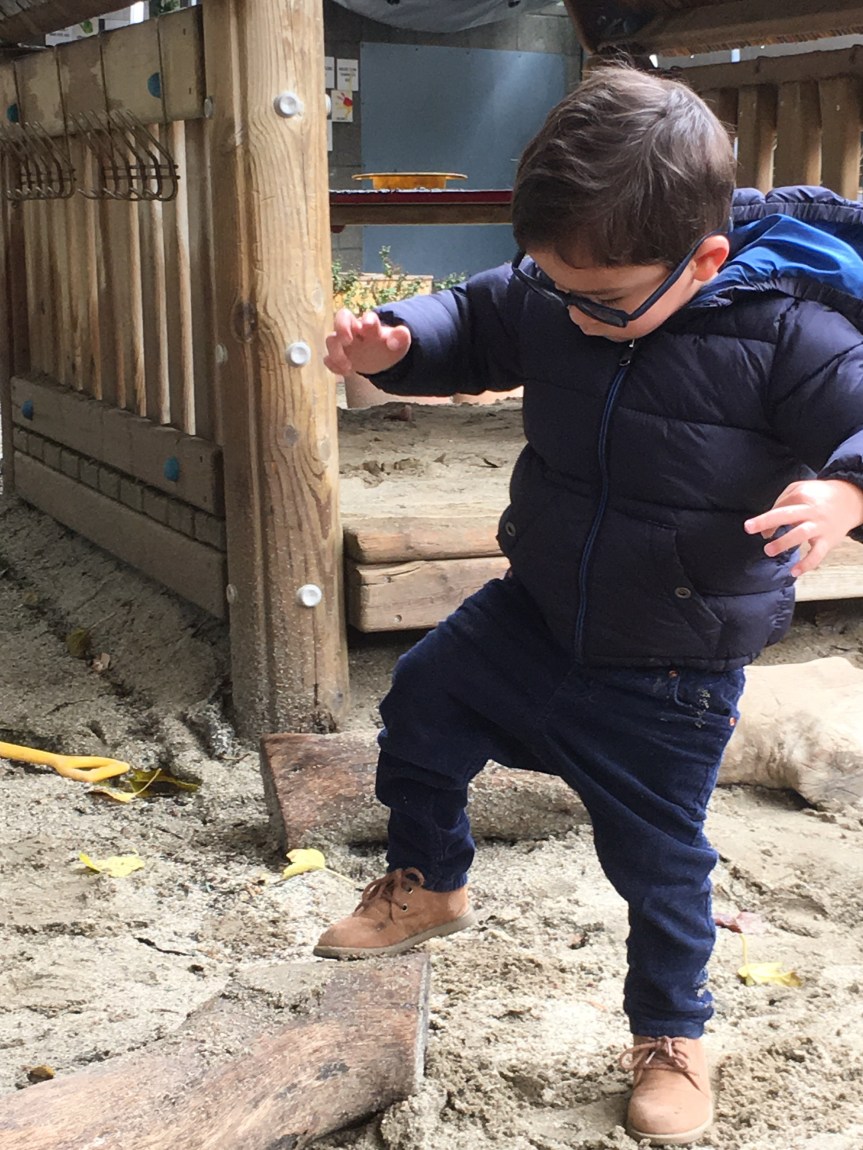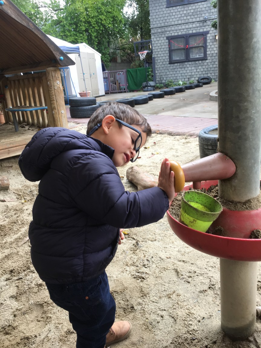 Our two-year-olds jumped right back in to the cozy routine of their classroom and warmly welcomed all our new friends to the Room 5 family! They have been eagerly awaiting their return to the big playground and we all know that two-year-olds are nothing if not tenacious negotiators… these toddlers were NOT going to let a little rain keep them from a good time! So, we layered and buttoned up and headed outside!