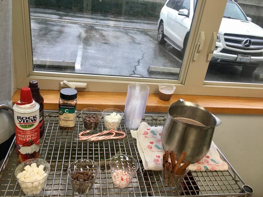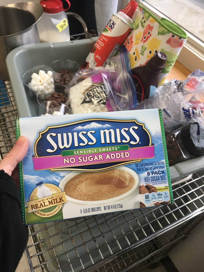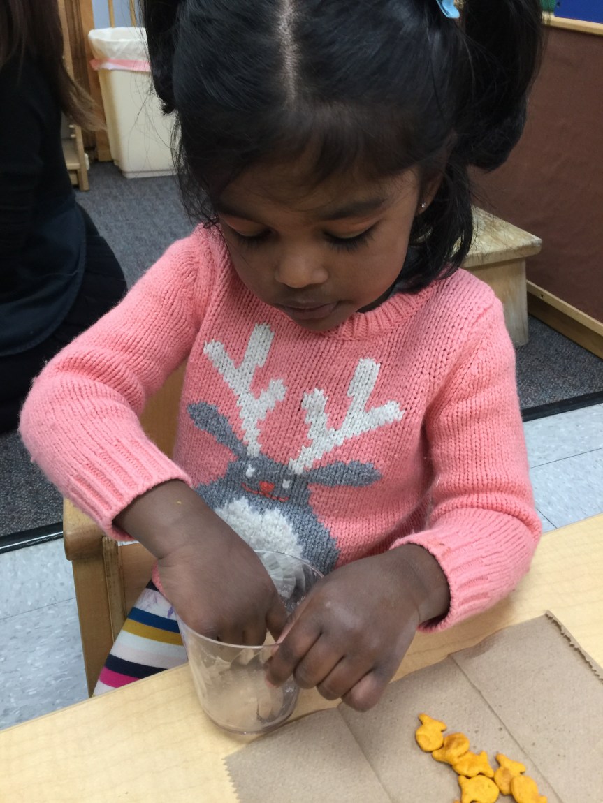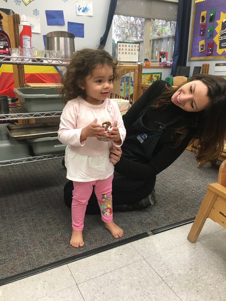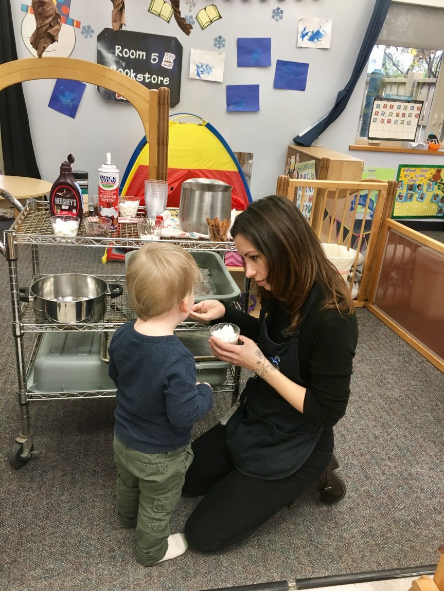 Last week Room 5 had a rockin’ hot cocoa bar with our morning snack and got a yummy lesson in applied math and graphing at the same time! One by one everyone came up to customize their own hot cocoa cup, and afterwards we voted on our favorite topping. We learned new vocabulary, made scientific observations about which items melted and at what speed (marshmallows take longer to melt than whipped cream!), and each friend cast their vote for favorite topping on our bar graph! Whipped cream and chocolate syrup tied for first place with marshmallows just one vote behind. This might be one of our favorite ways to introduce graphing to preschoolers. What do you think?