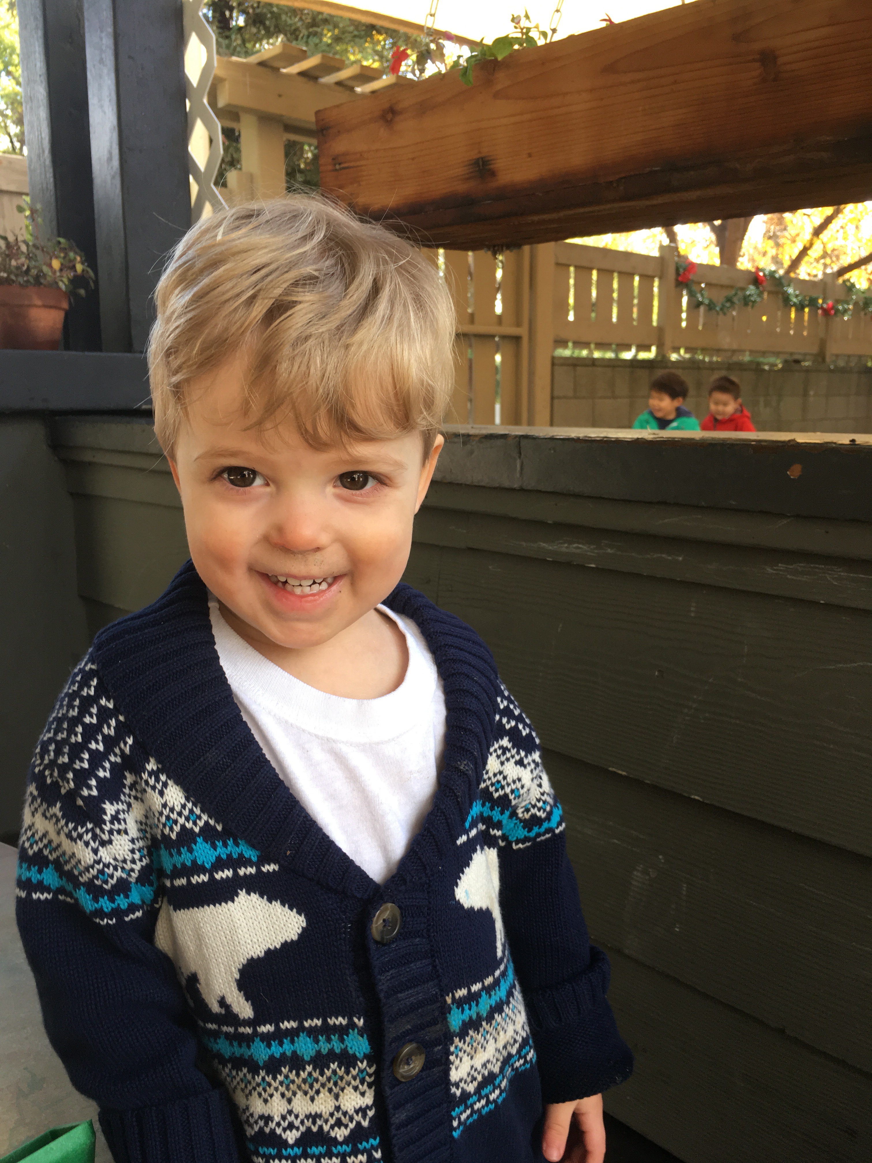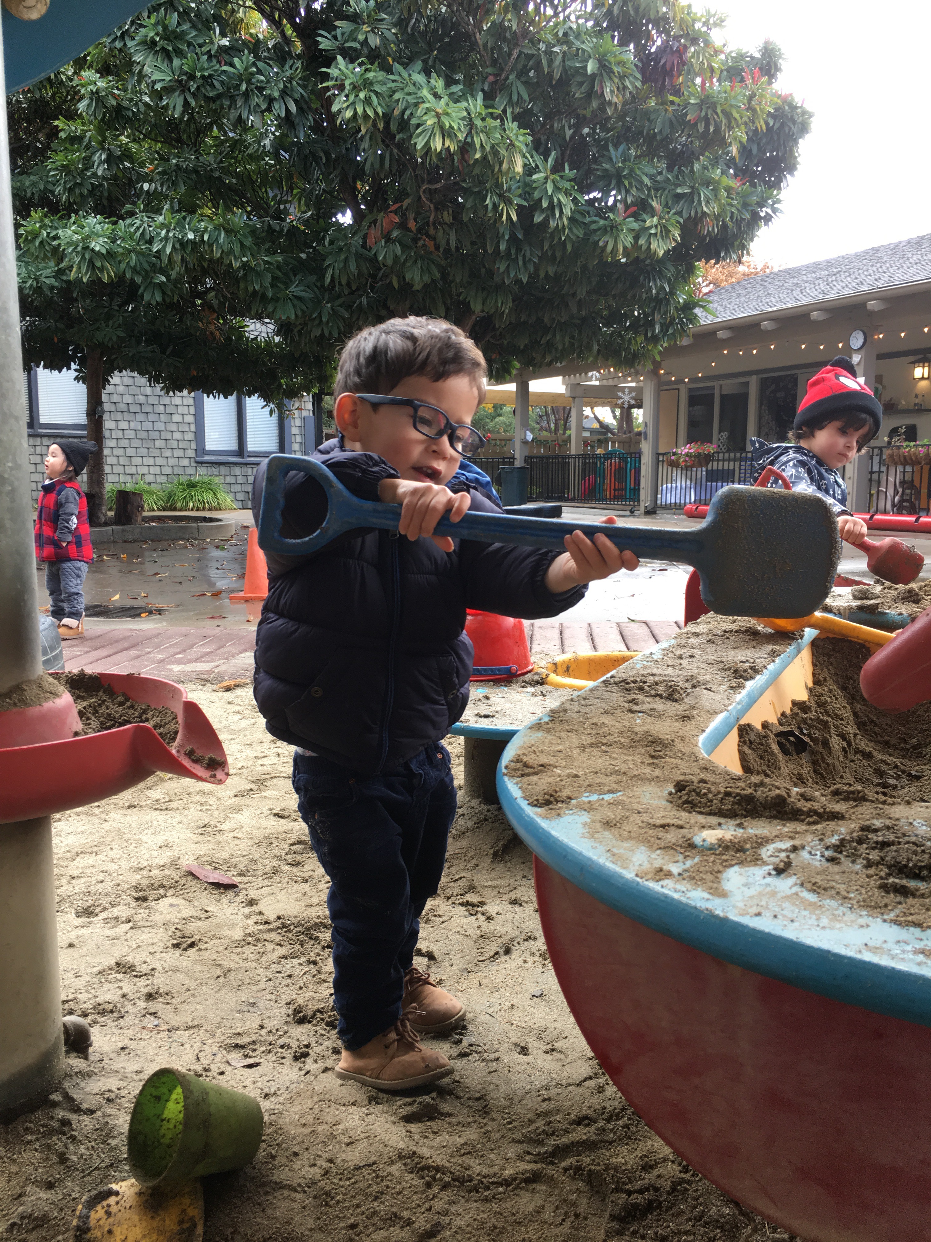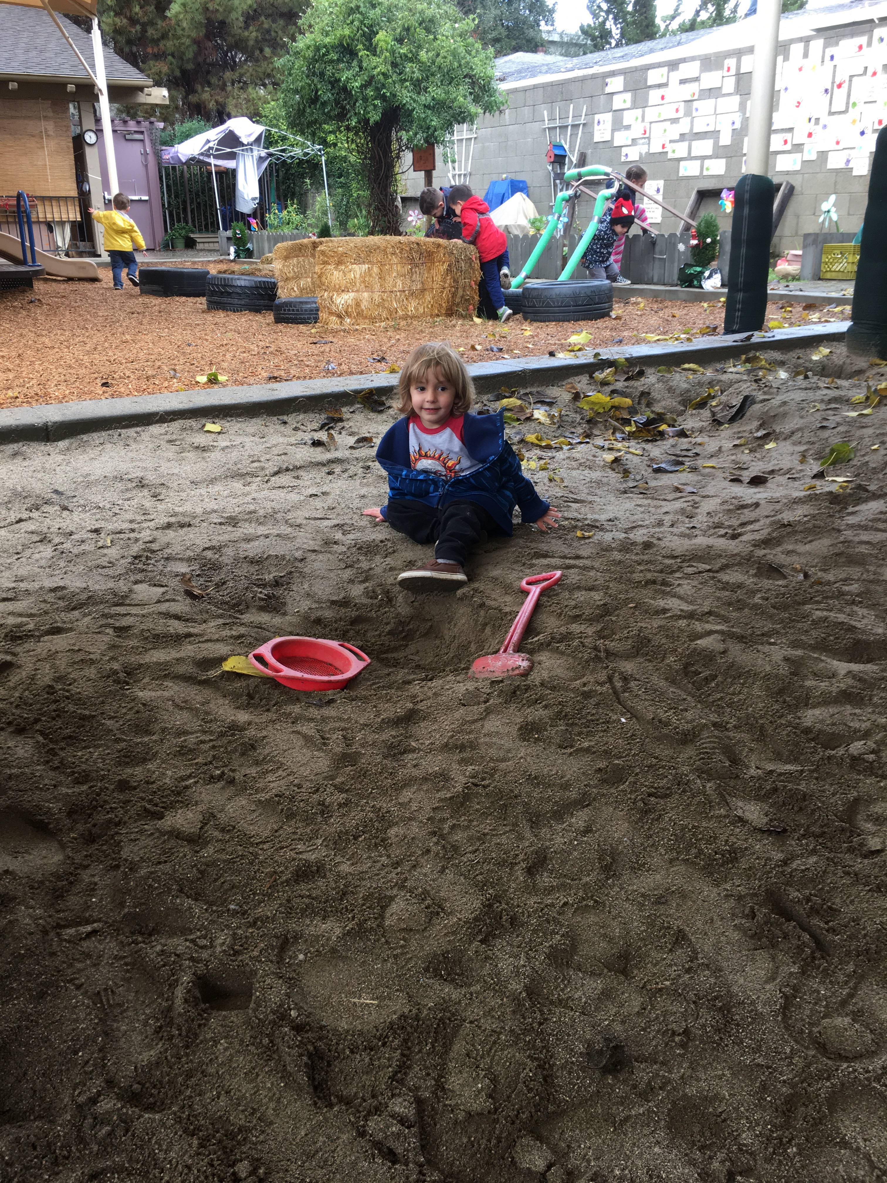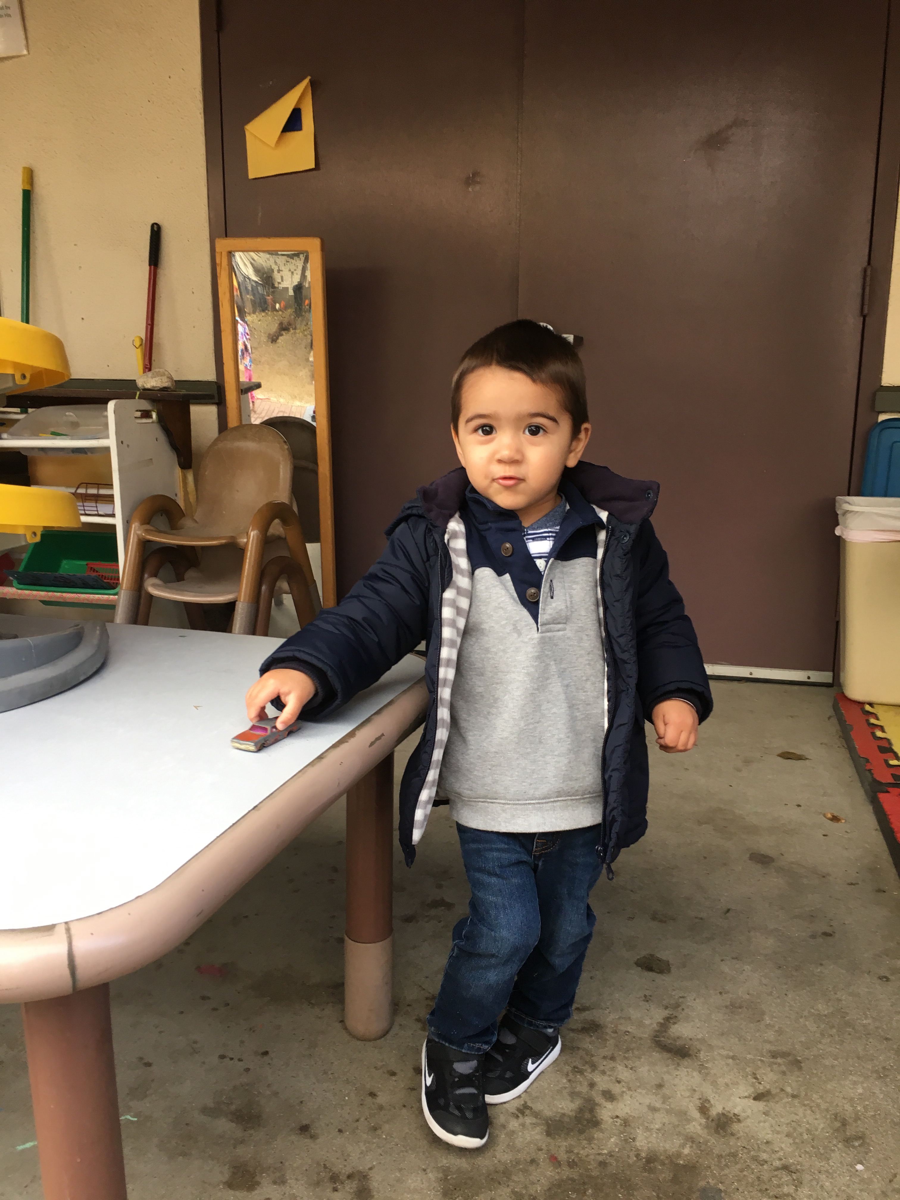 Our two-year-olds jumped right back in to the cozy routine of their classroom and warmly welcomed all our new friends to the Room 5 family! They have been eagerly awaiting their return to the big playground and we all know that two-year-olds are nothing if not tenacious negotiators… these toddlers were NOT going to let a little rain keep them from a good time! So, we layered and buttoned up and headed outside!