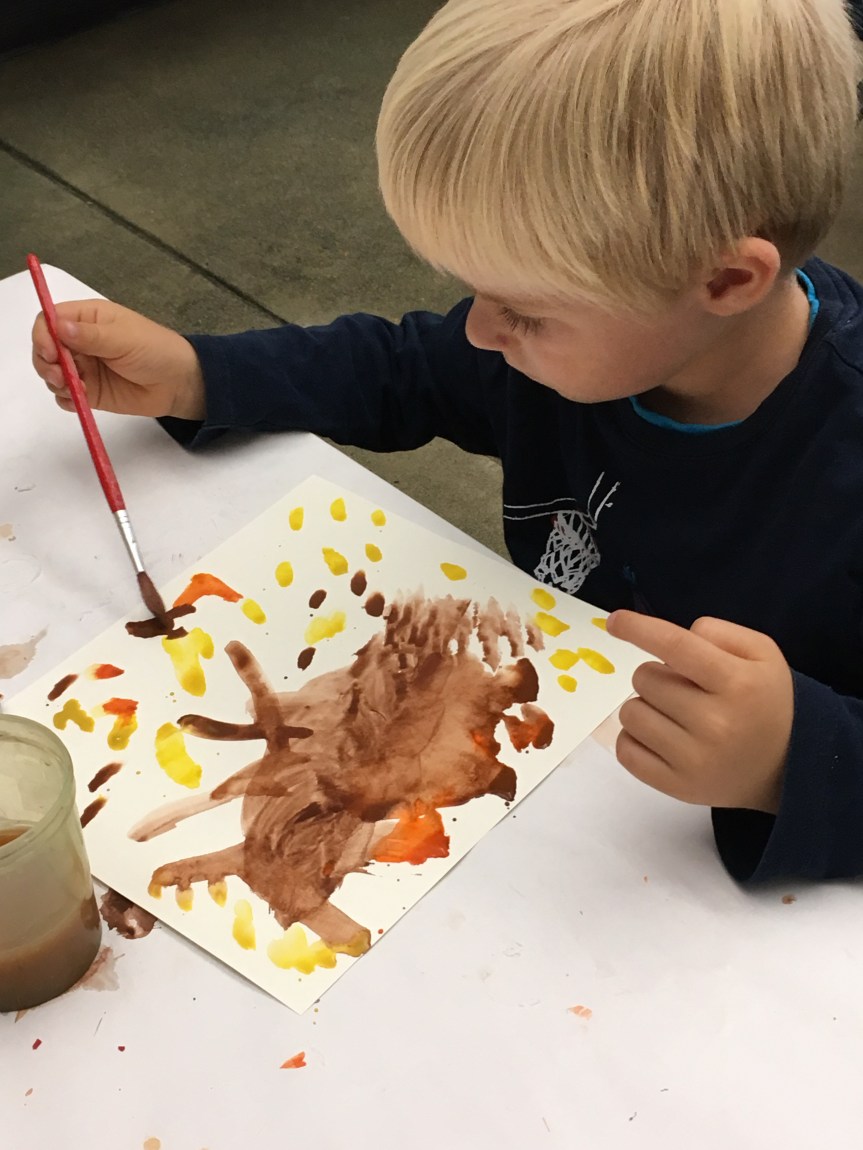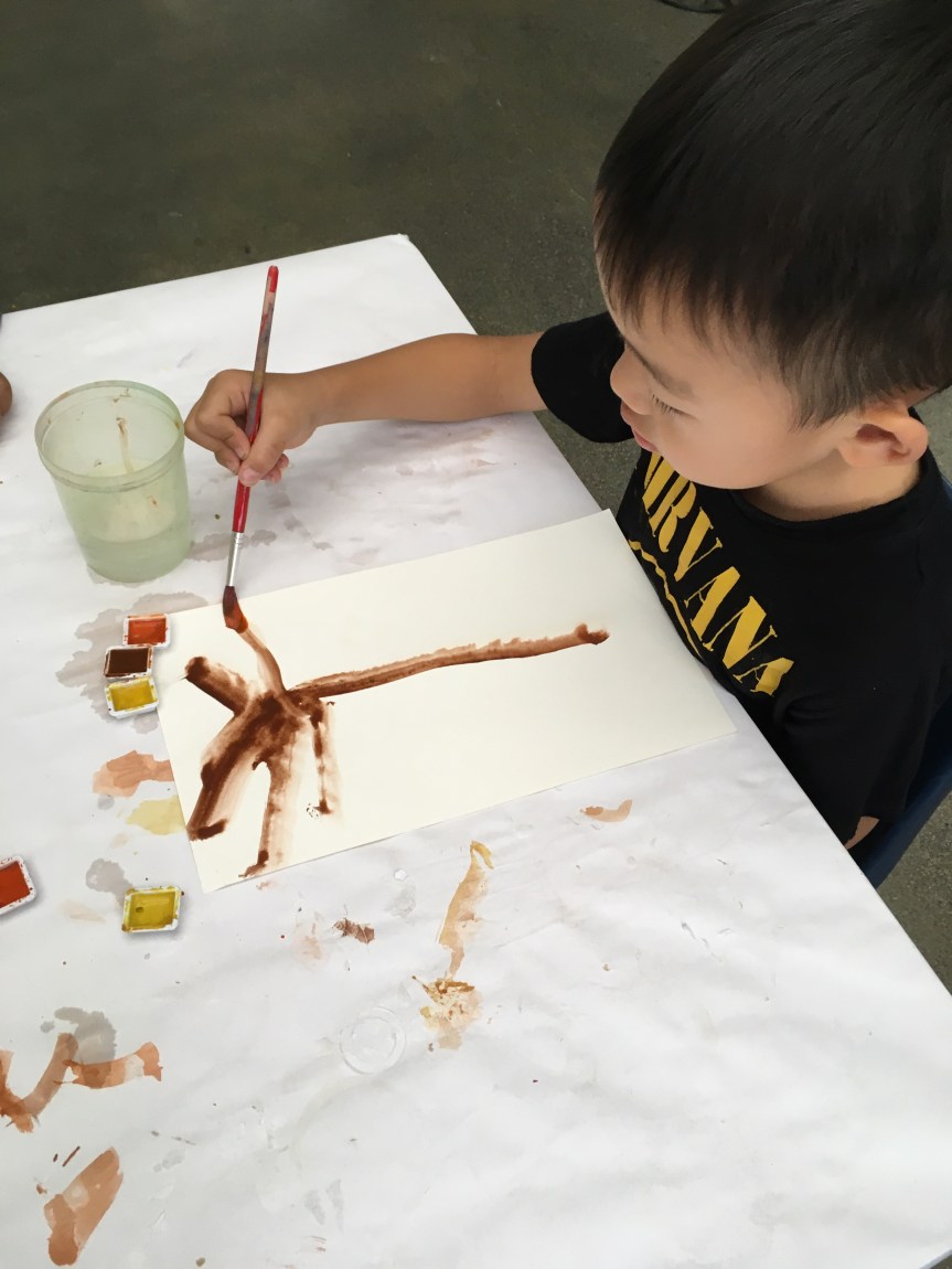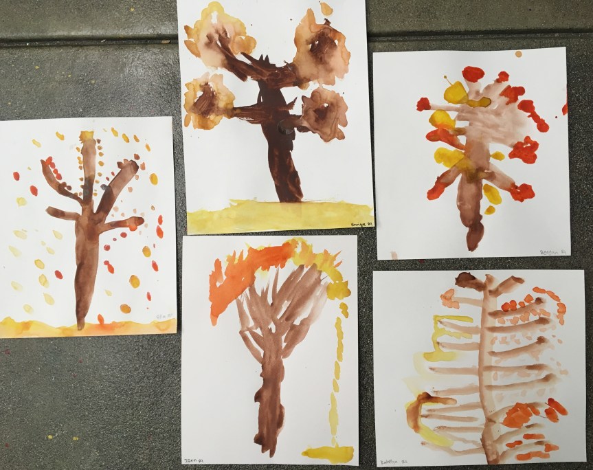 Fall is my personal favorite season, and because I’m bias, we tend to do various seasonally-based art projects during this season. We learn all about the different leaves and we investigate the process of the change of colors of the leaves. We also talk about how it gets darker earlier in the day, how it begins to get a little chillier, etc. For this seasonal project, the children painted a beautiful fall tree painting using water colors. Others painted a pile of leaves…
