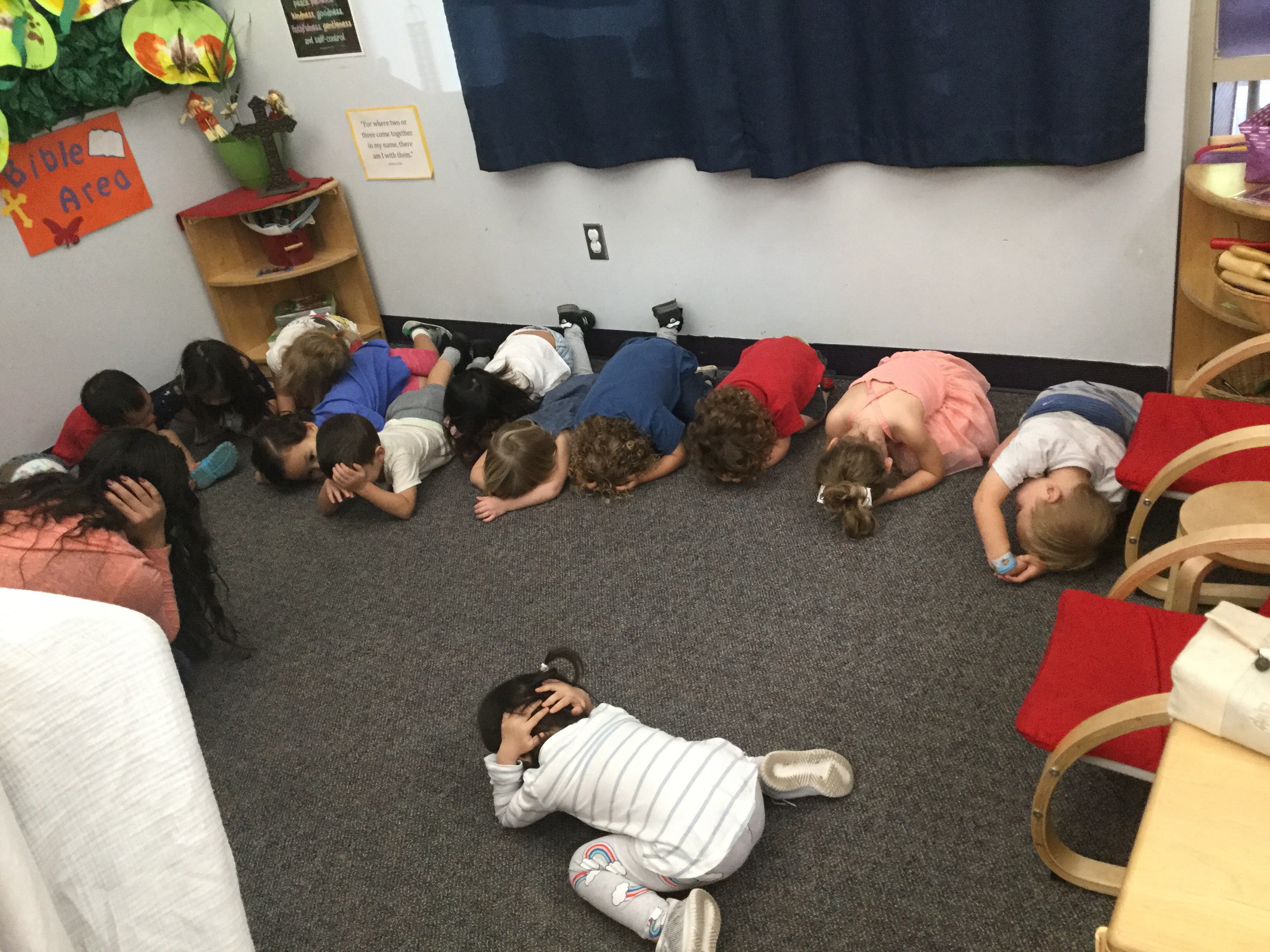 We finished with a bag…YES, we were part of The Great California Shake Out.🤗 We practiced in class then we did the big practice by joining the big school.