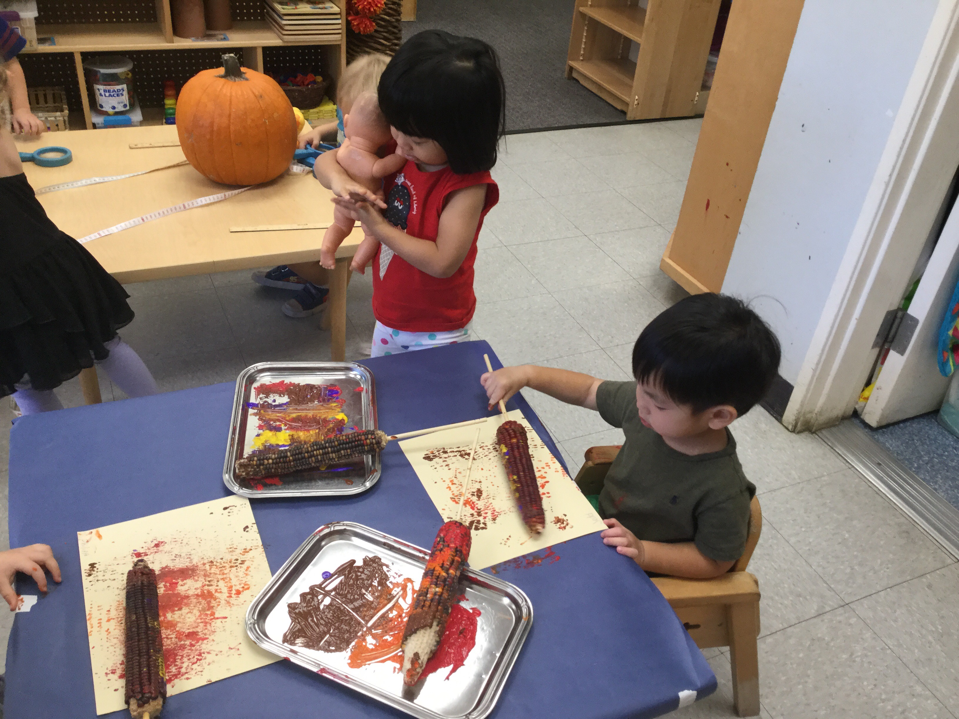 We painted with Indian corn with fall colors and enjoyed our mini pumpkin patch! 😊