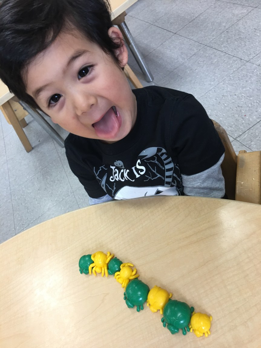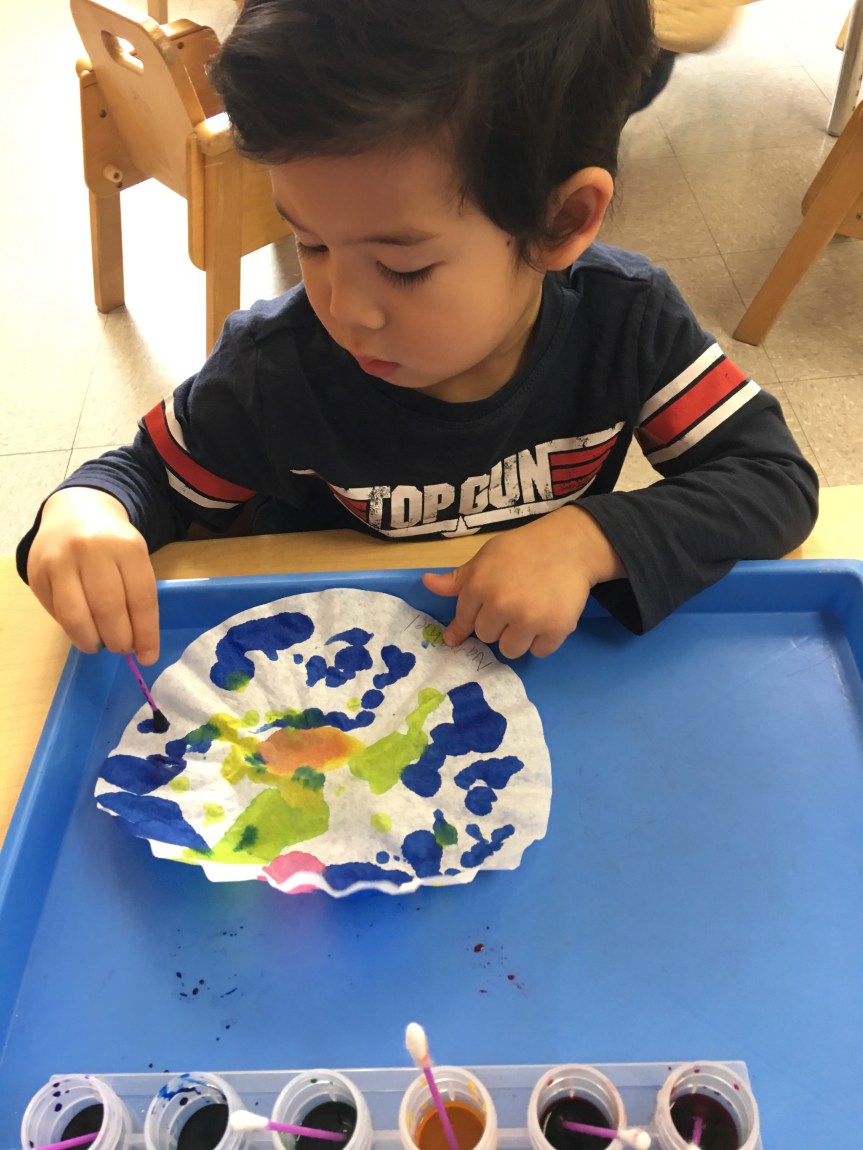 We read “Little Blue and Little Yellow.” What happens when you mix blue and yellow? We see GREEN