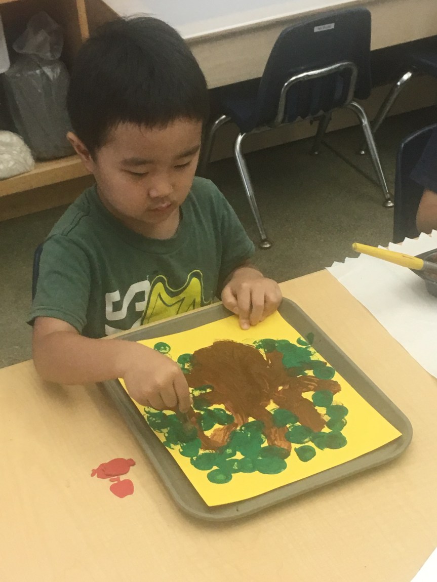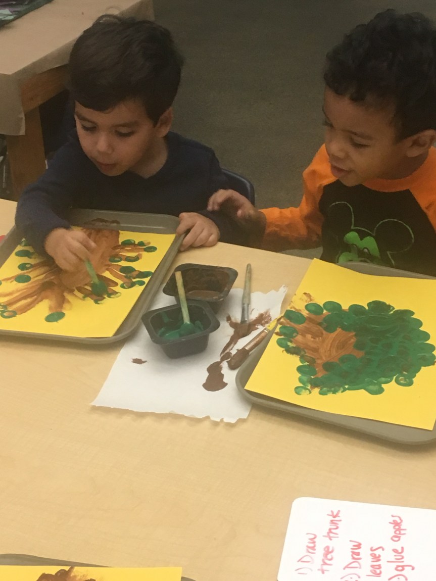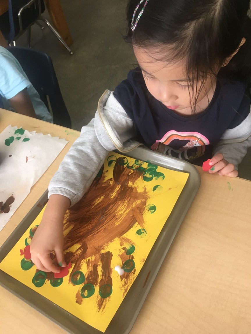 We talked about how fruit is grown on a tree and when to harvest the fruit. We also talked about the fruit of the spirit and how those characteristics help us to be a good friend. Each student painted their very own apple tree. 😉
