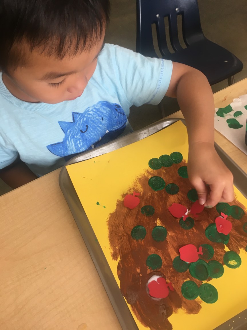 Happy fall everyone! While the leaves are still green here in California, fall colors are popping up everywhere in the preschool! Our classrooms and yard are being filled with pumpkins and gourds of all shapes, textures and sizes. The children are enjoying these fall explorations though sensory bins, cooking activities, art, dramatic play centers, and more! We will culminate our fall fun with Apple & Pumpkin Day parties at the end of October and an older pod field trip to the farm in November. While the older pod is away, the younger pod will have their own ‘farm fun’ on site!