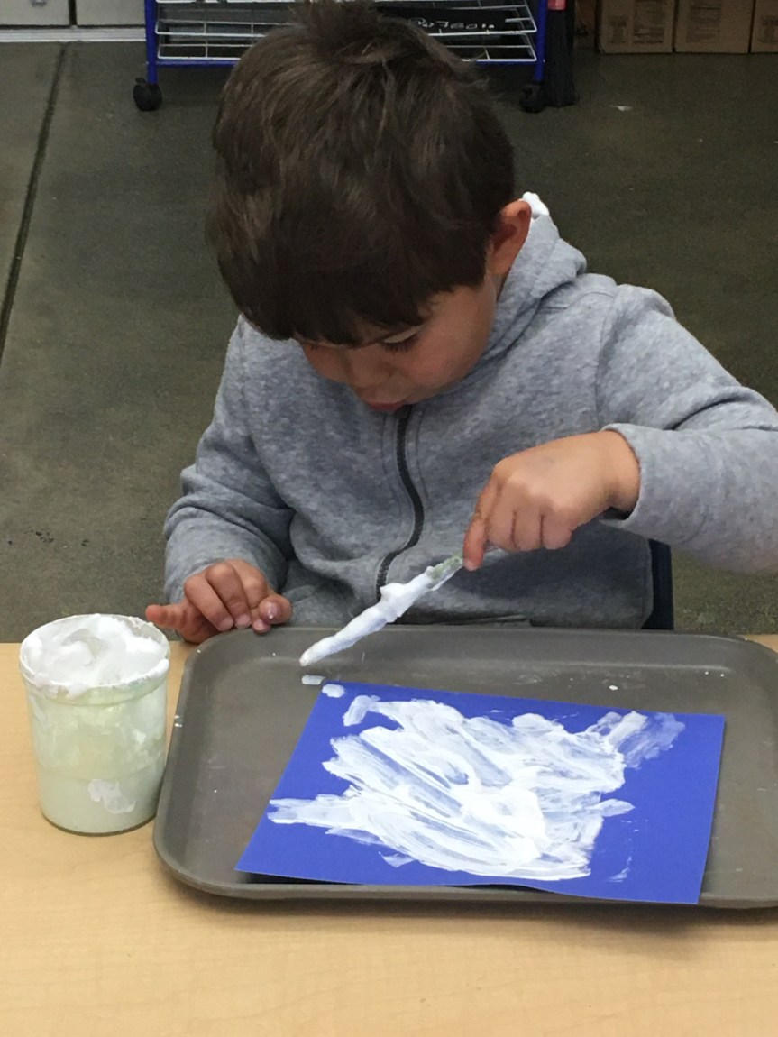 They then painted their own clouds in the big blue sky! 😉 -Mrs. Monica