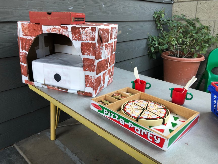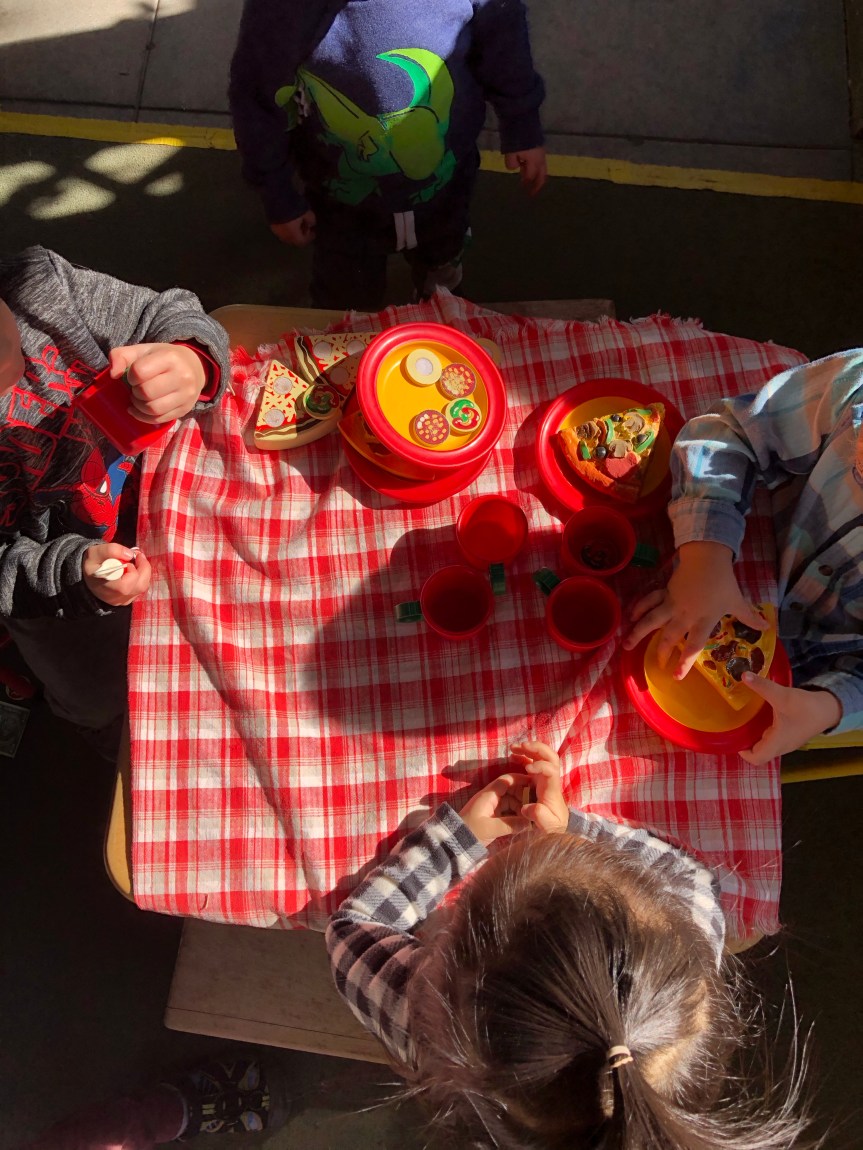 Happy February! Nothing says love like–PIZZA! Younger Pod is enjoying their new dramatic play area, That’s Amore Pizzeria.