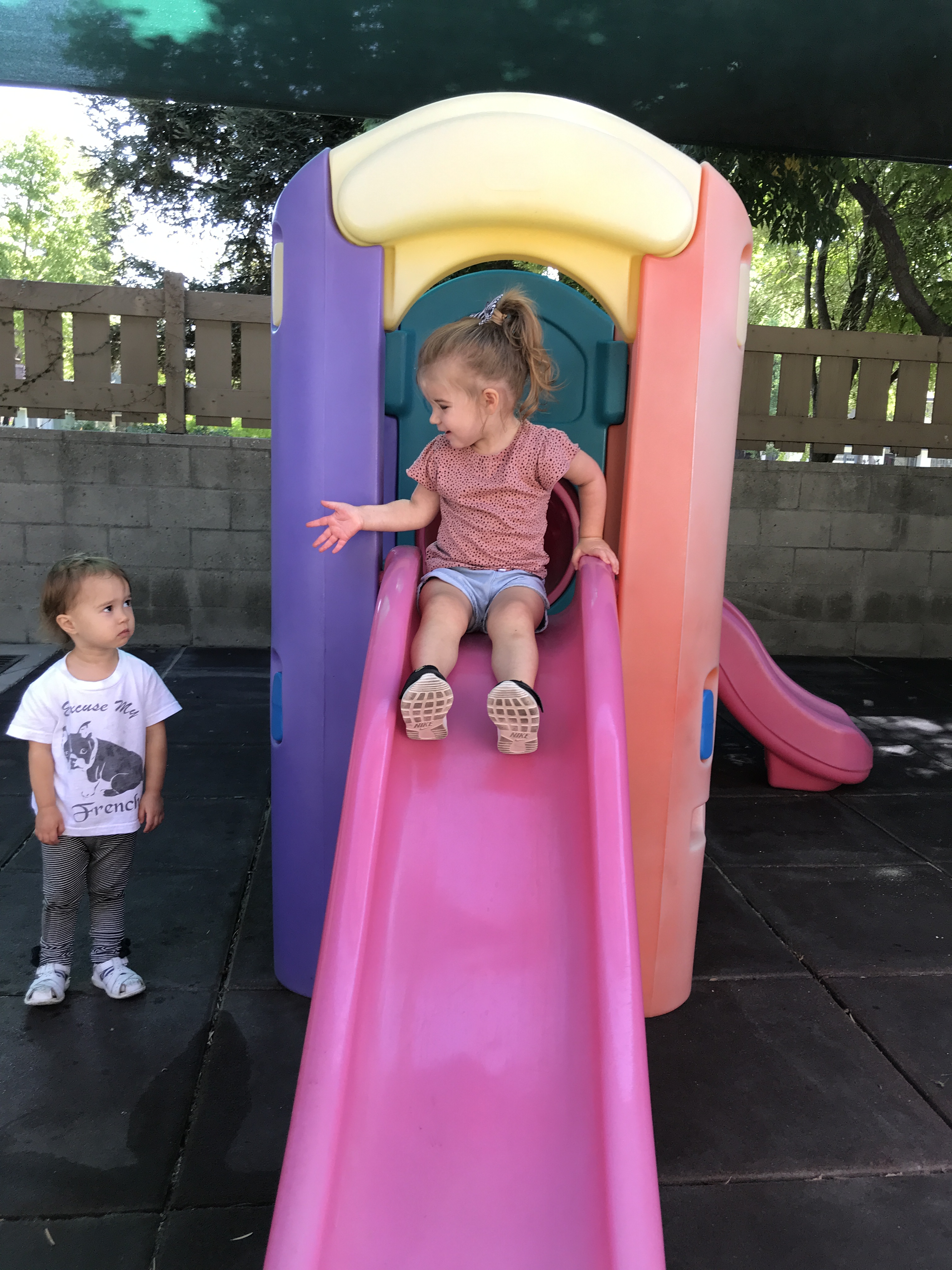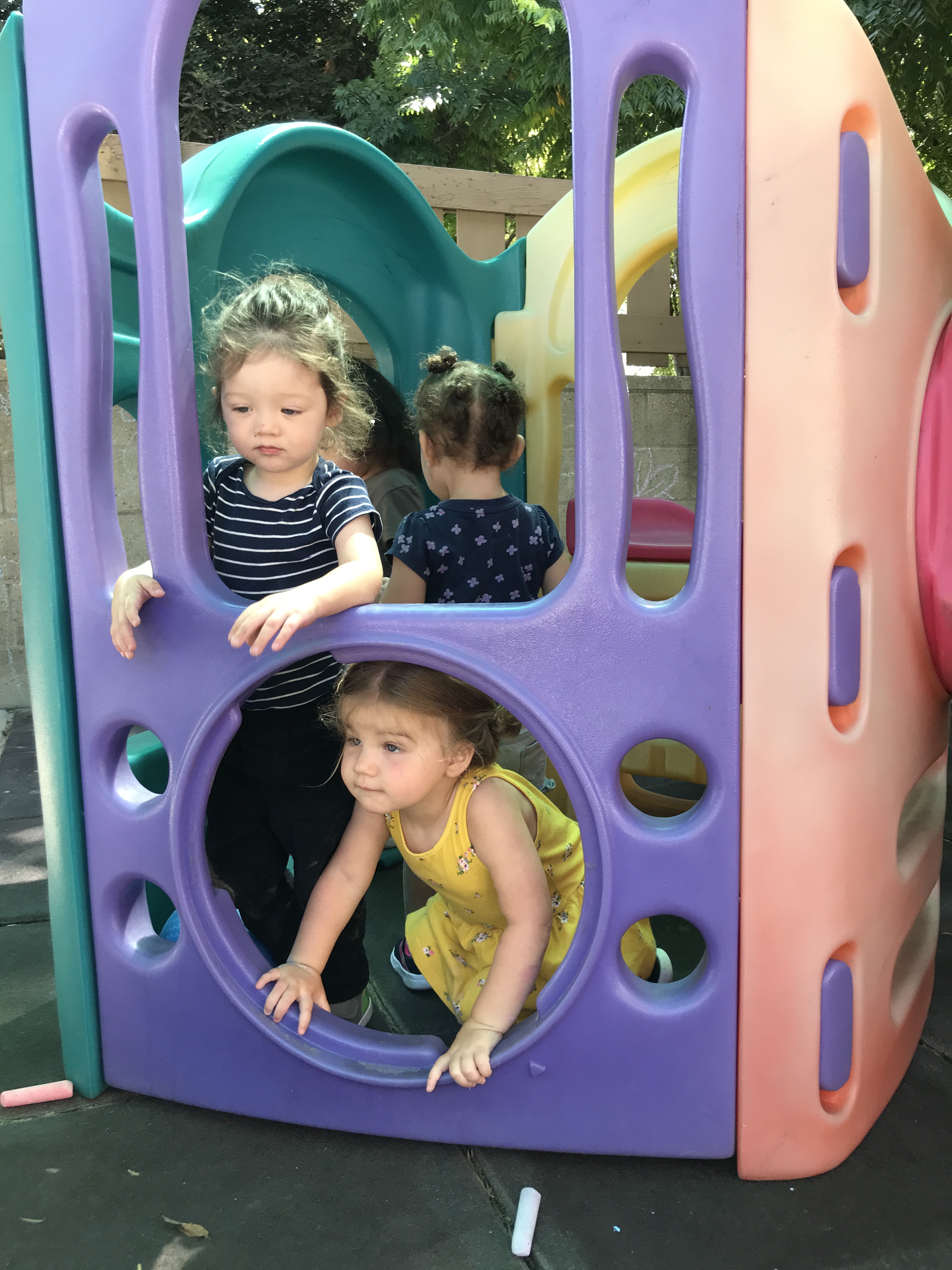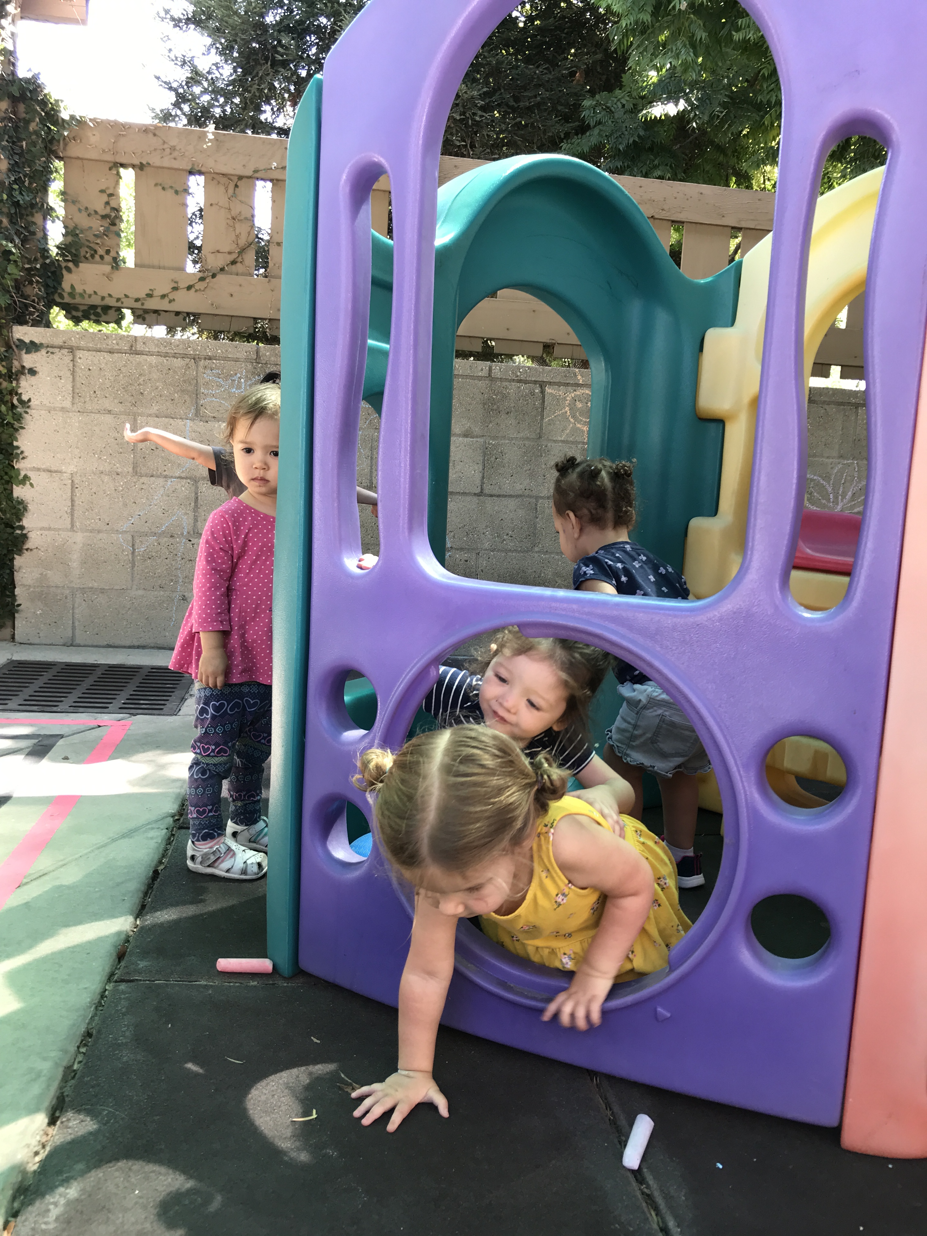 On Wednesdays, we walk over to the elementary school where we get to enjoy “The Big Field.” We get our bodies moving with gross motor activities that build coordination and cooperative skills.