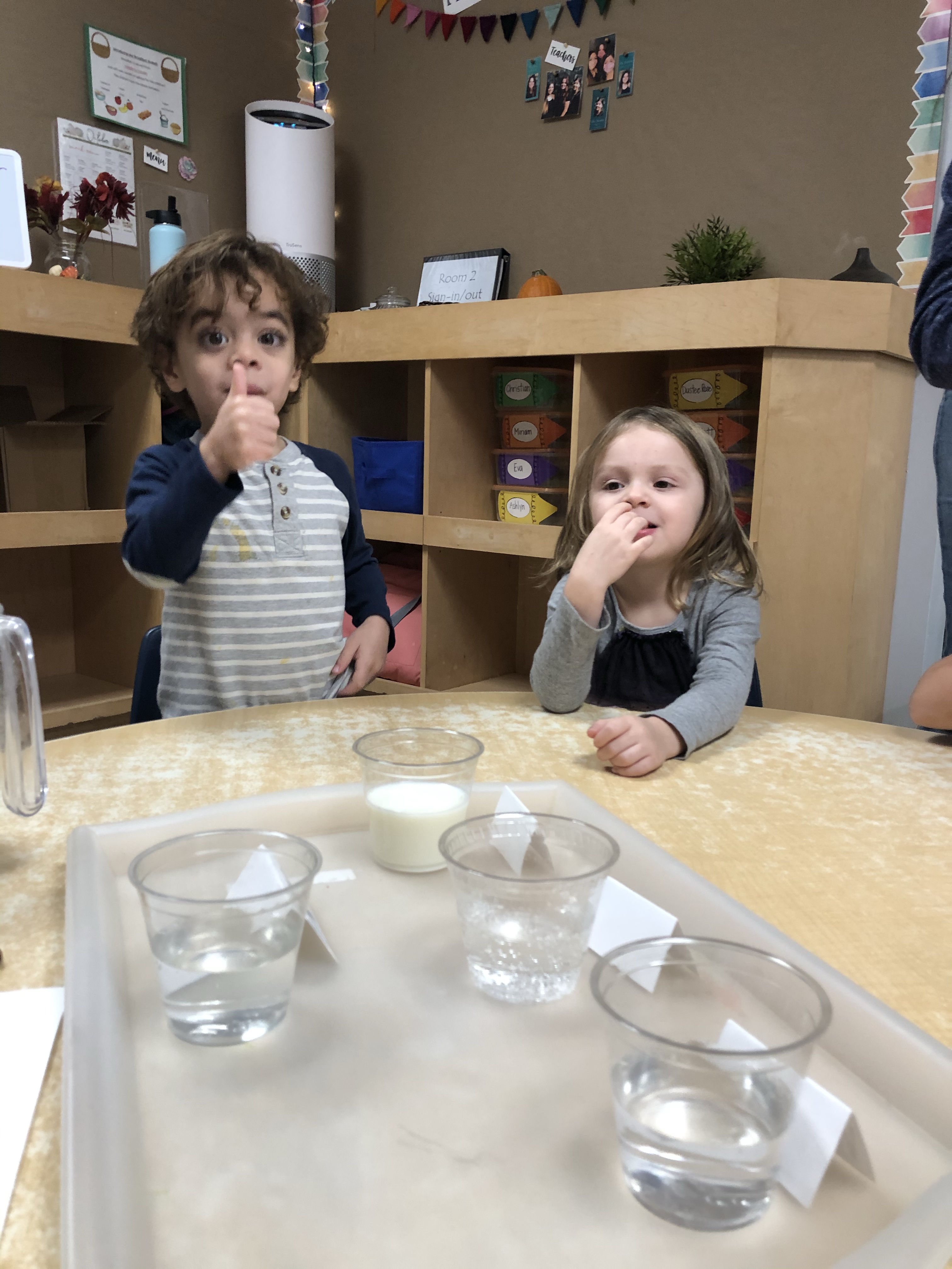 Happy Apple Pumpkin Day 2! Our littles in Room 2 conducted an experiment to find out which liquid would dissolve a pumpkin candy-corn the fastest. Check out our little scientists identifying the liquids, smelling the vinegar, tasting the “pumpkin” sample and making predictions.