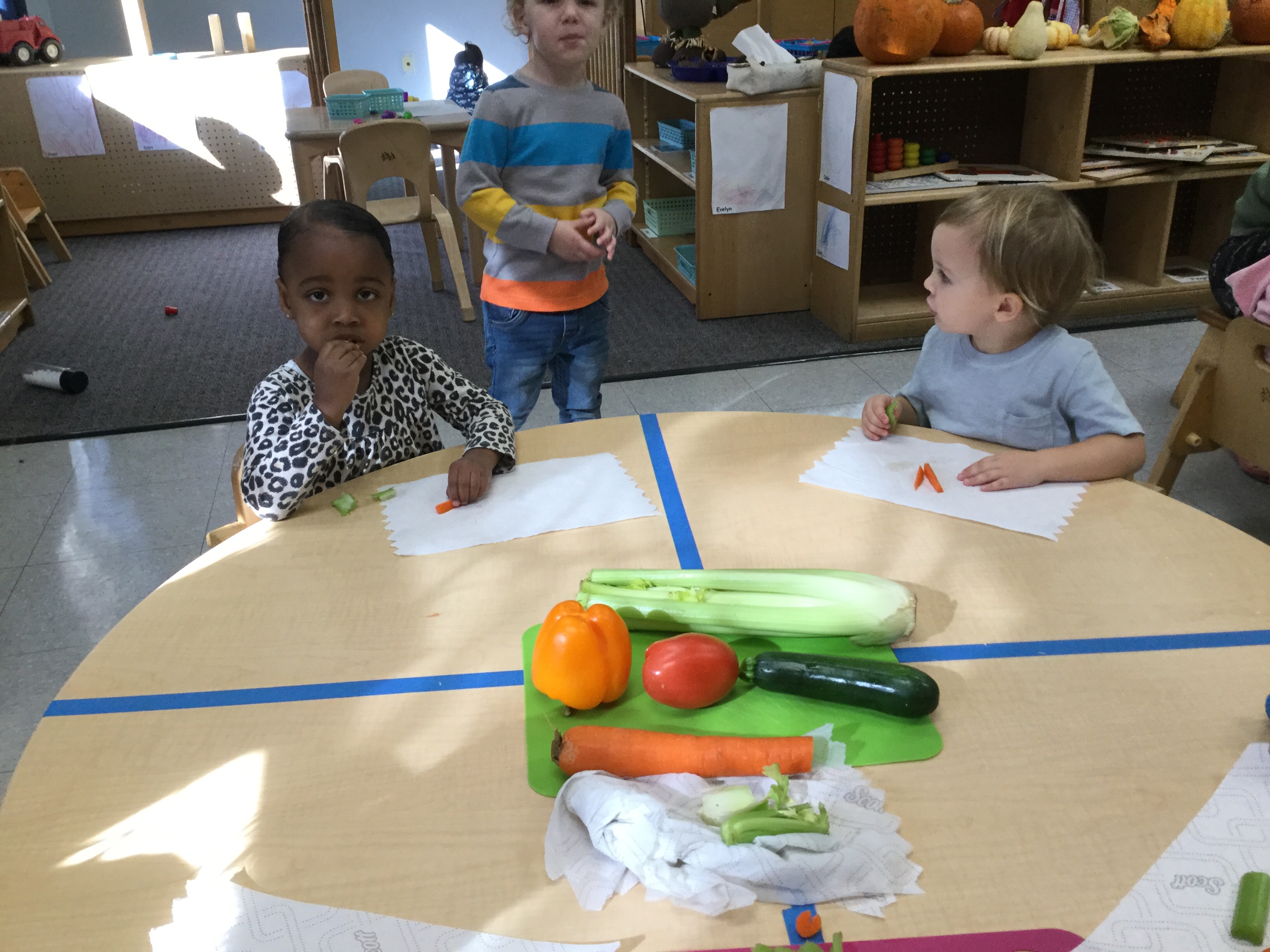 We had a little preview of our vegetables we will be using for stone soup next week. The kids got to identify, touch, smell and taste many different kinds of vegetable.