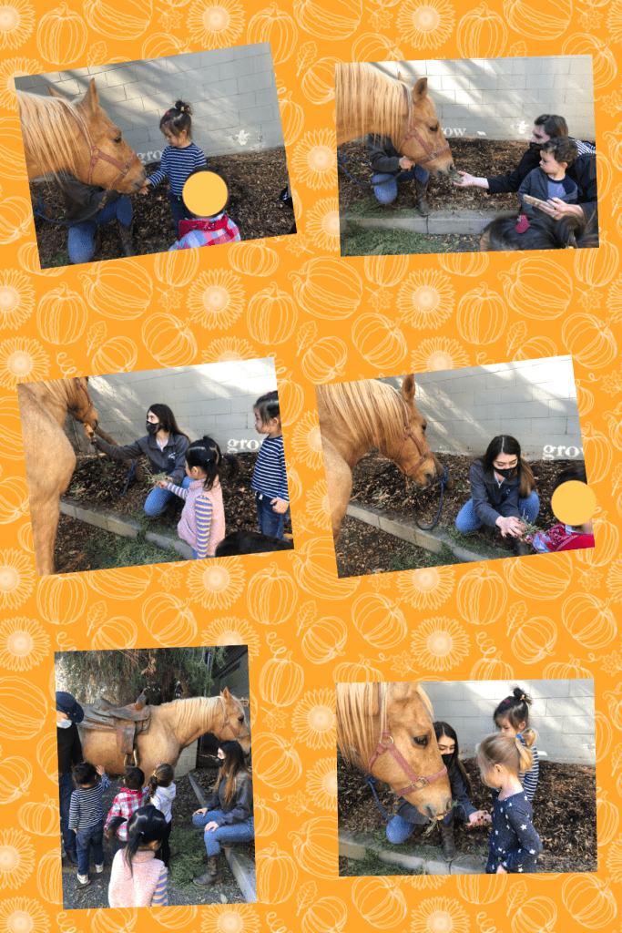 Our kiddos got to pet ducks, sheep, goats and a HUGE horse! Our friends did an A-M-A-Z-I-N-G job at using gentle hands, calm voices and walking feet. Thank you to all the parents for participating with bringing our kiddos all dressed up as farmers!