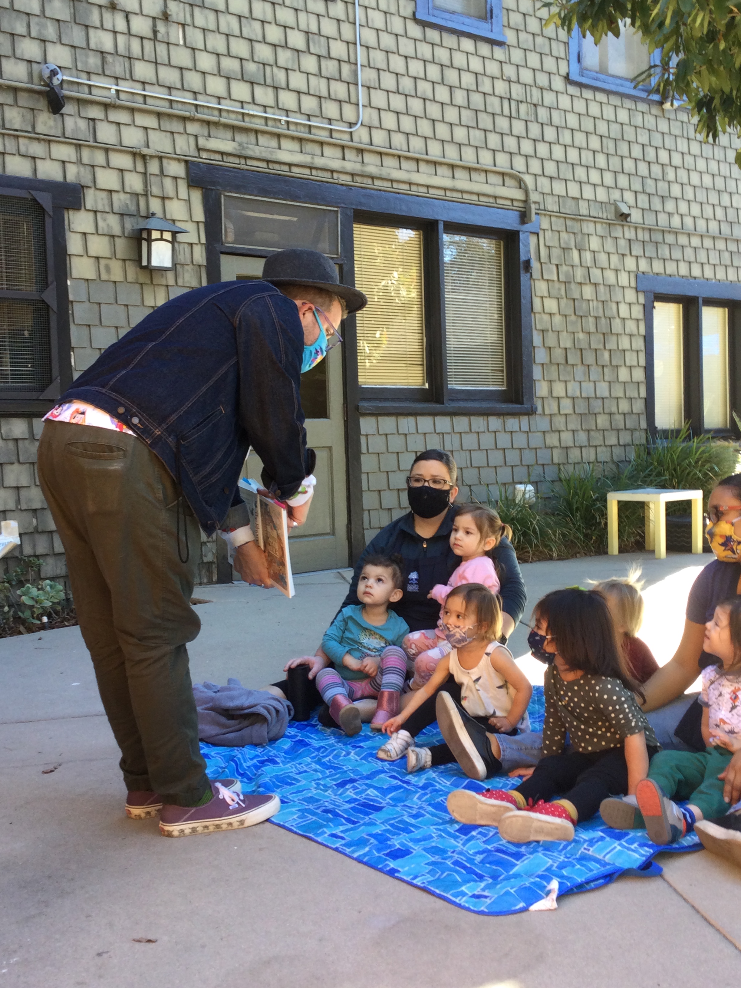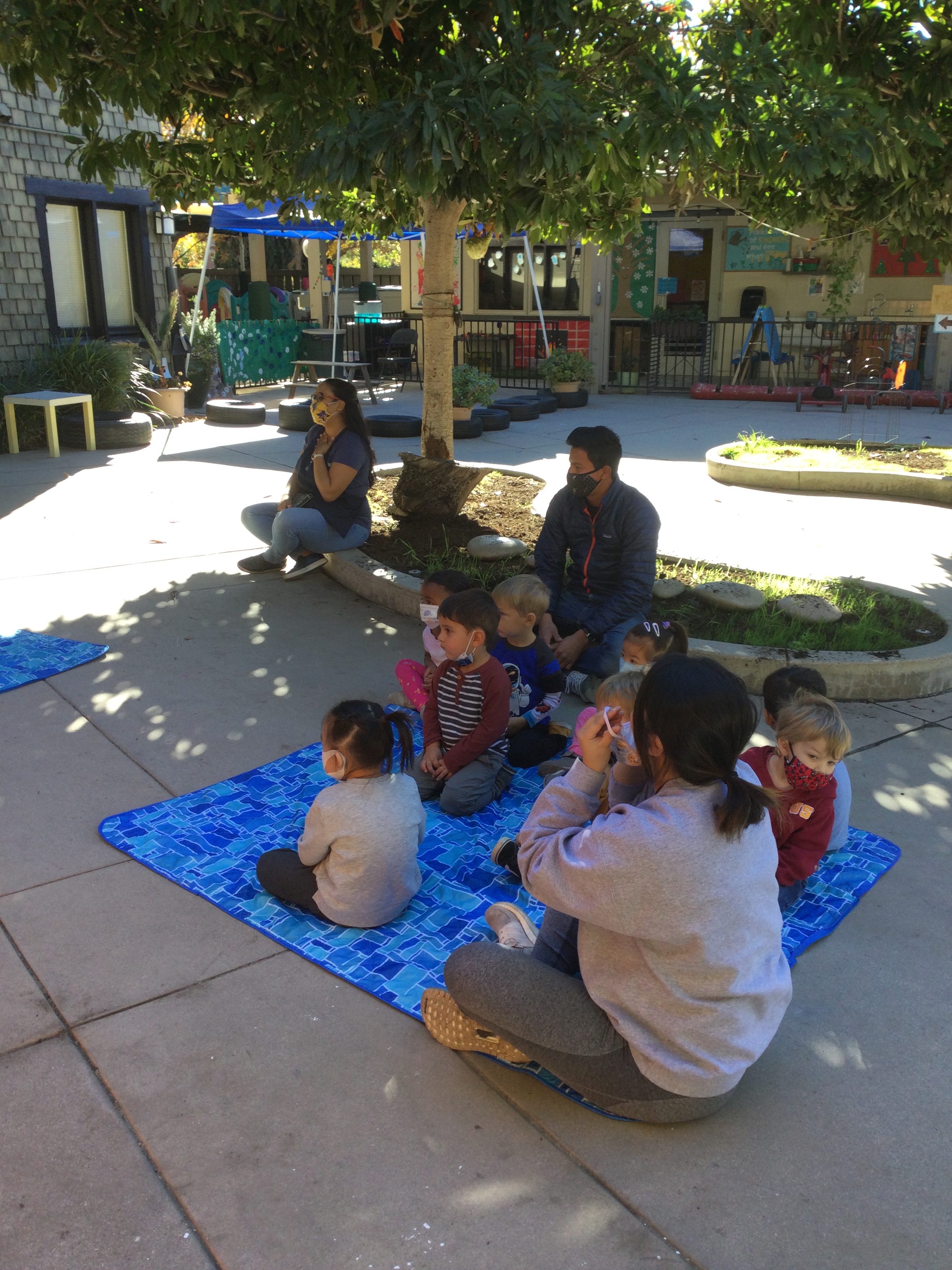 Recently we have visited the Big Field on the main campus. We have a picnic snack and we read a story and then we get to run and play in the grass.