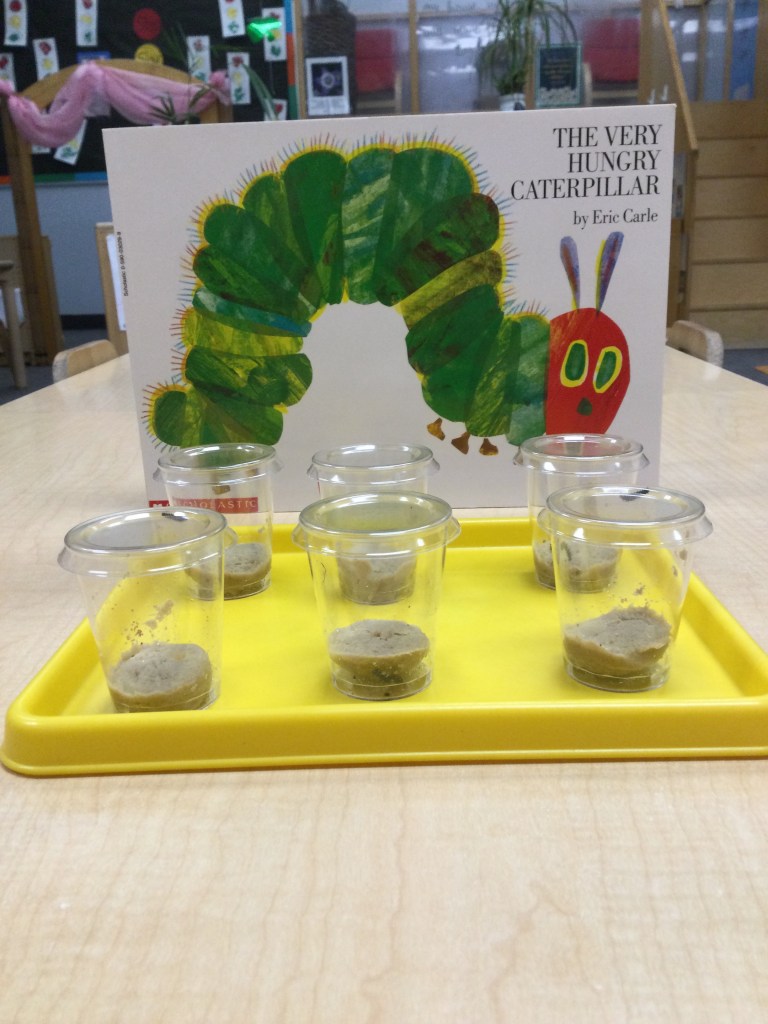Our baby caterpillars have arrived in time for Spring. We have been observing the changes for this week. The kids saw very tiny caterpillars, as the days go by the kids saw the caterpillars getting bigger. We read the book “The Very Hungry Caterpillar.”