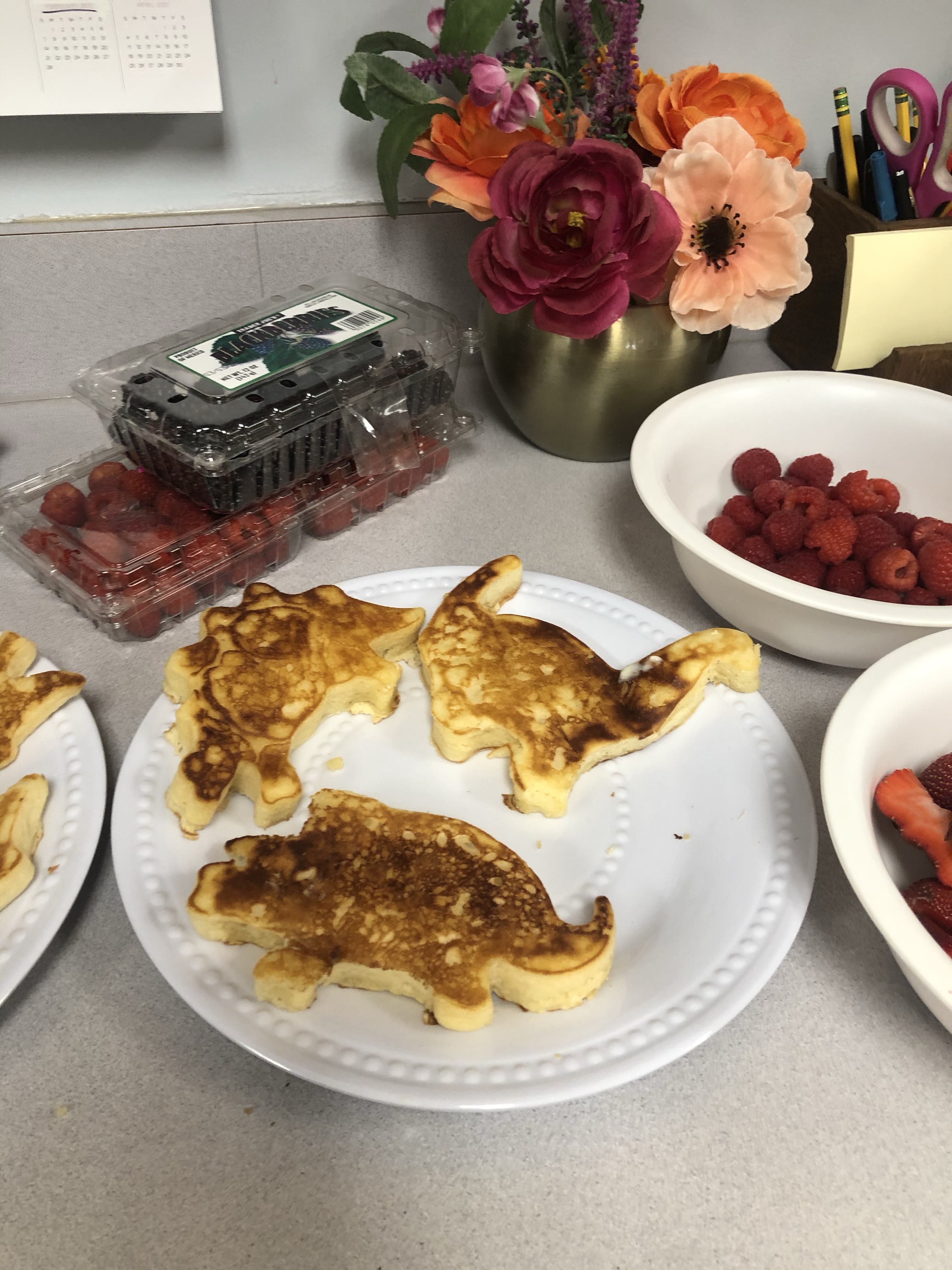 As a way to celebrate all the fun things we’ve learned we had a Dino Day! What is Dino Day… you ask? We dressed dinosaur festive, made dinosaur shaped pancakes, enjoyed a special presentation of PBS’ Dinosaur Train and made volcanos ERUPT! Our celebration was DINO-mite!