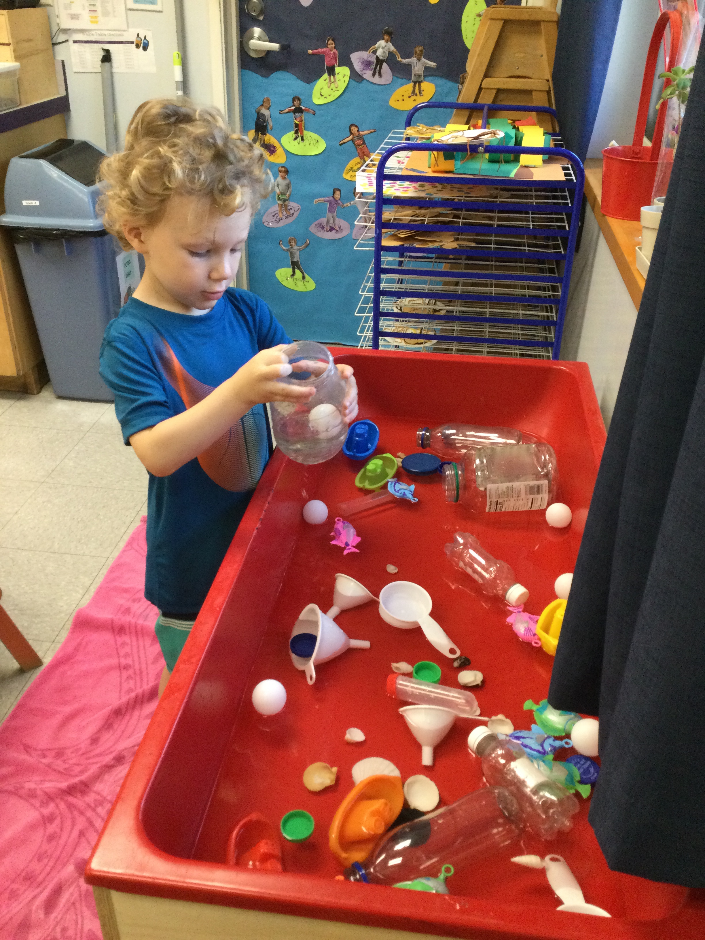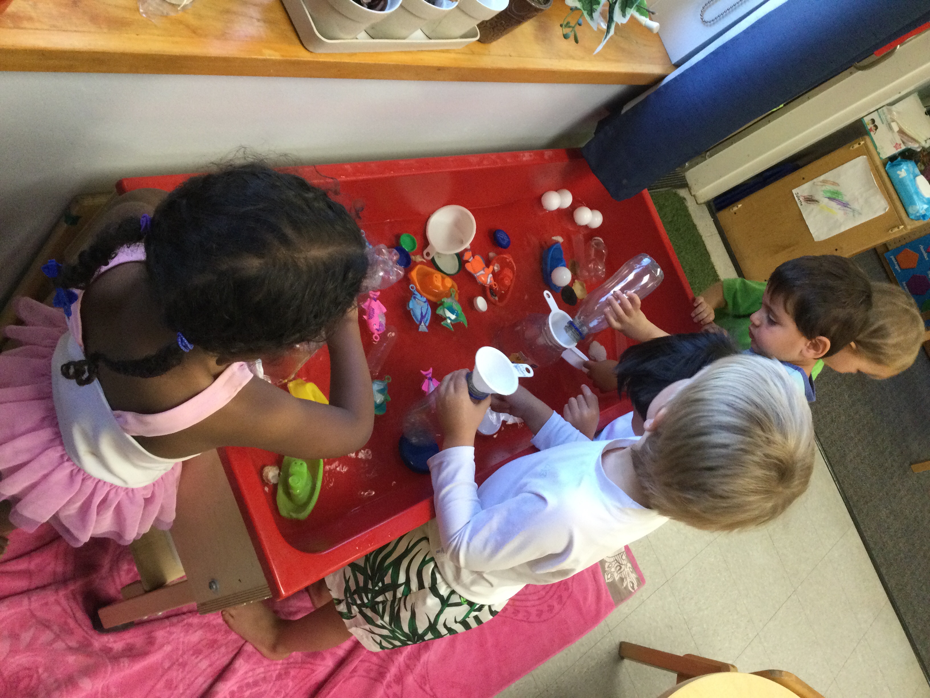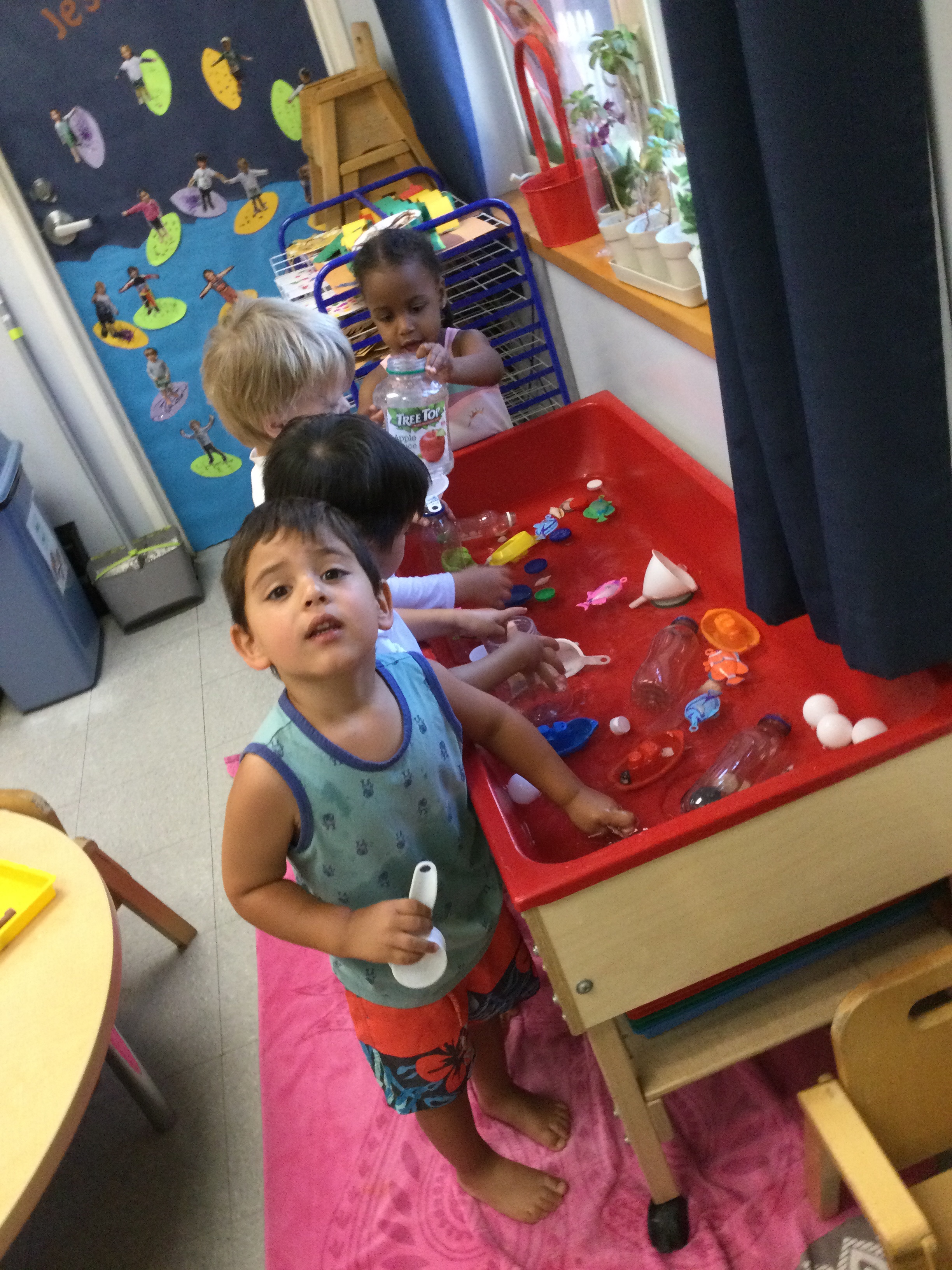 In class we had a fantastic time discovering items that sink and float in our big water sensory table.