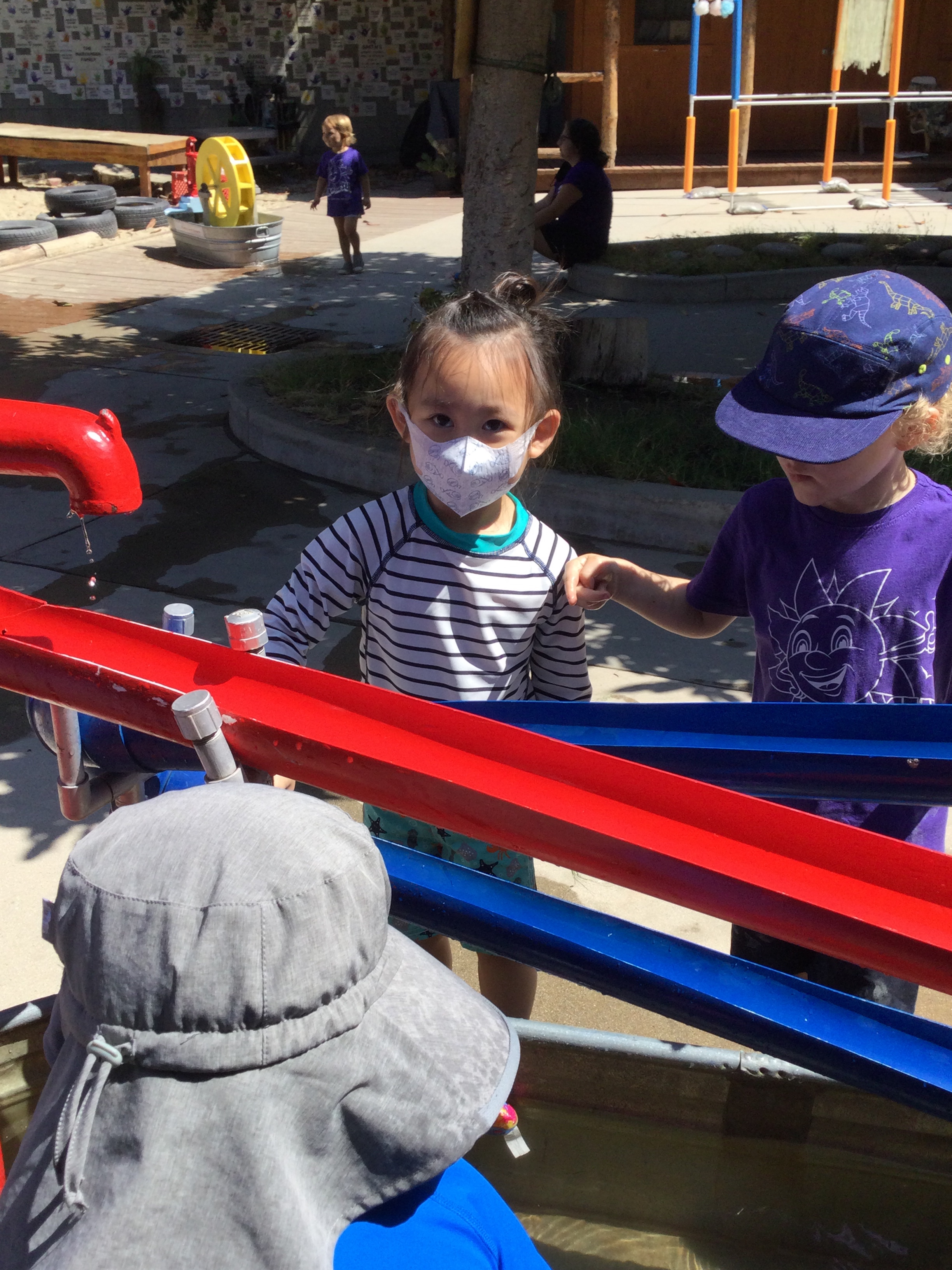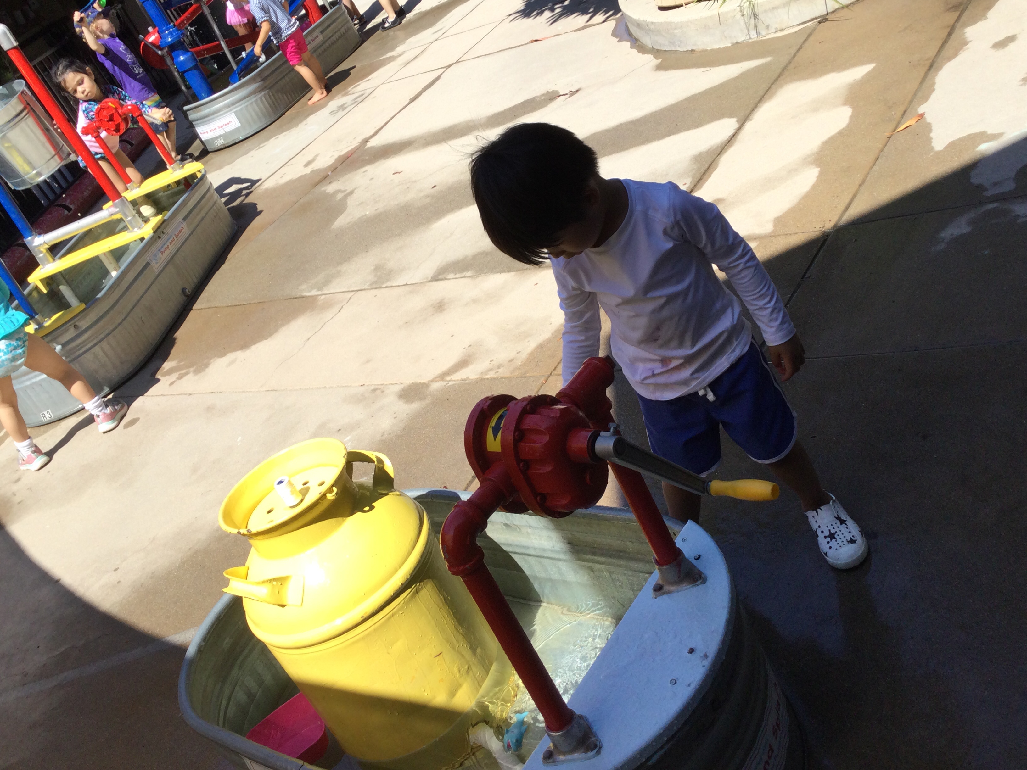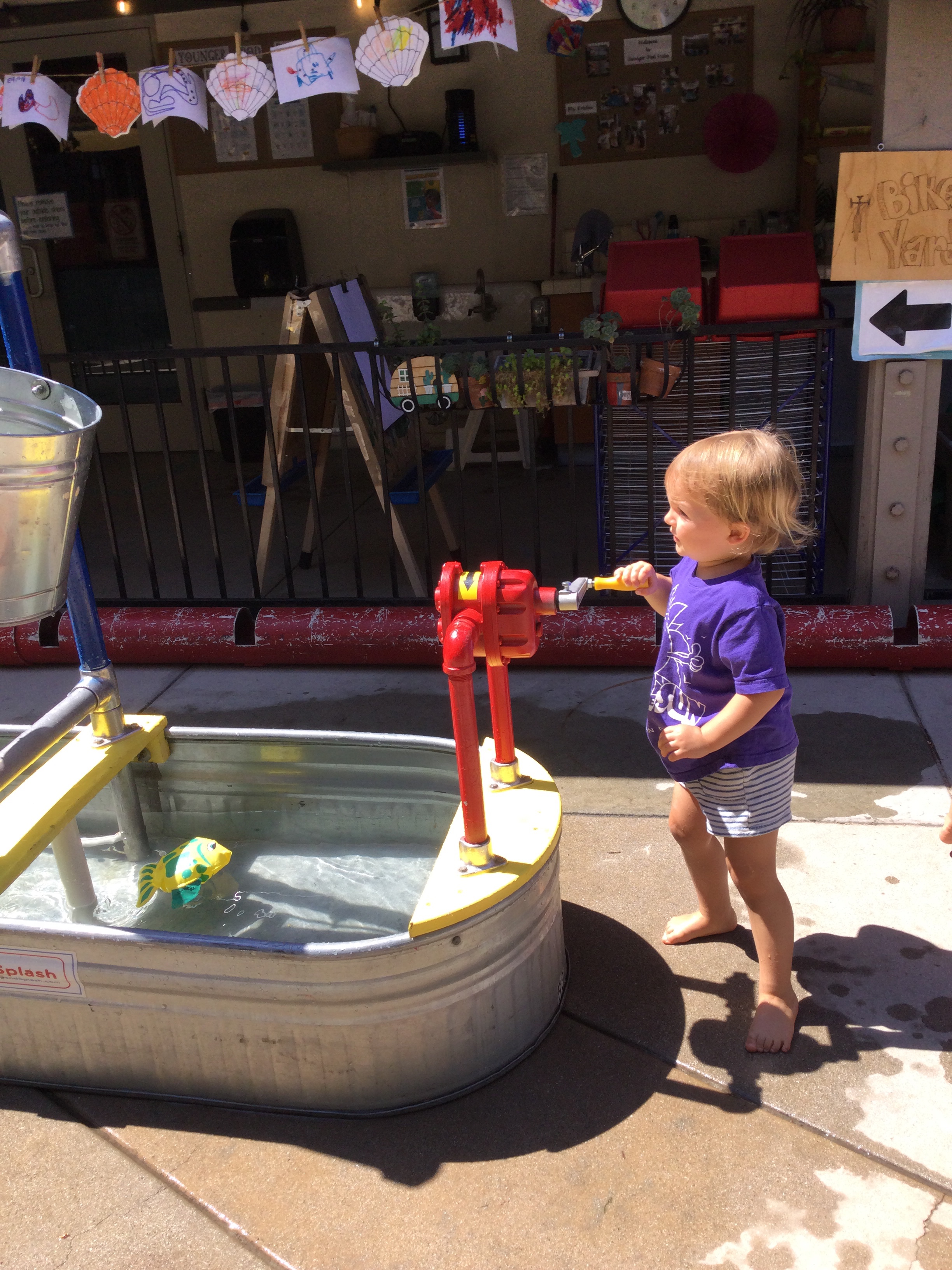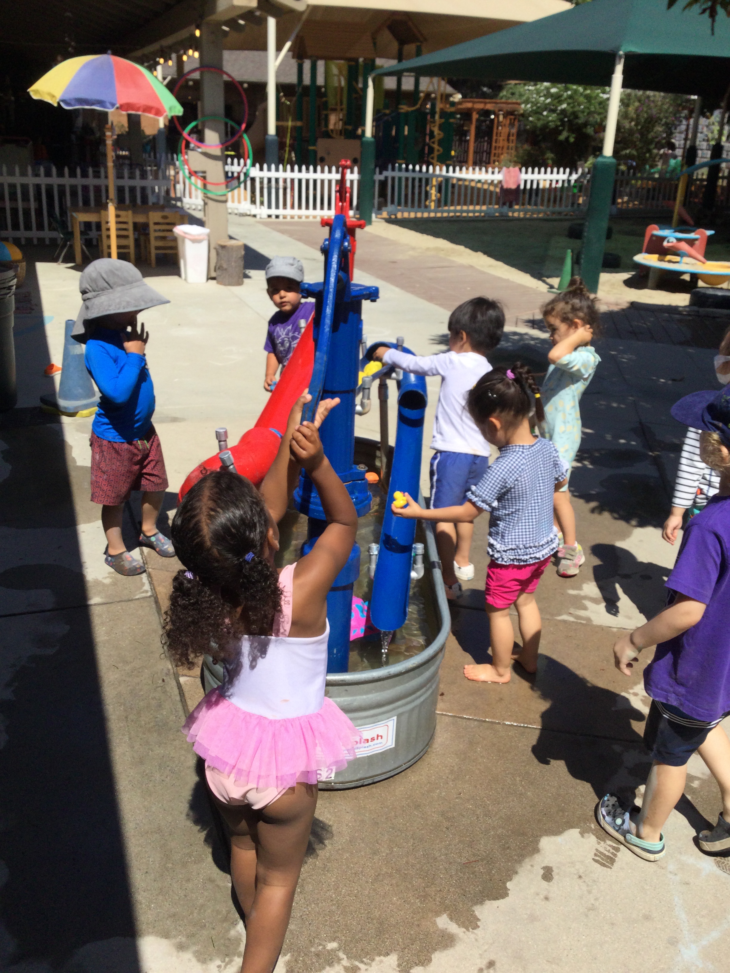 Our Pump-and-Splash was an exciting activity to enjoy outside. We had large, medium and small barrels of water to discover their mechanical function. Yes! These barrels can be cranked to the right for a great big splash surprise and other barrels can be pumped up an down to watch the floating ducks move through the pipes. So much fun!😄