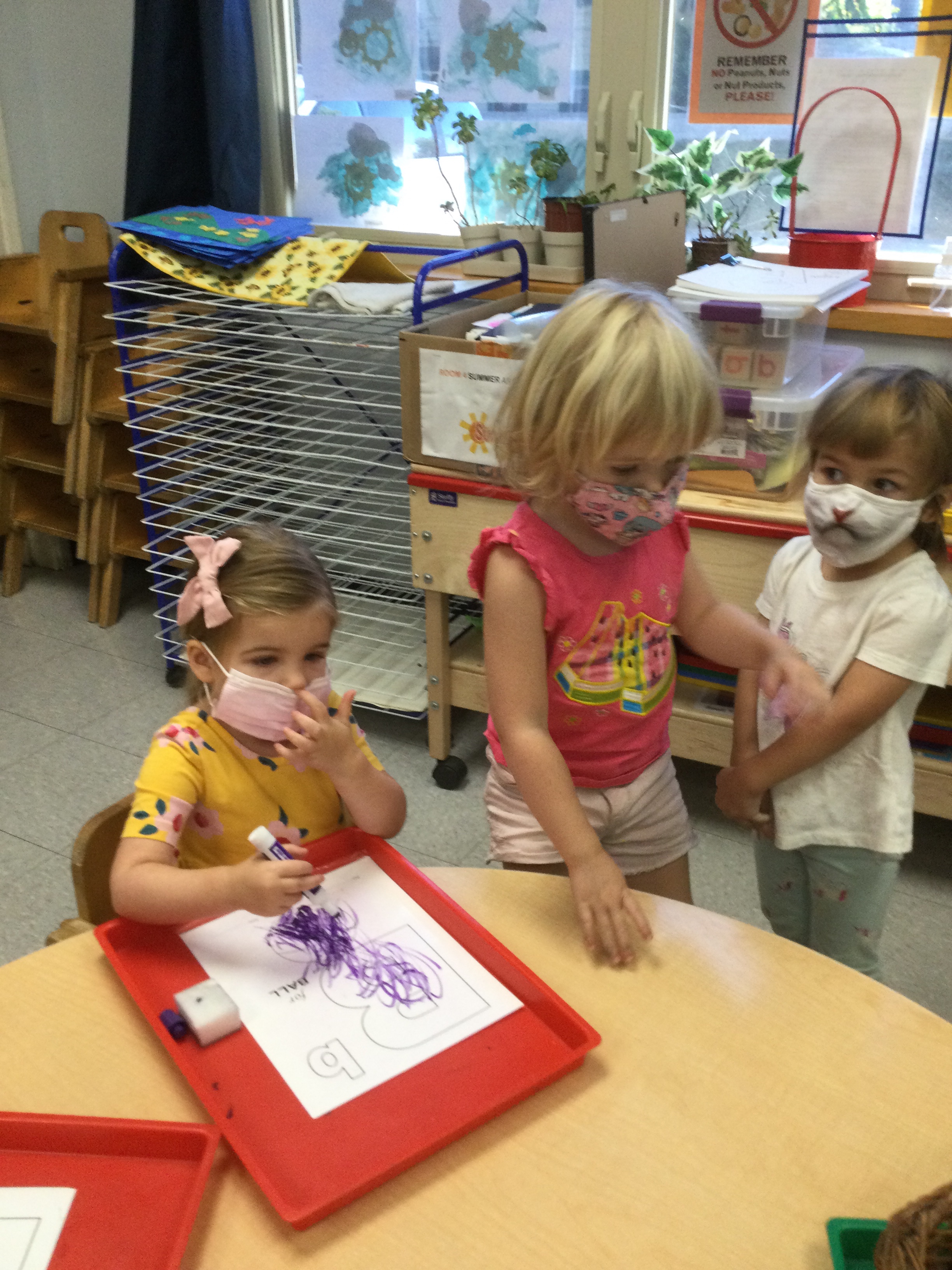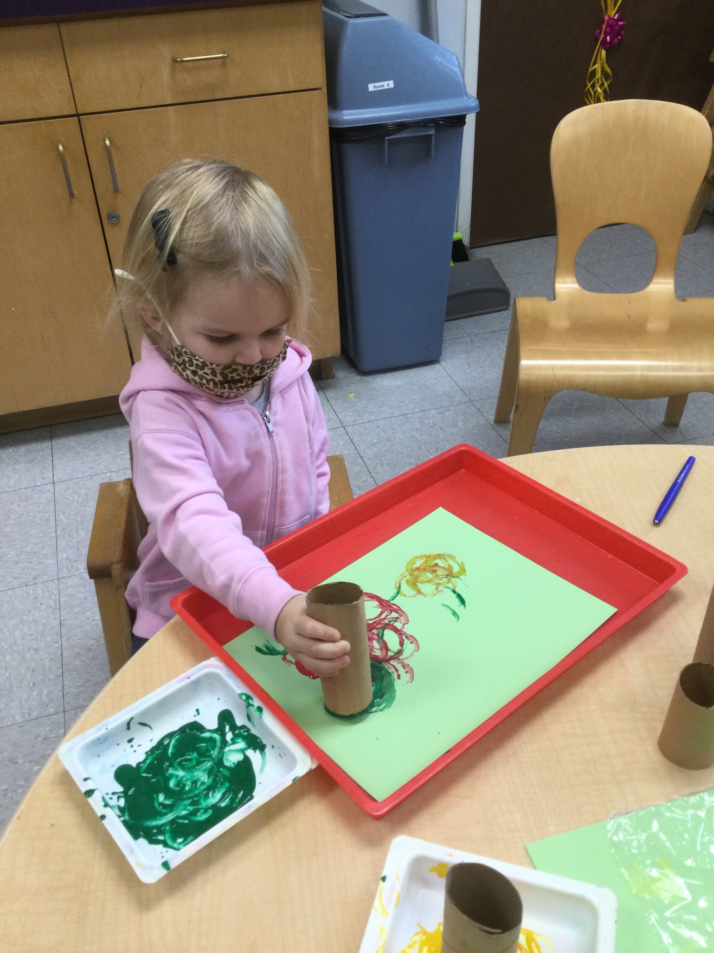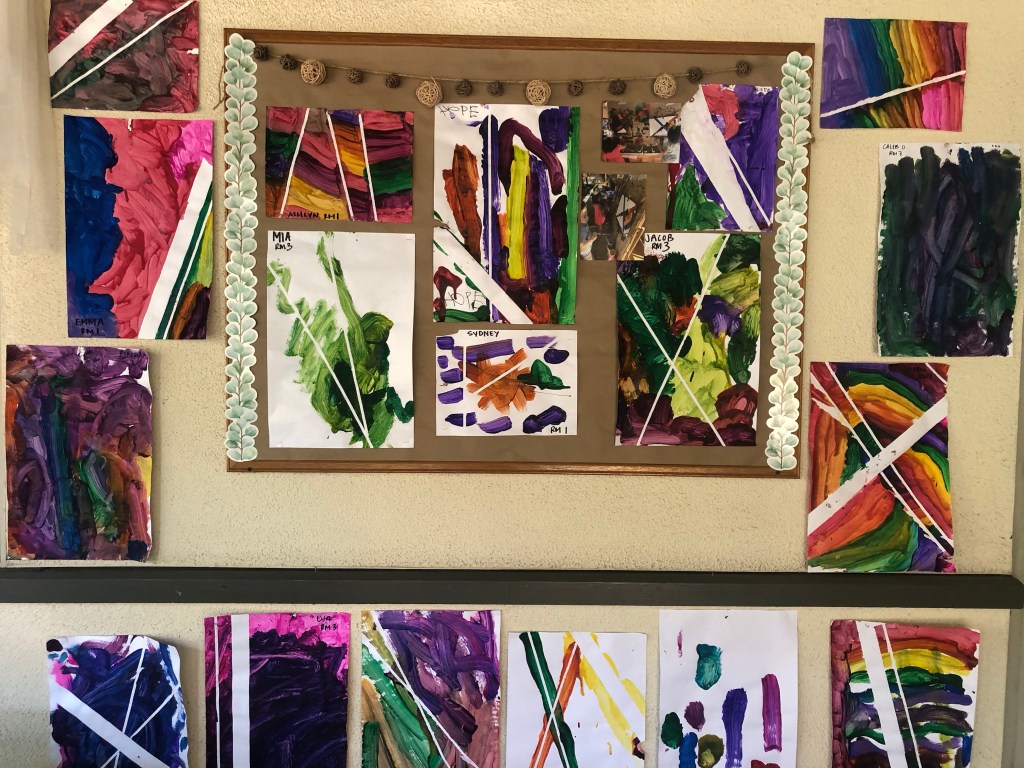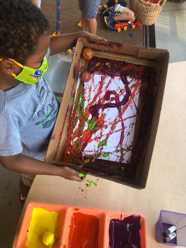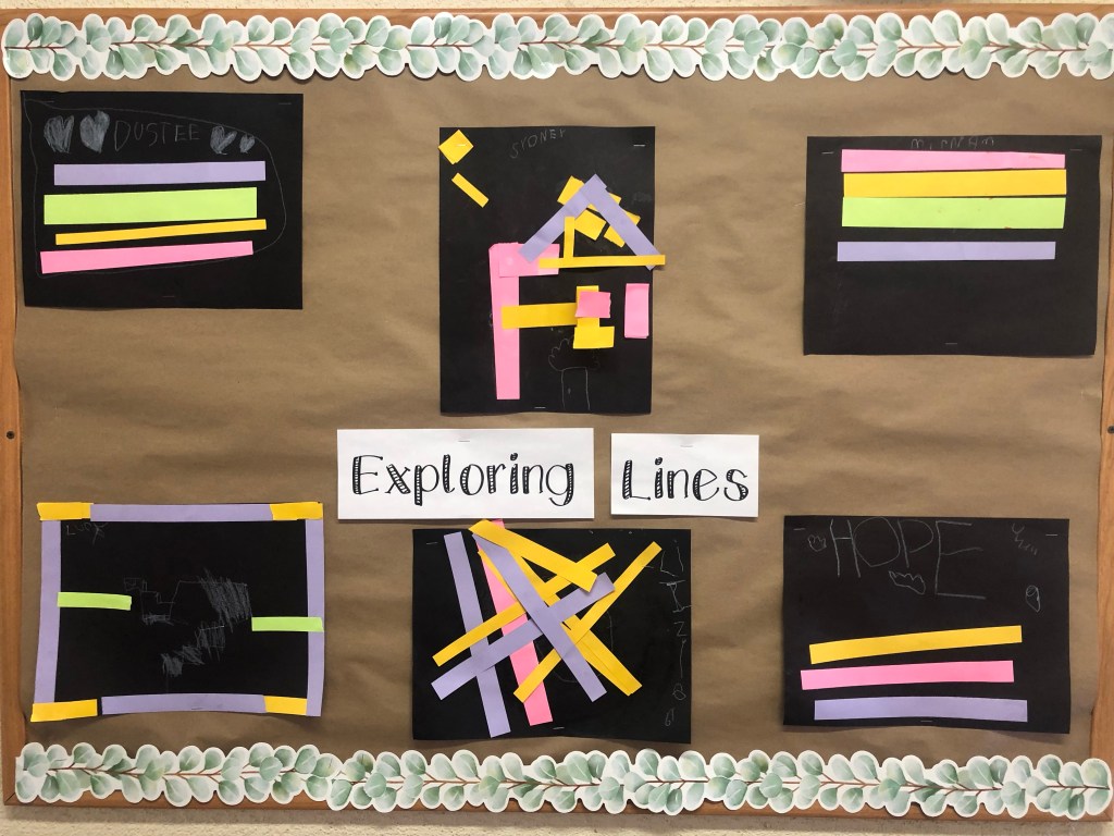 In the month of September we emphasize the concept of lines. On older pod patio, we’ve been exploring lines through line collage art, negative space painting, golf ball painting and more!