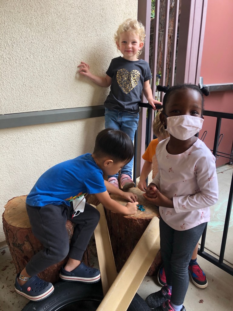 On the Older Pod Patio, our friends have been enjoying natural materials, recycled materials, and pets. Check out some of the amazing ways they’ve played with these loose parts.
