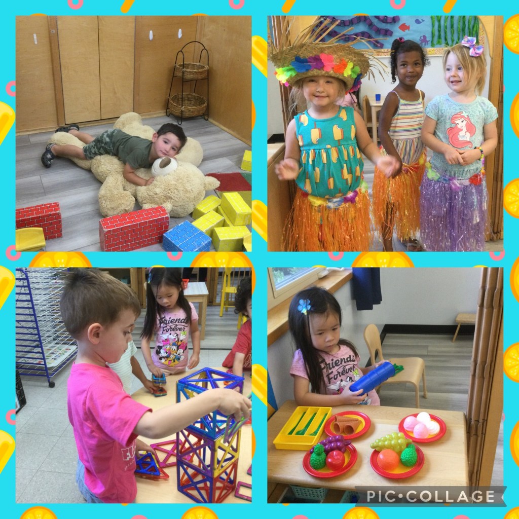 Our first week of Fun in the Sun was amazing, we were blessed by our remarkable weather. We played with lots of water, put on bathing suits, dressed up and dance hula music.