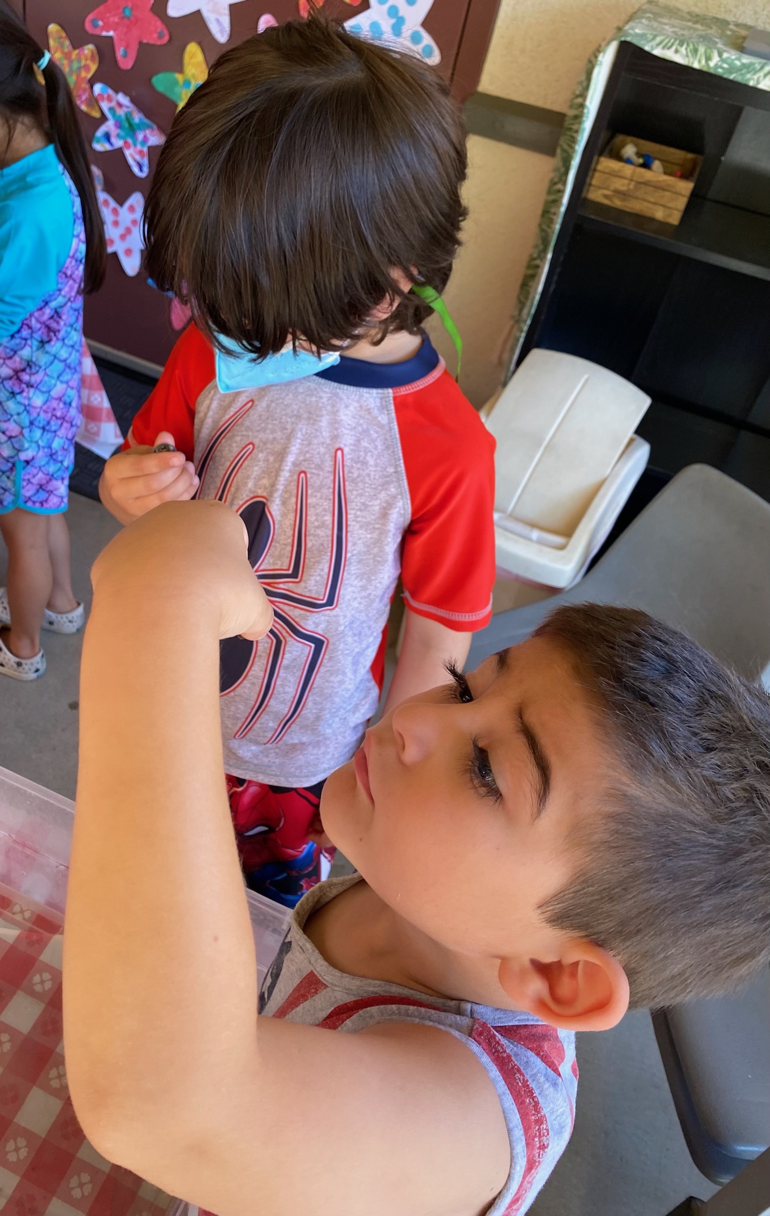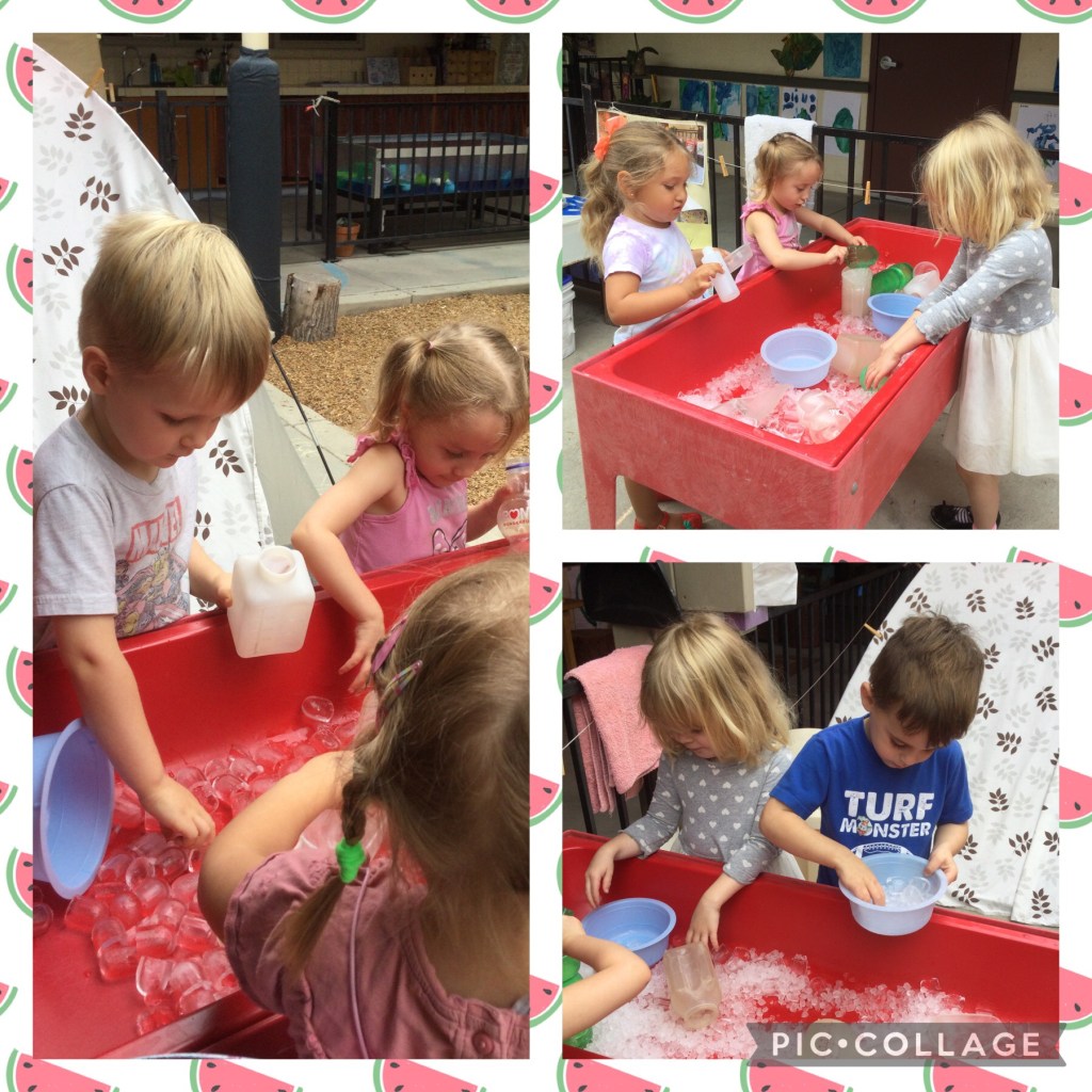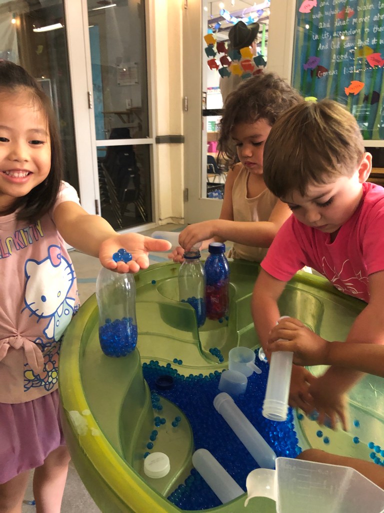 Summer Fun in the Sun is off to a great start on the Older Pod Patio! At the water table, weβre working on fine motorβpouring, twisting on and off bottle caps and other practical skills. Weβre also mixing primary colors to create secondary colors. This fun, hands on experience is the best way to build knowledge of color concepts.