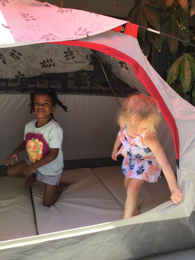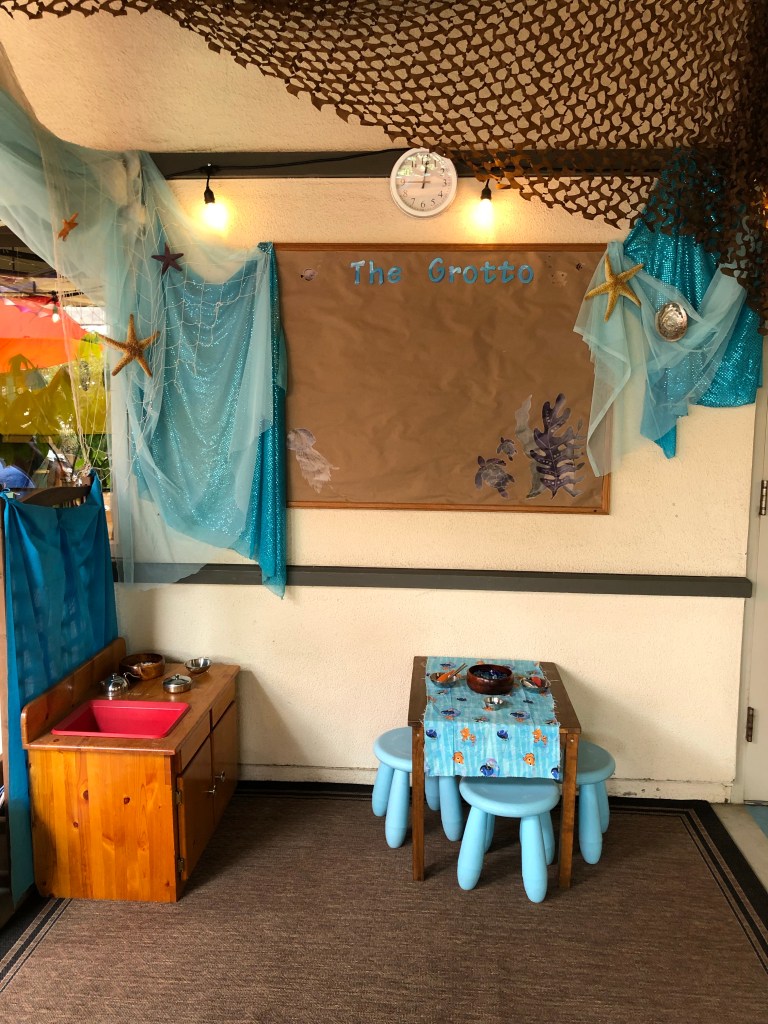 We are ready for some fun in the sun! The older pod enrichment patio is an extension of rooms 1, 2 and 3β our three year olds, young fours and our pre-kindergarteners. Our littles are given the opportunity to flow in and out of their classrooms during their free choice play time. This gives them plenty of options to explore areas that peak their individual interests. Check out some of the play centers ready for our campers to enjoy!