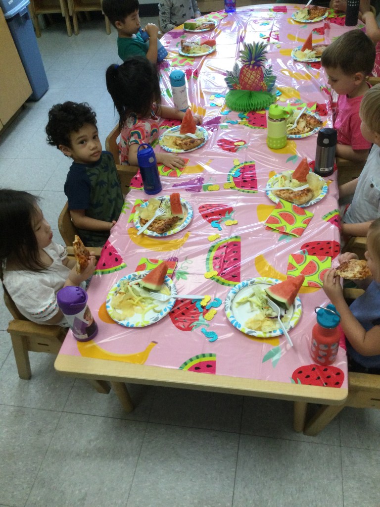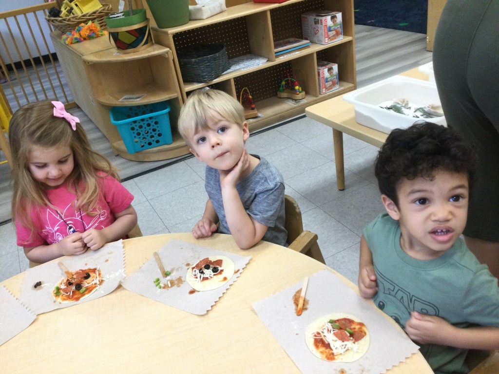 It has been a fun and joyful summer. We will for sure miss every one of you and your kids. For our last week we read Pete the cat and the perfect pizza party. We made pizza and the kids added their own toppings, we made pizza collage and song “I am aPizza.” Pizza week was grooving.