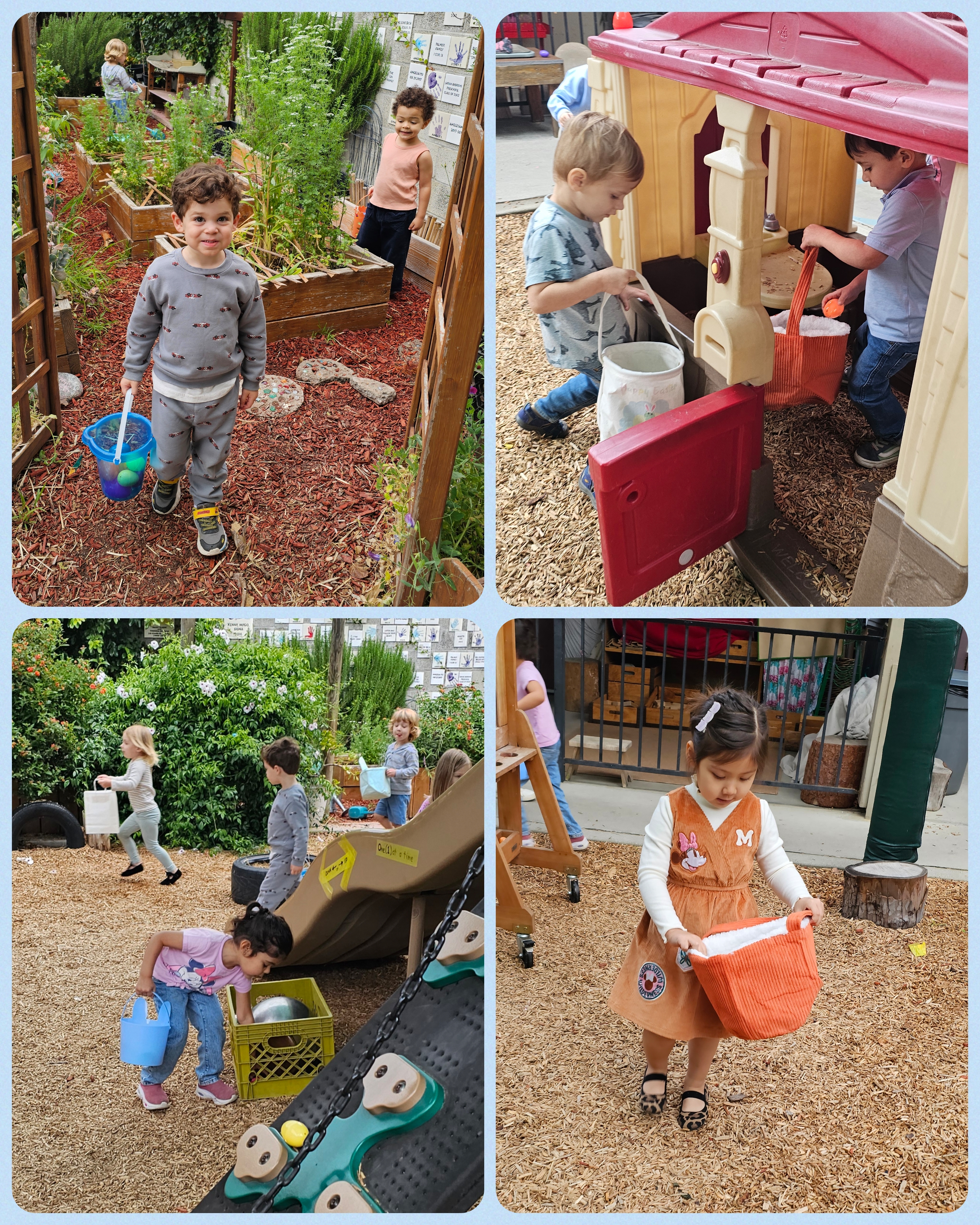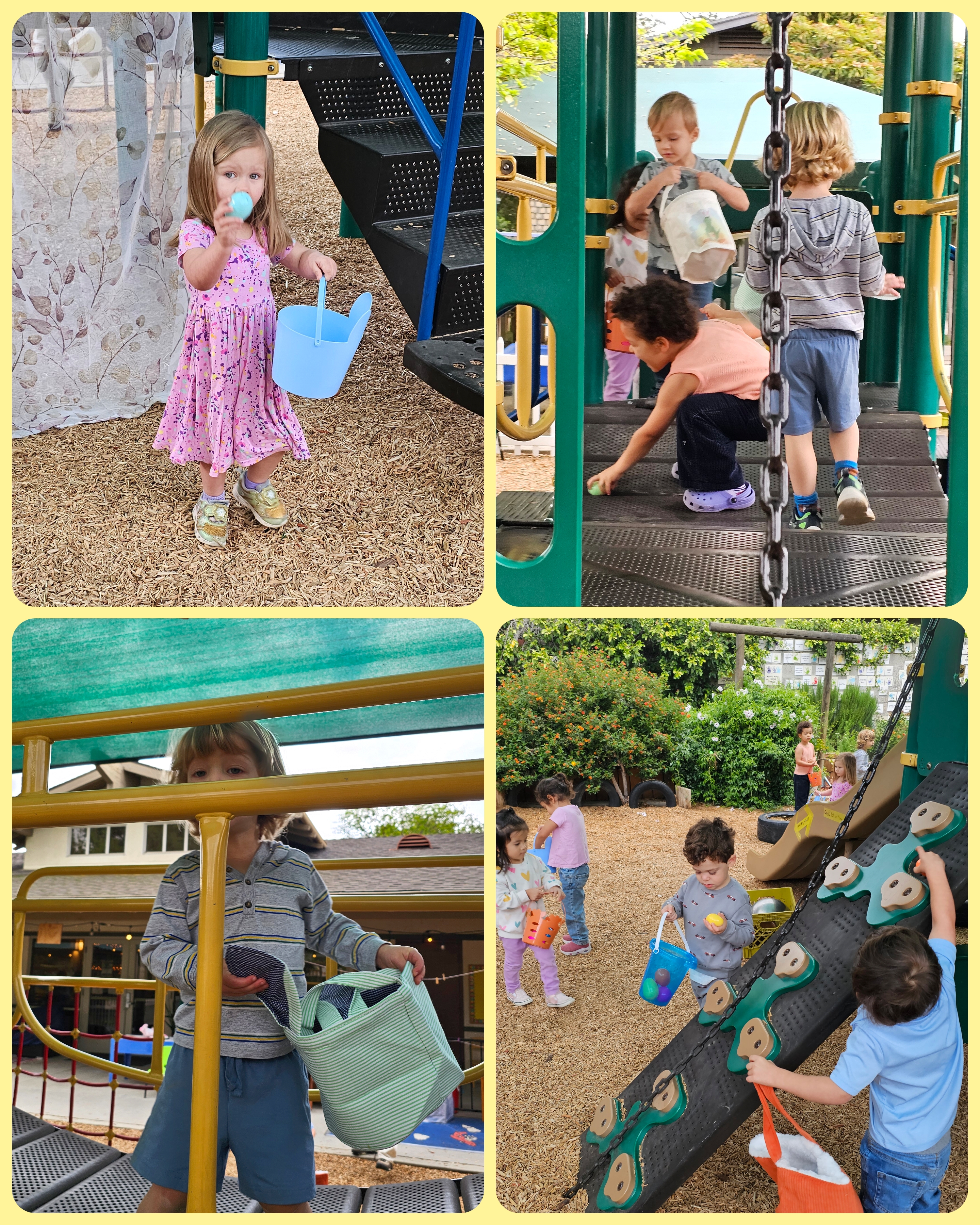 Room 4 had a wonderful time celebrating Easter together with an egg hunt! Our friends raced around the playground, searching under bushes, in the woodchips, and checking every corner for the eggs. It was so fun to see their faces light up and share the excitement with their friends.