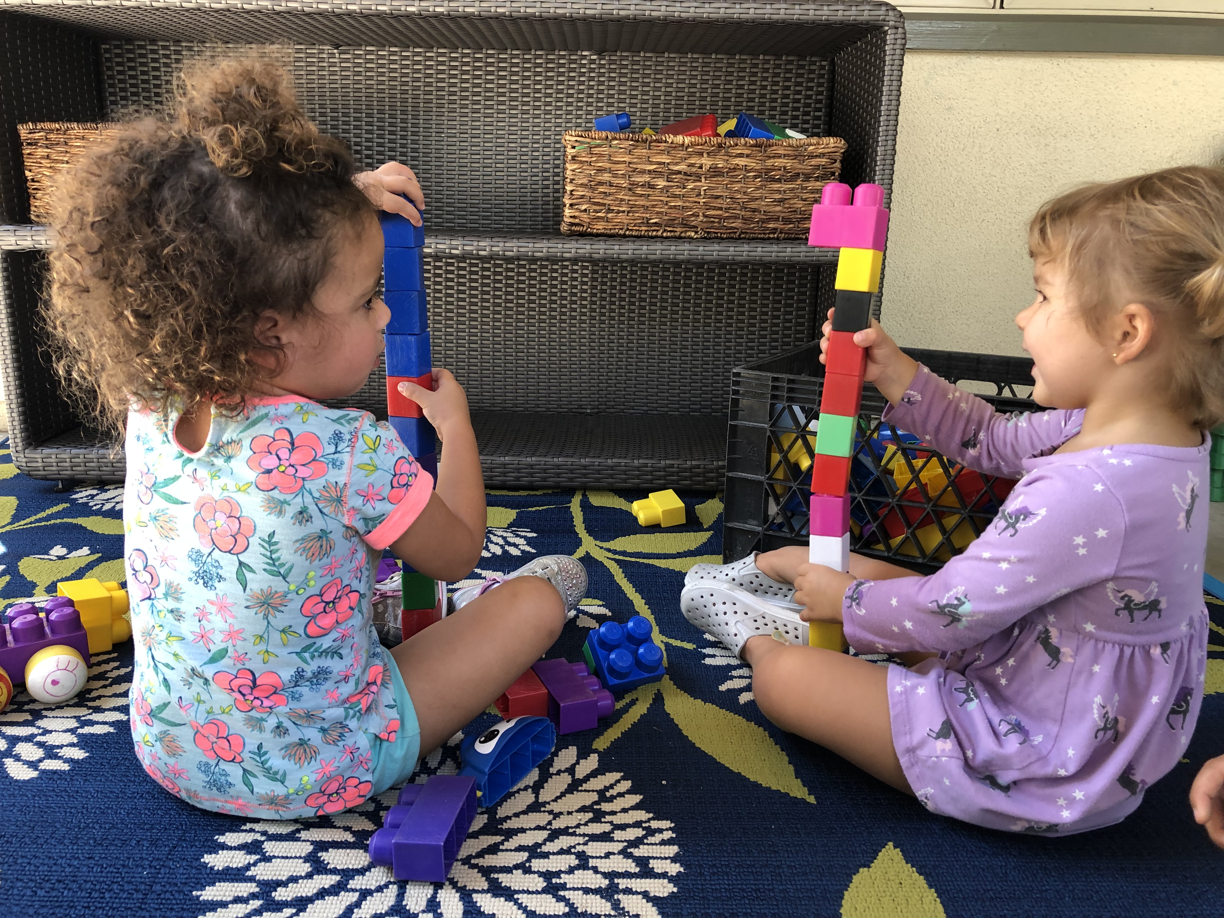 When we build we’re making connections, exploring cause and effect (filling and dumping), developing spacial awareness and so much more! We love to build!