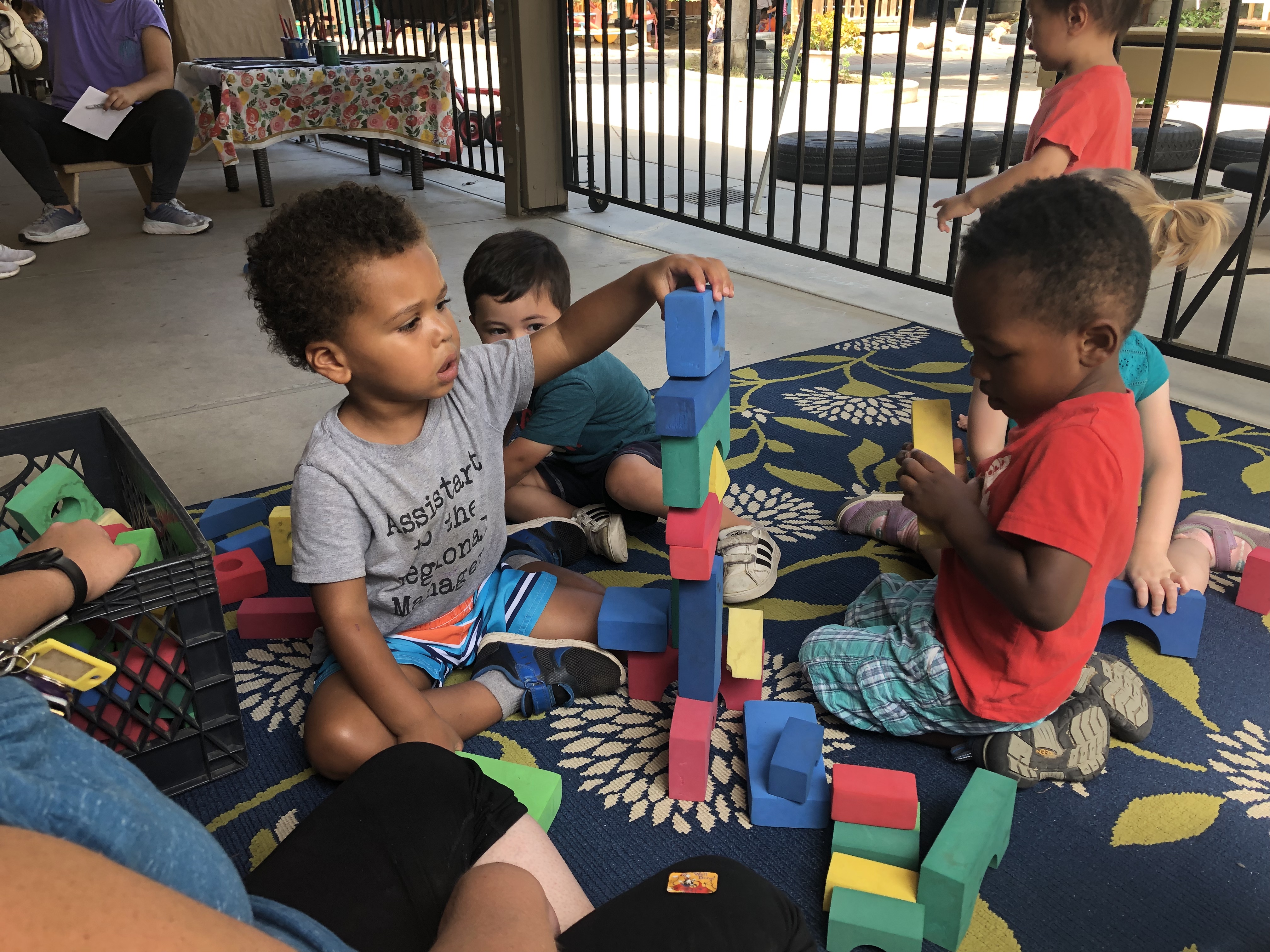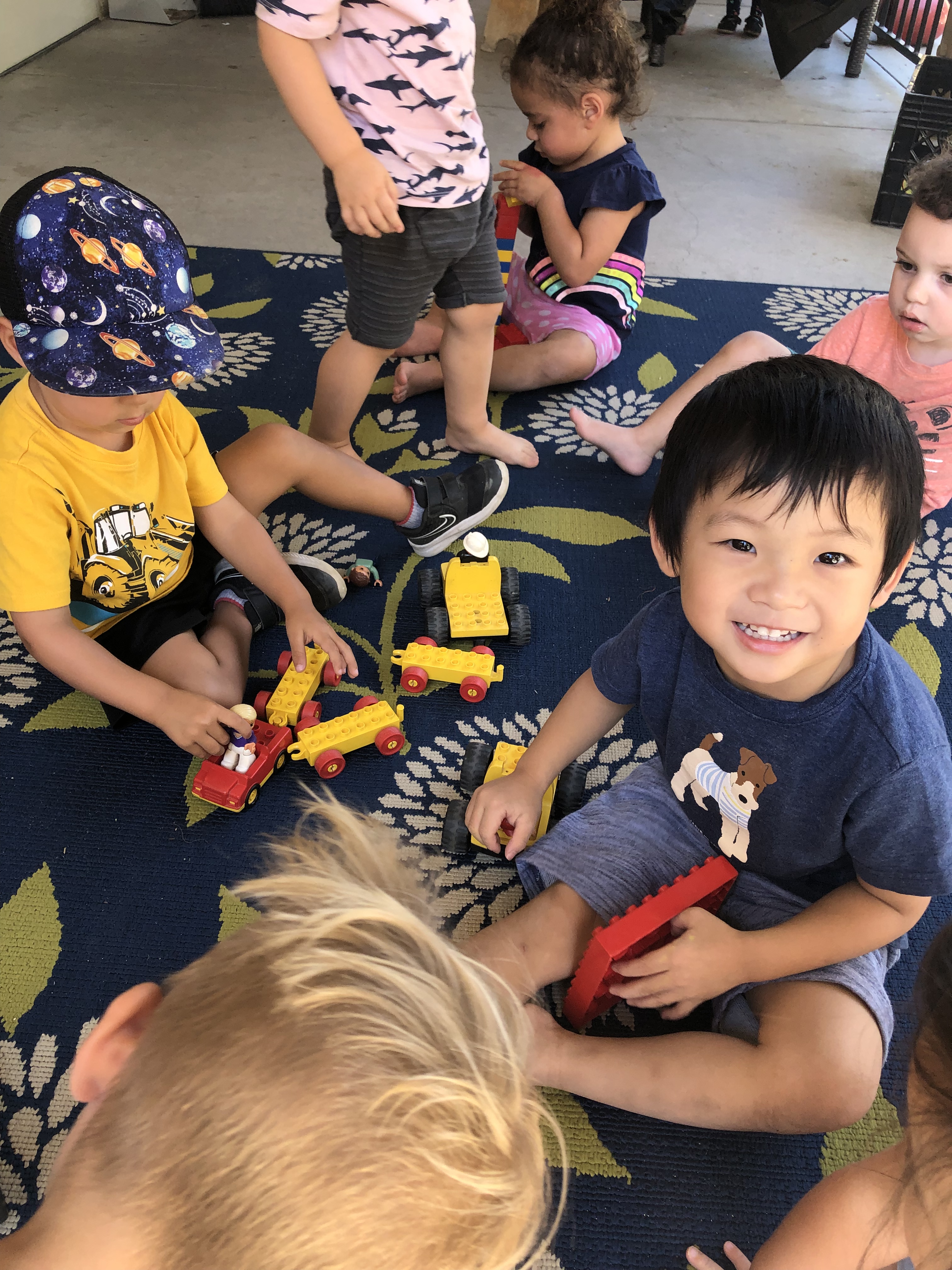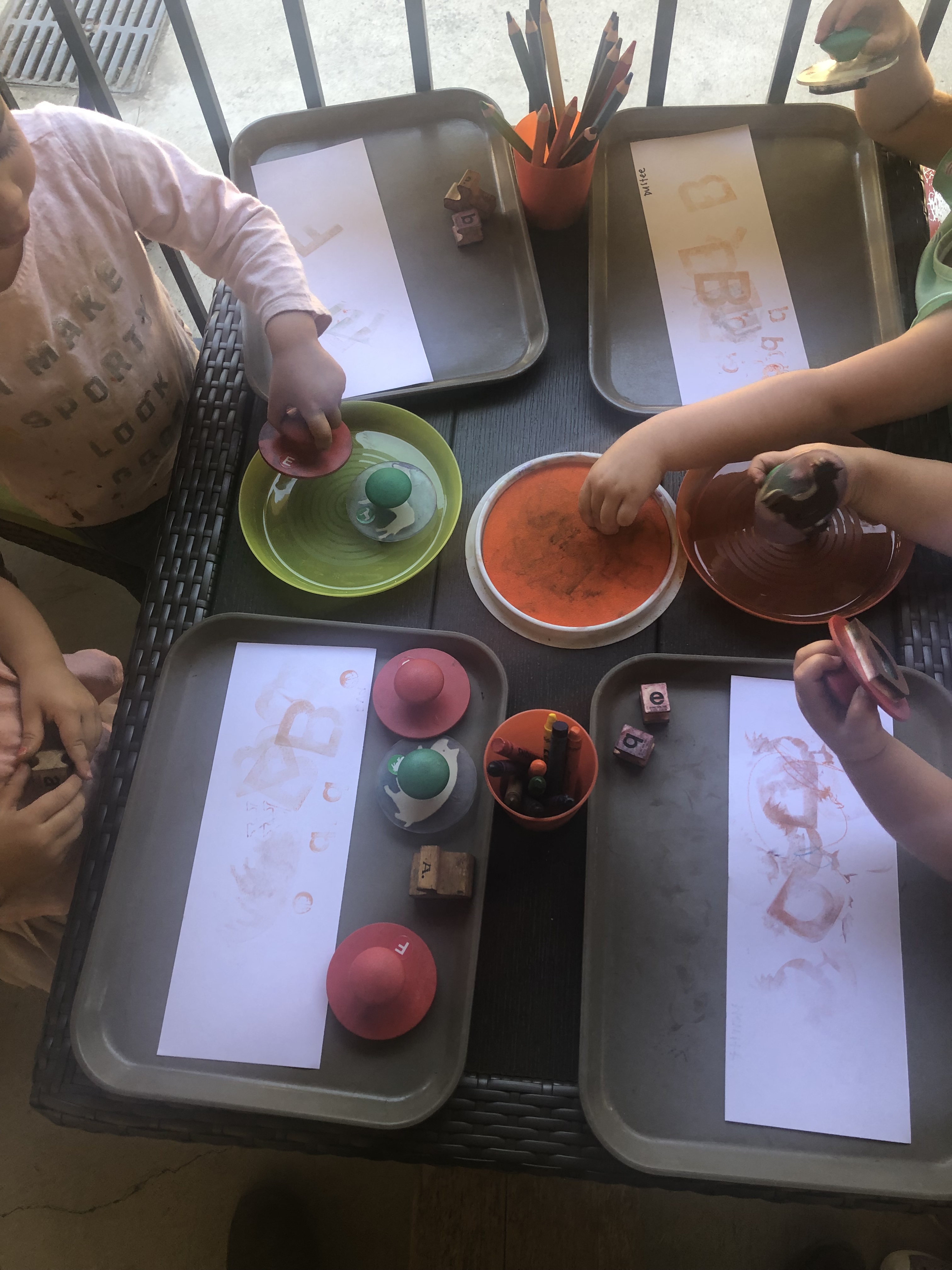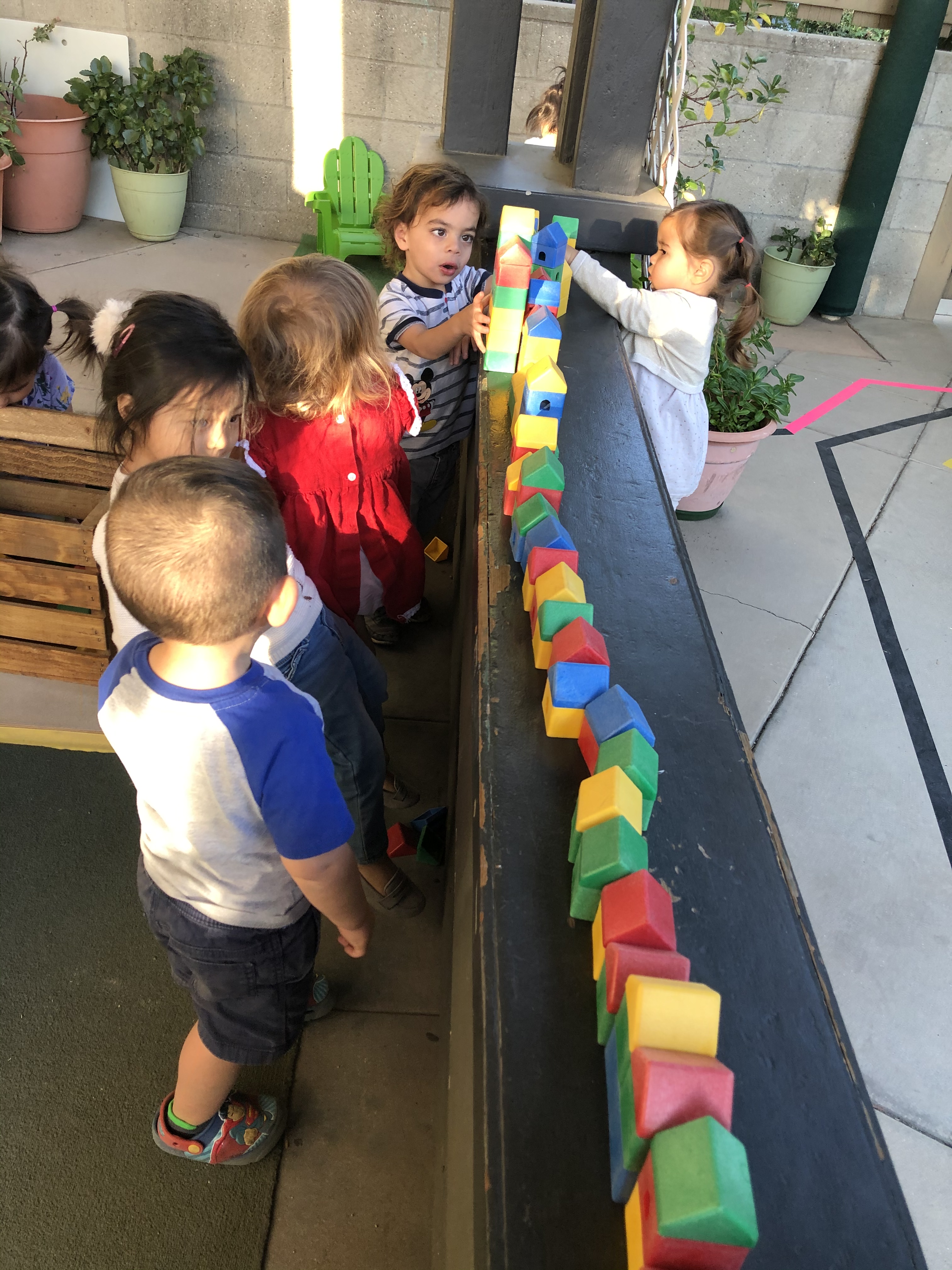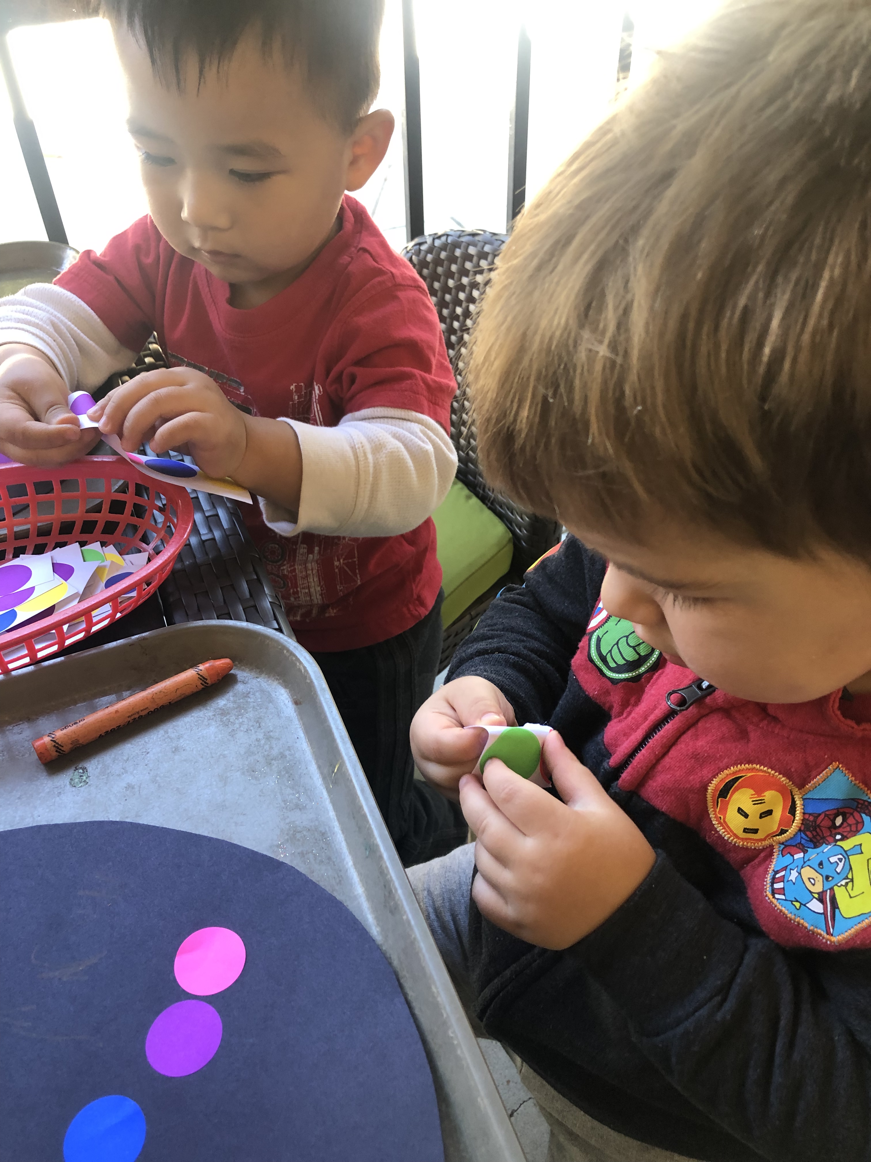 Our little ones are so creative and love to color, stamp and sticker. Scribbling is so important to build dexterity and begin to understand that marks and lines can represent shapes, letters, objects, and people! We’ve been working with crayons, colored pencils, oil pastels, and chalk! As the year goes on, we’ll continue to progress using other fun materials.