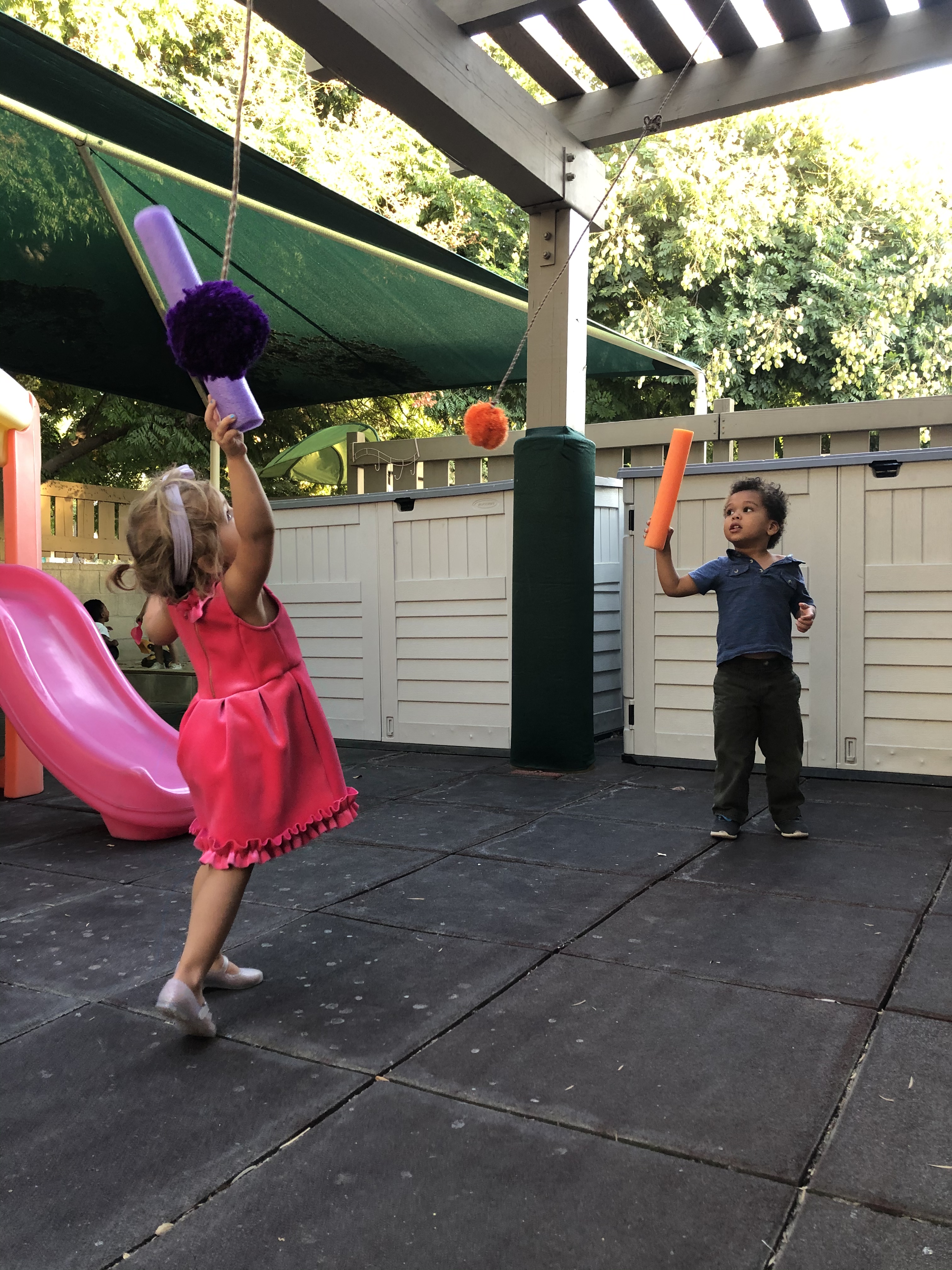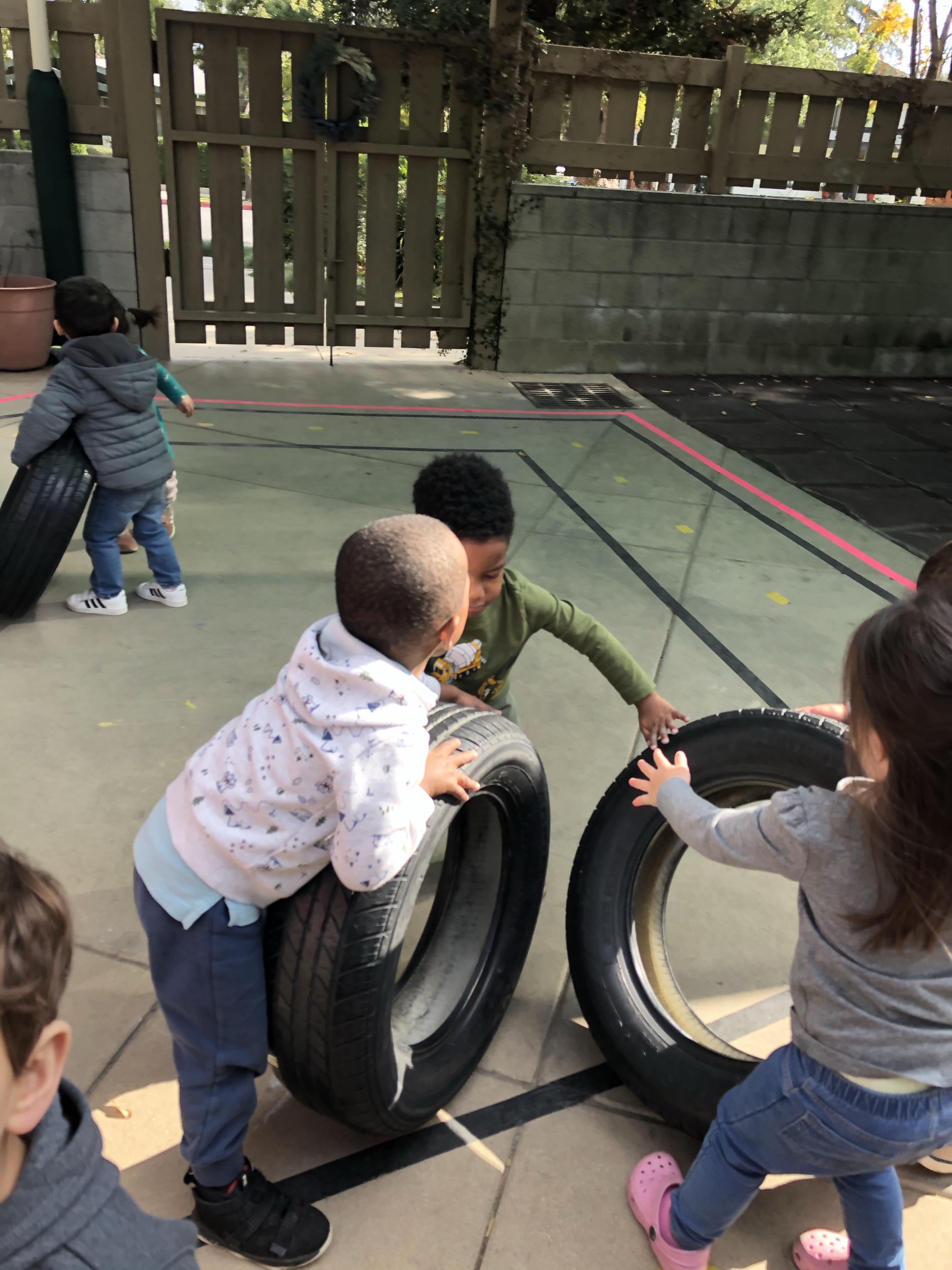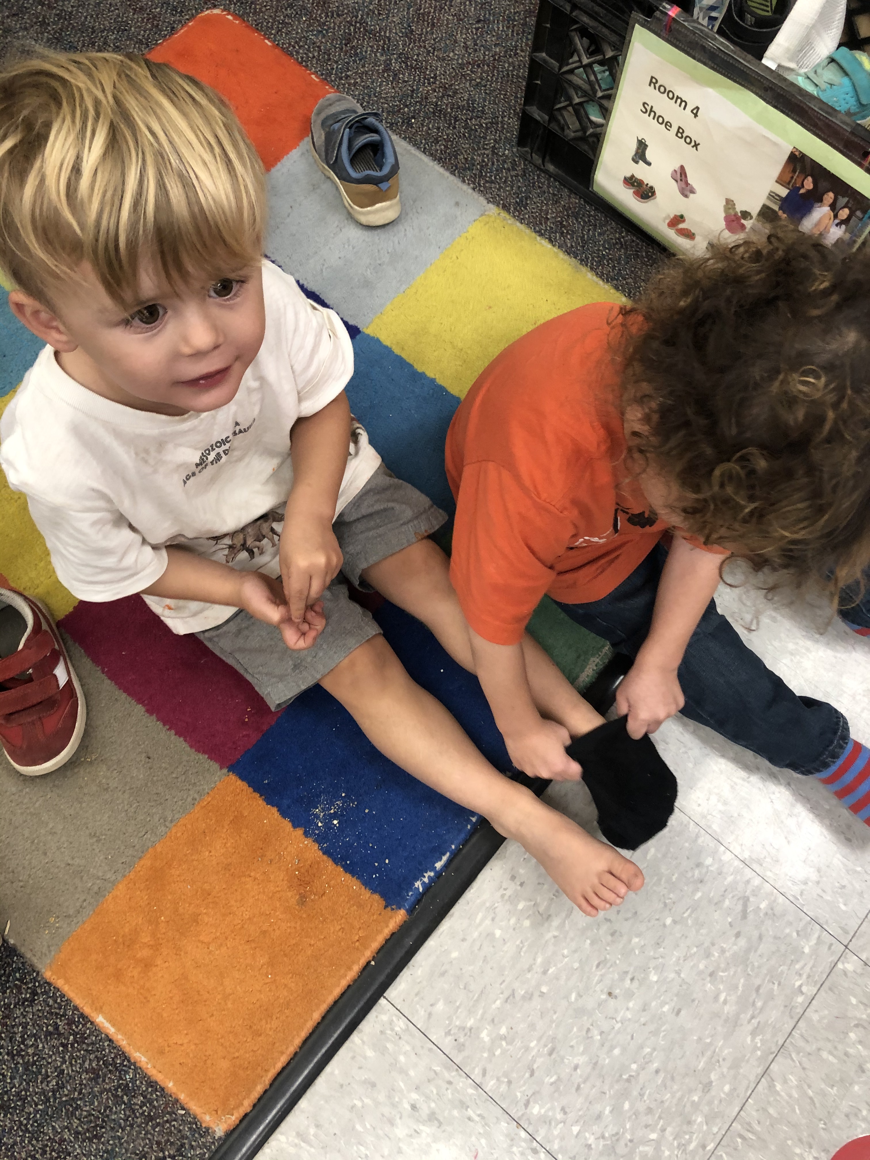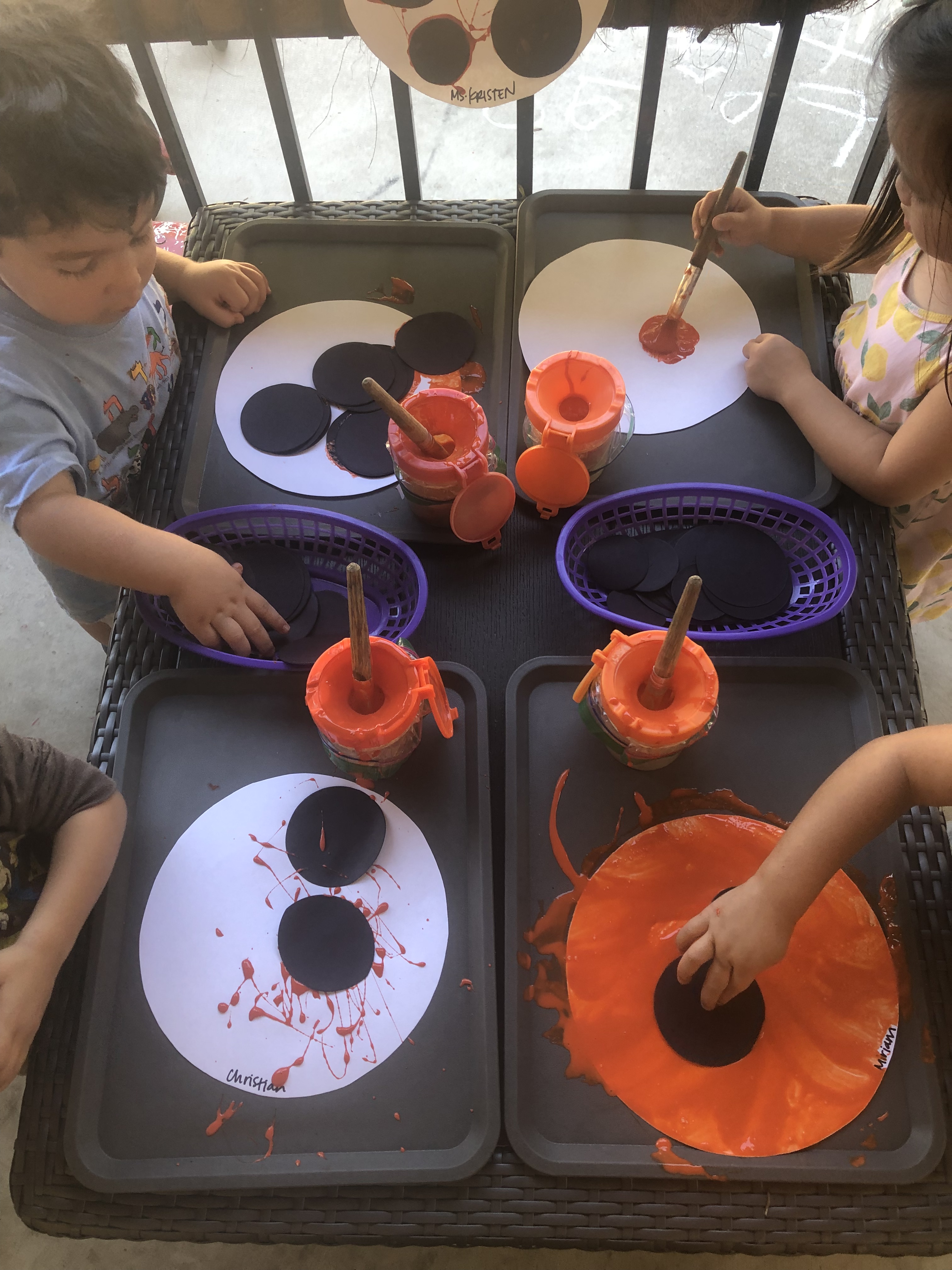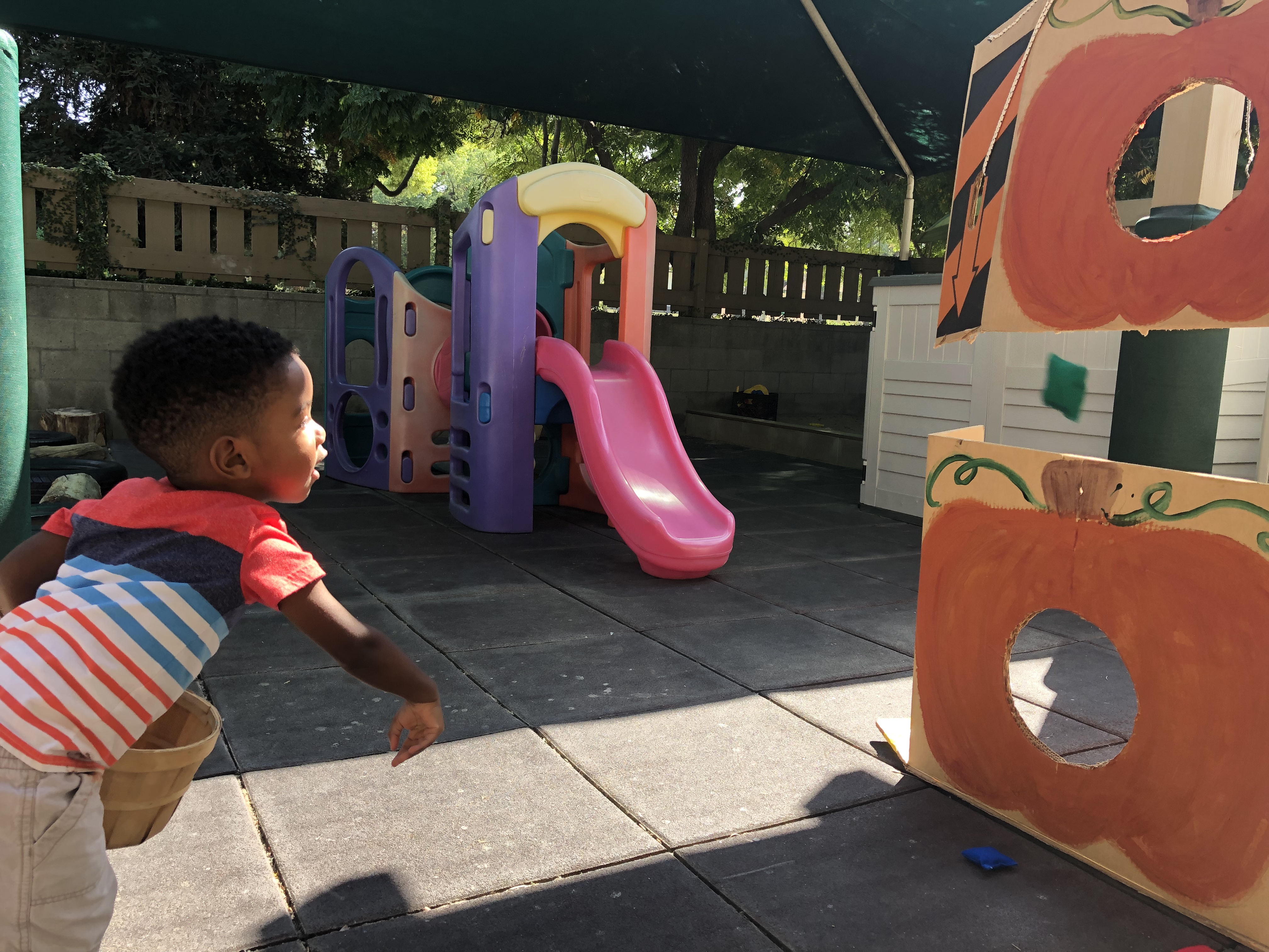 Movement is our favorite thing to do at two! We’re putting our muscles to work, practicing skills, developing eye-hand coordination and having fun while we do it! Our October pumpkin toss was a blast. Currently, our little ones are working on coordinating upper body movements with lower body movement via our yarn ball game. Practicing gross motor movements is so important and enables our little ones to perform everyday functions and self-help skills.
