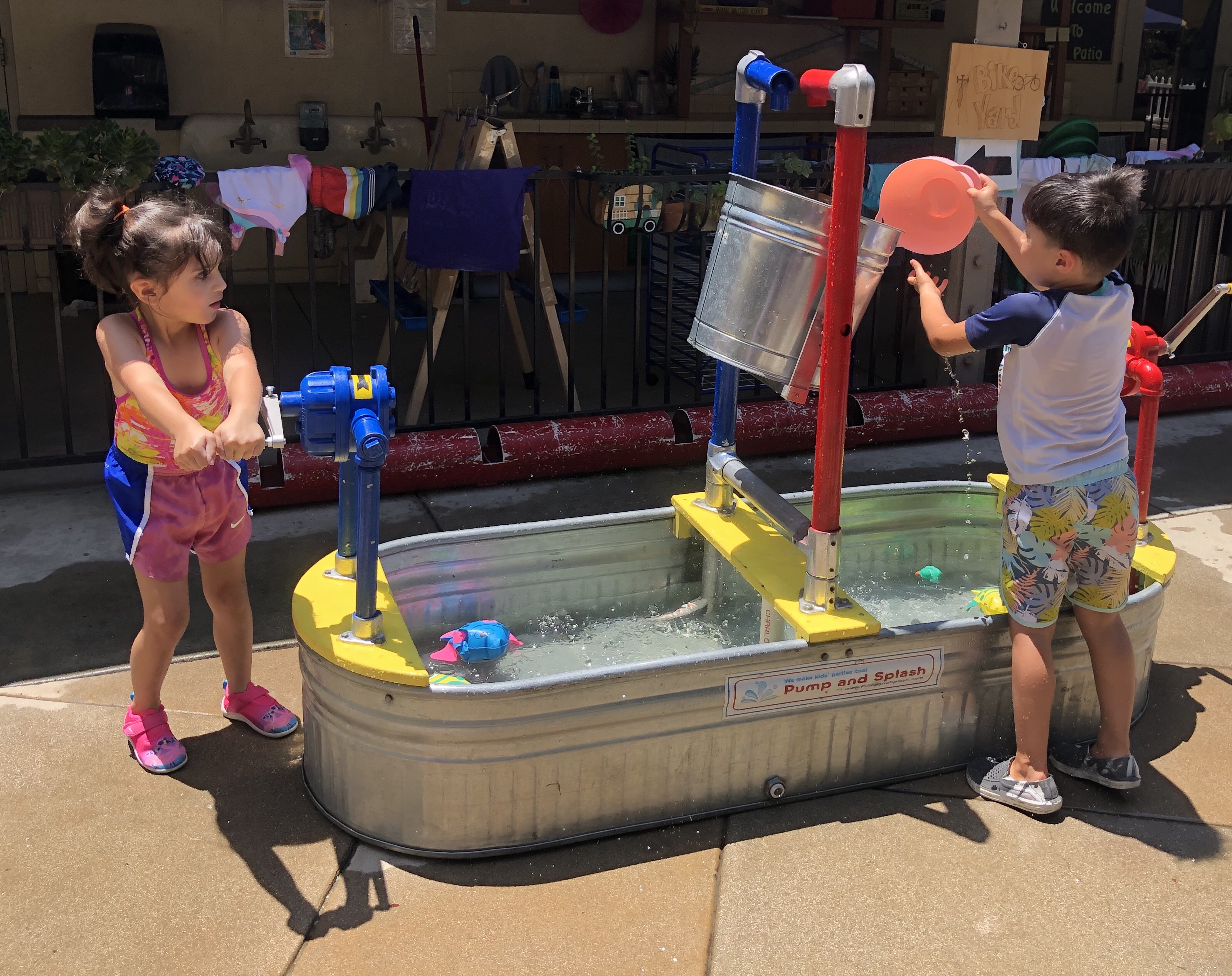 Dramatic Play Area—5…4…3…2…1… Blast off! In this area they can dress up as astronauts and play in a NASA rocket ship! The planets around the walls were painted by our students.
